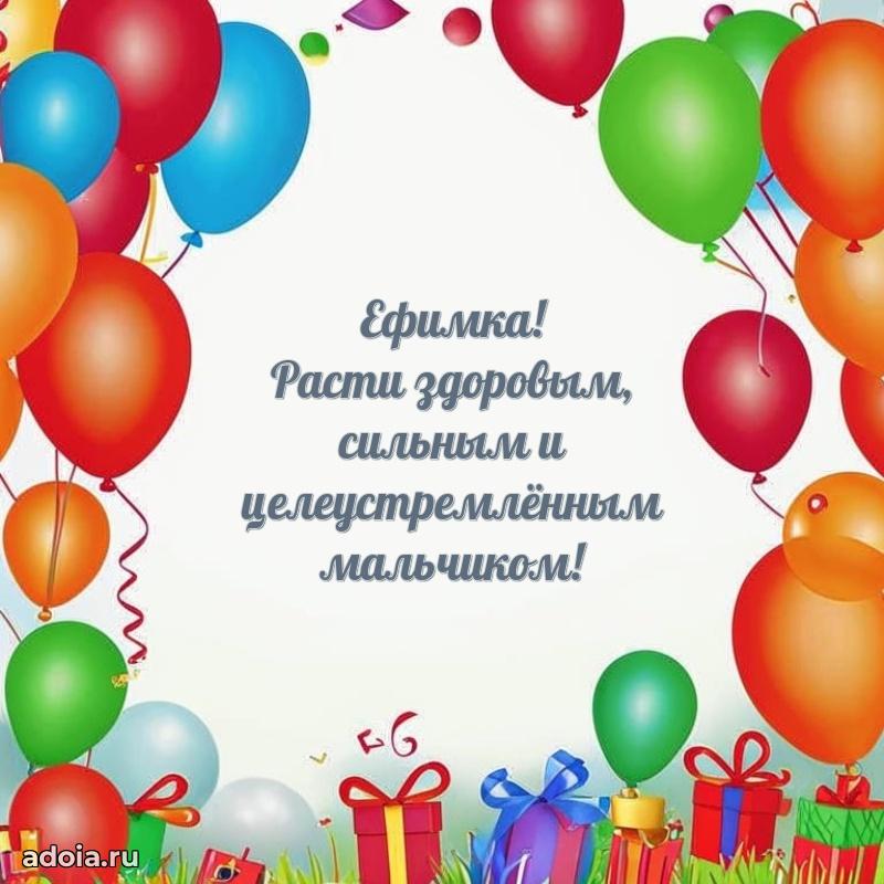 Здесь вы найдете картинки с днем рождения Ефиму на 7 лет! Все картинки в высоком качестве, и вы можете их скачать или отправить через ватсап бесплатно. Кроме того, на нашем сайте вы найдете много прикольных и мерцающих гифок и анимашек, которые обязательно поднимут праздничное настроение! Ефим будет востороге от вашего поздравления. Все открытки содержат короткие поздравления как стихах, так и в прозе своими словами.