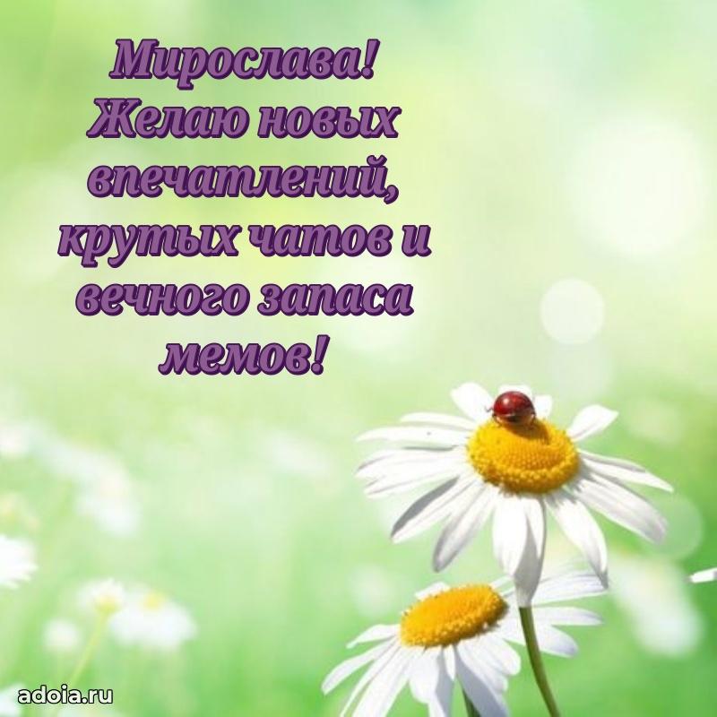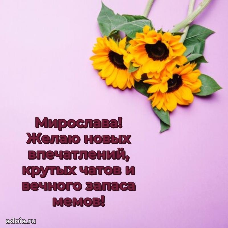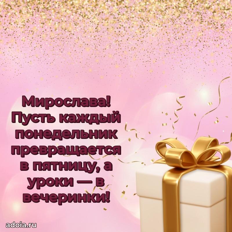 Здесь вы найдете картинки с днем рождения Мирославе на 15 лет! Все картинки в высоком качестве, и вы можете их скачать или отправить через ватсап бесплатно. Кроме того, на нашем сайте вы найдете много прикольных и мерцающих гифок и анимашек, которые обязательно поднимут праздничное настроение! Мирослава будет востороге от вашего поздравления. Все открытки содержат короткие поздравления как стихах, так и в прозе своими словами.