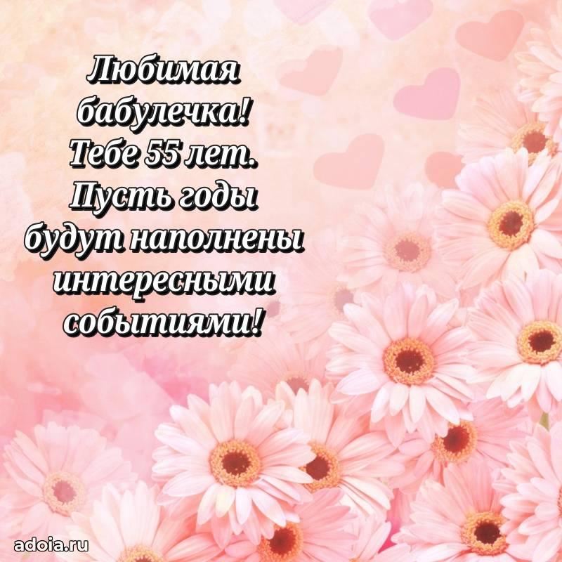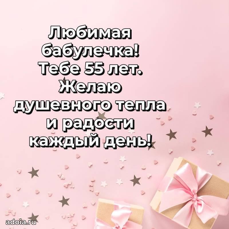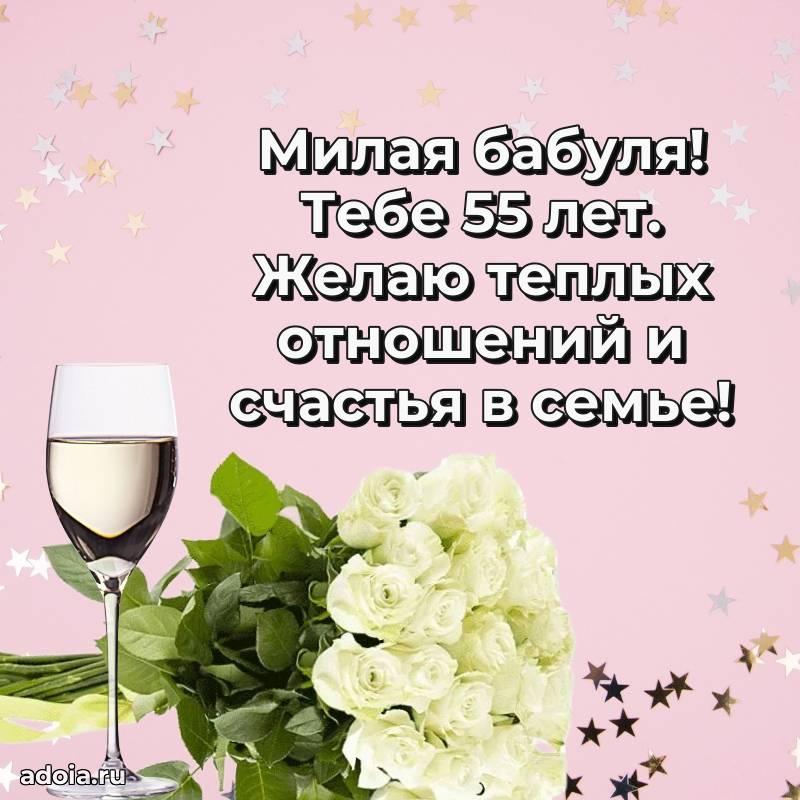 В поисках красивых и современных открыток? Вы попали по адресу! Здесь вы найдете картинки с днем рождения Бабушке на 55 лет! Все картинки в высоком качестве, которые можно скачать или отправить через WhatsApp бесплатно. Также вы найдете много прикольных и мерцающих гифок и анимаций, которые поднимут настроение! Все открытки содержат поздравления в стихах и прозе.