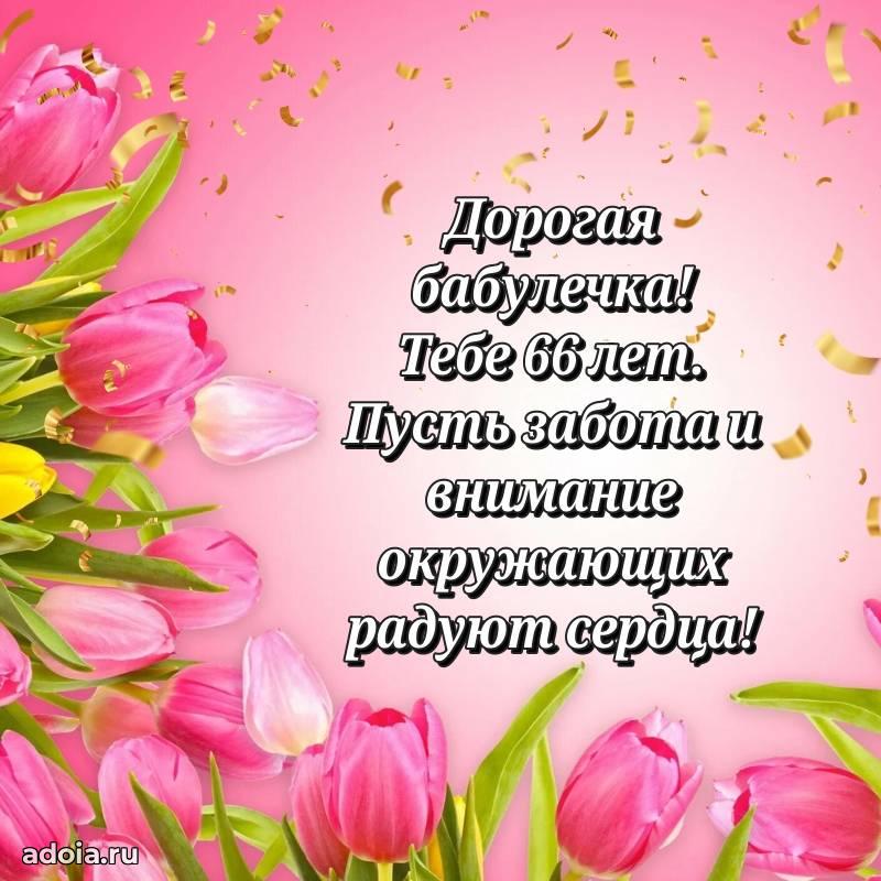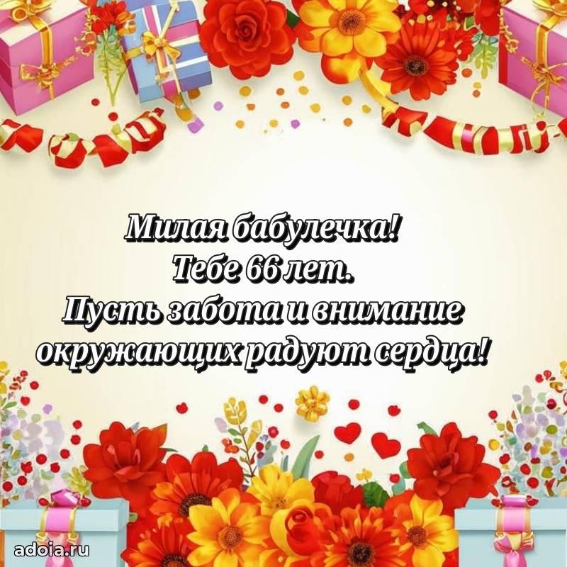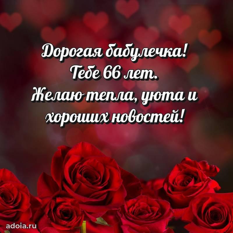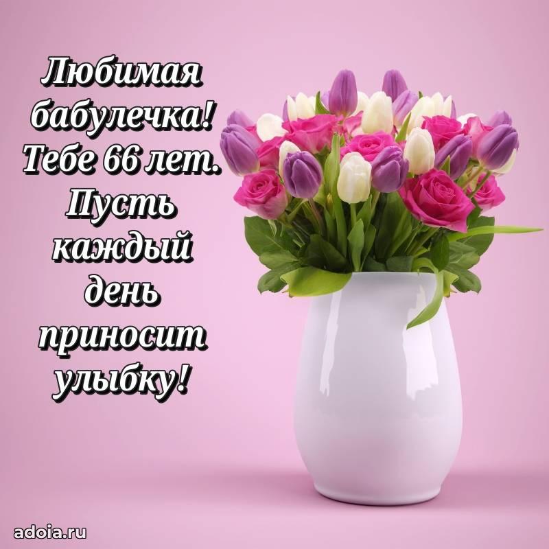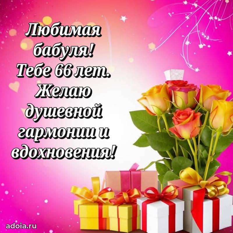 В поисках красивых и современных открыток? Вы попали по адресу! Здесь вы найдете картинки с днем рождения Бабушке на 66 лет! Все картинки в высоком качестве, которые можно скачать или отправить через WhatsApp бесплатно. Также вы найдете много прикольных и мерцающих гифок и анимаций, которые поднимут настроение! Все открытки содержат поздравления в стихах и прозе.
