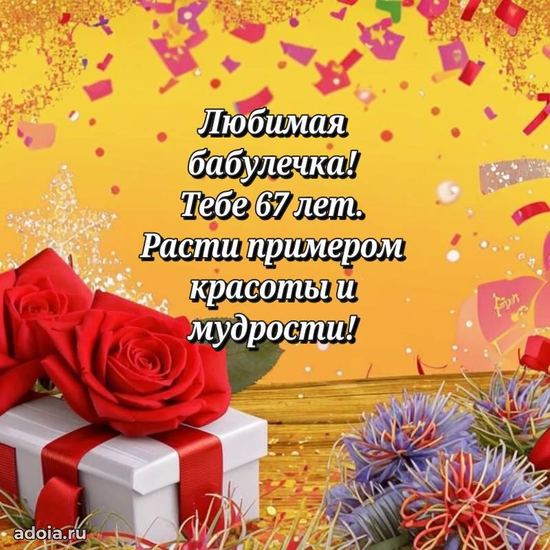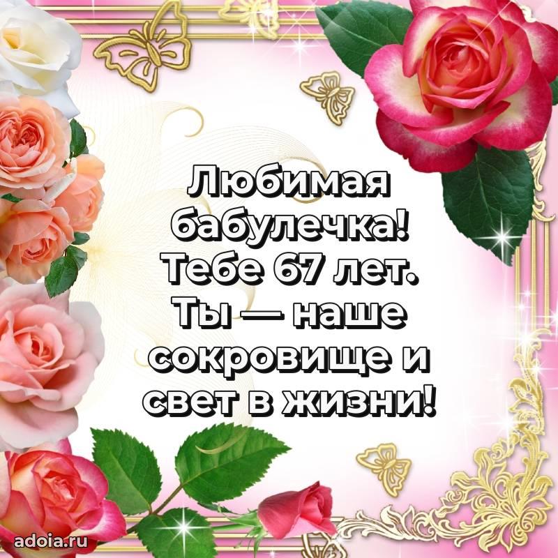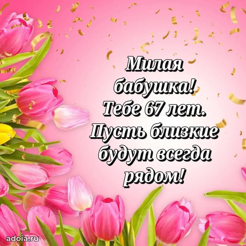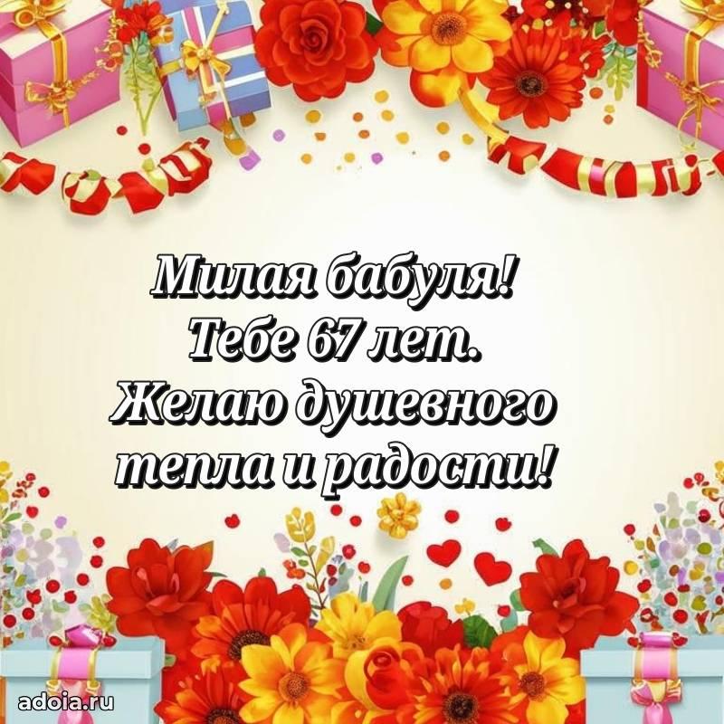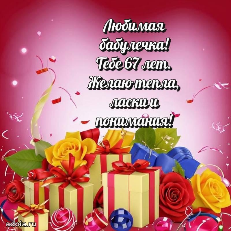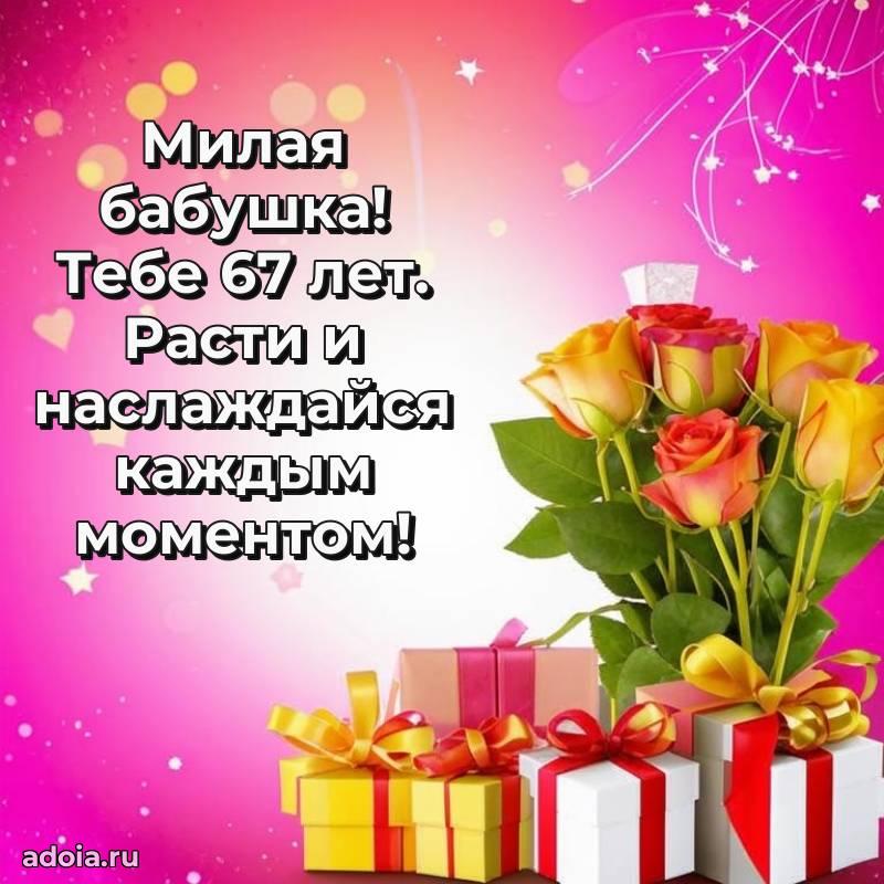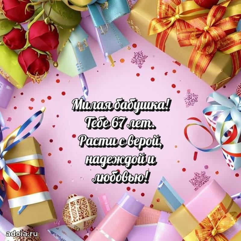 В поисках красивых и современных открыток? Вы попали по адресу! Здесь вы найдете картинки с днем рождения Бабушке на 67 лет! Все картинки в высоком качестве, которые можно скачать или отправить через WhatsApp бесплатно. Также вы найдете много прикольных и мерцающих гифок и анимаций, которые поднимут настроение! Все открытки содержат поздравления в стихах и прозе.