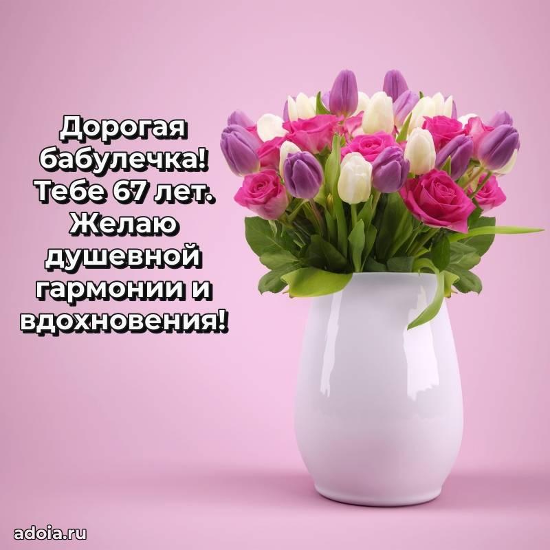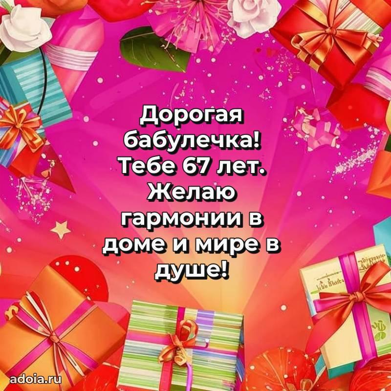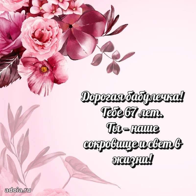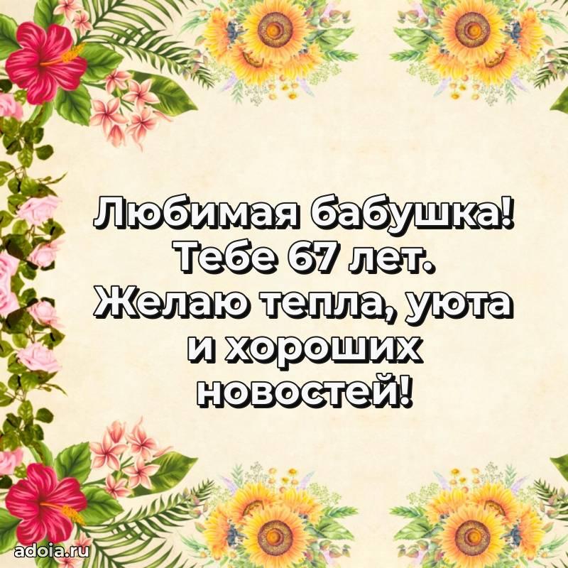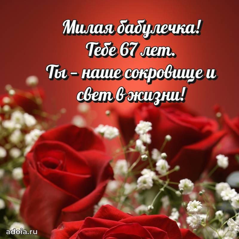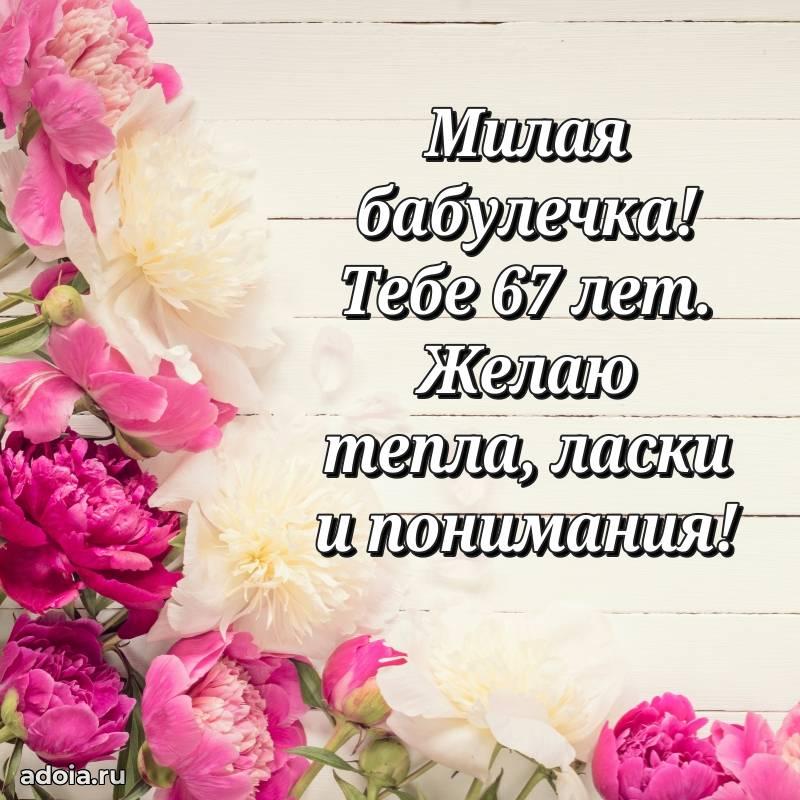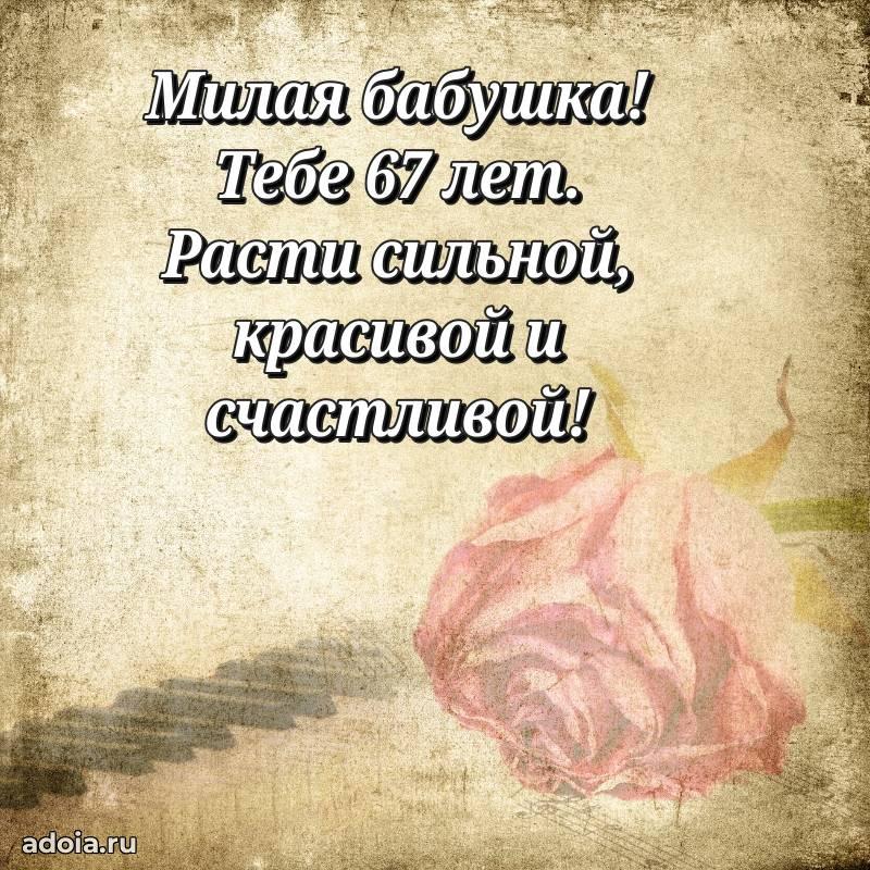 В поисках красивых и современных открыток? Вы попали по адресу! Здесь вы найдете картинки с днем рождения Бабушке на 67 лет! Все картинки в высоком качестве, которые можно скачать или отправить через WhatsApp бесплатно. Также вы найдете много прикольных и мерцающих гифок и анимаций, которые поднимут настроение! Все открытки содержат поздравления в стихах и прозе.