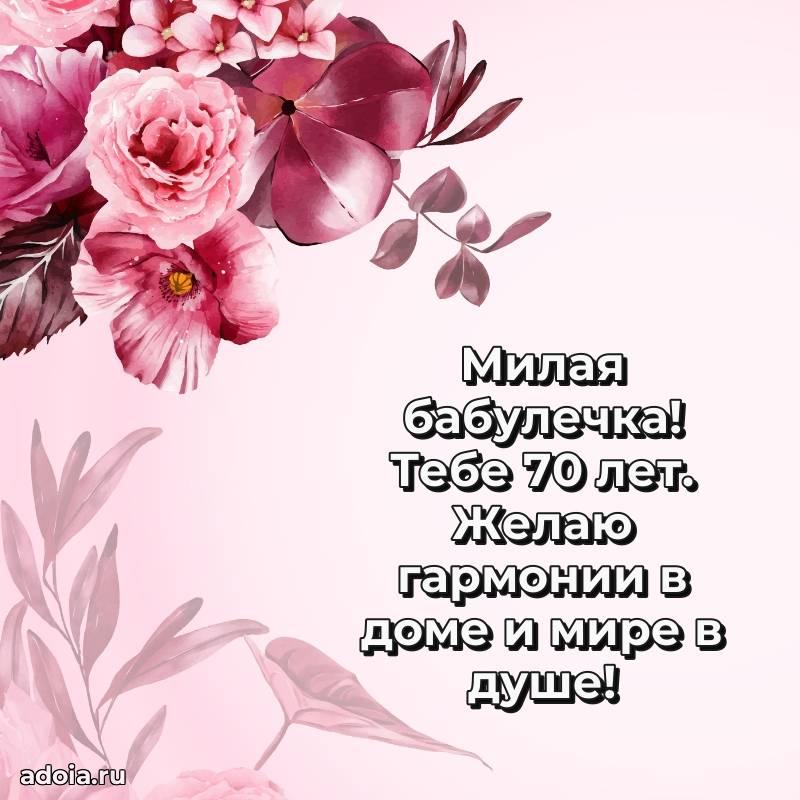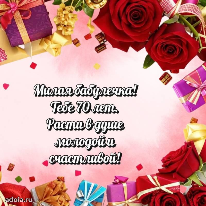 В поисках красивых и современных открыток? Вы попали по адресу! Здесь вы найдете картинки с днем рождения Бабушке на 70 лет! Все картинки в высоком качестве, которые можно скачать или отправить через WhatsApp бесплатно. Также вы найдете много прикольных и мерцающих гифок и анимаций, которые поднимут настроение! Все открытки содержат поздравления в стихах и прозе.