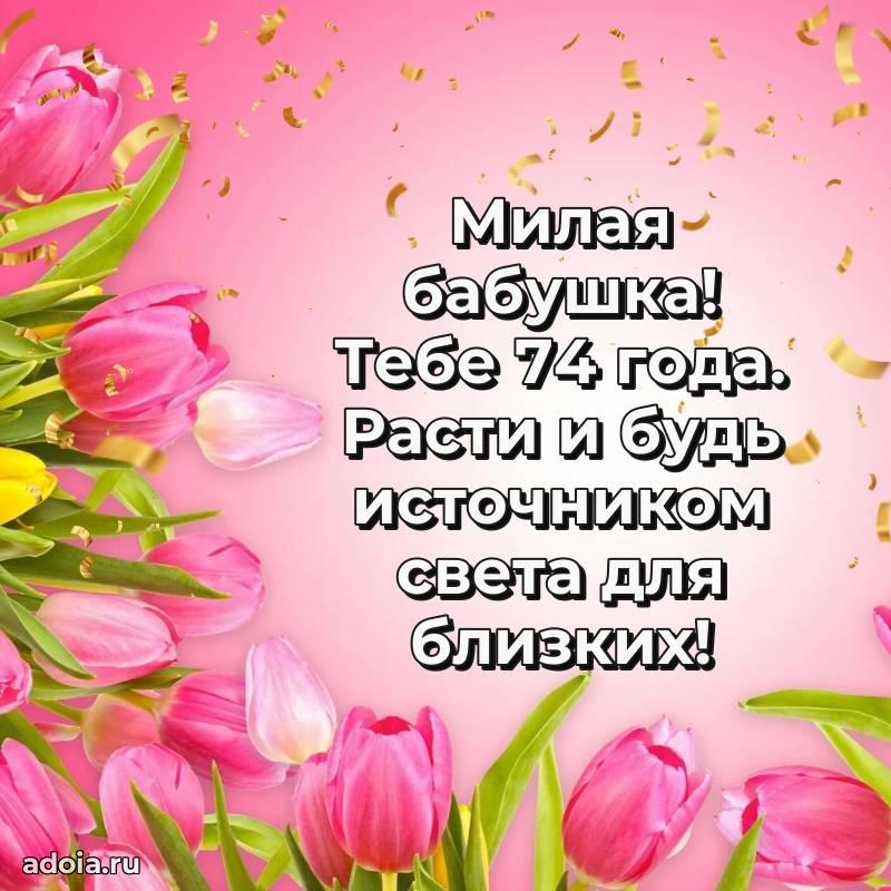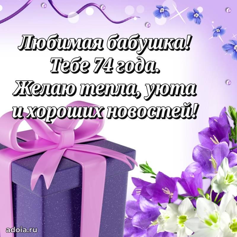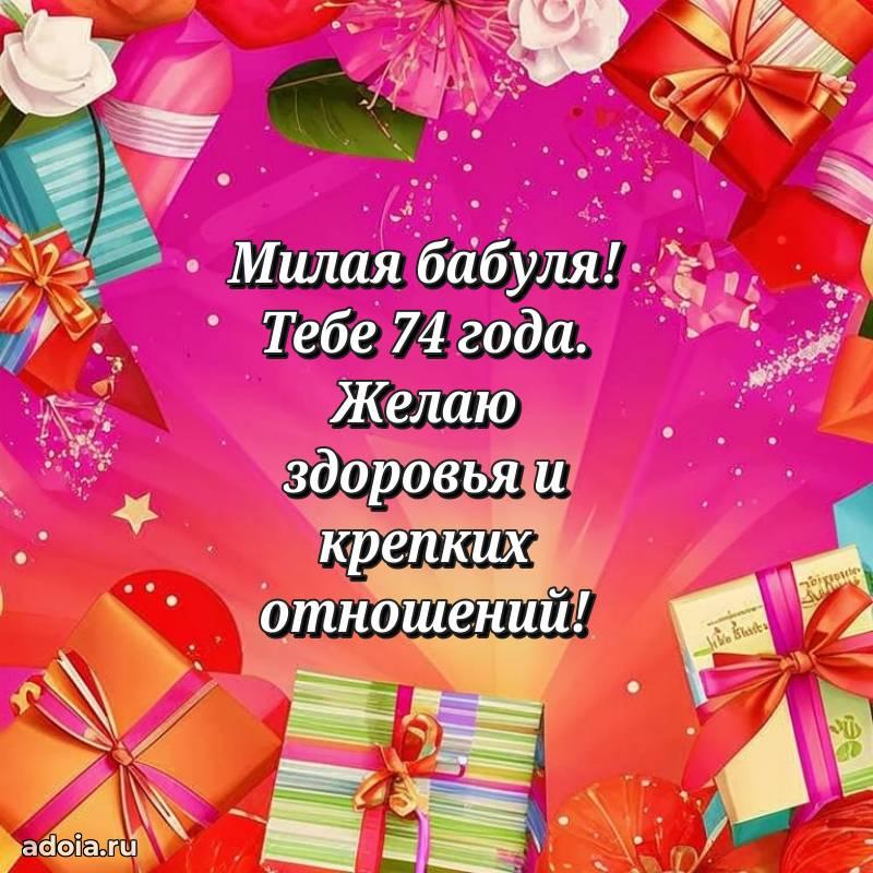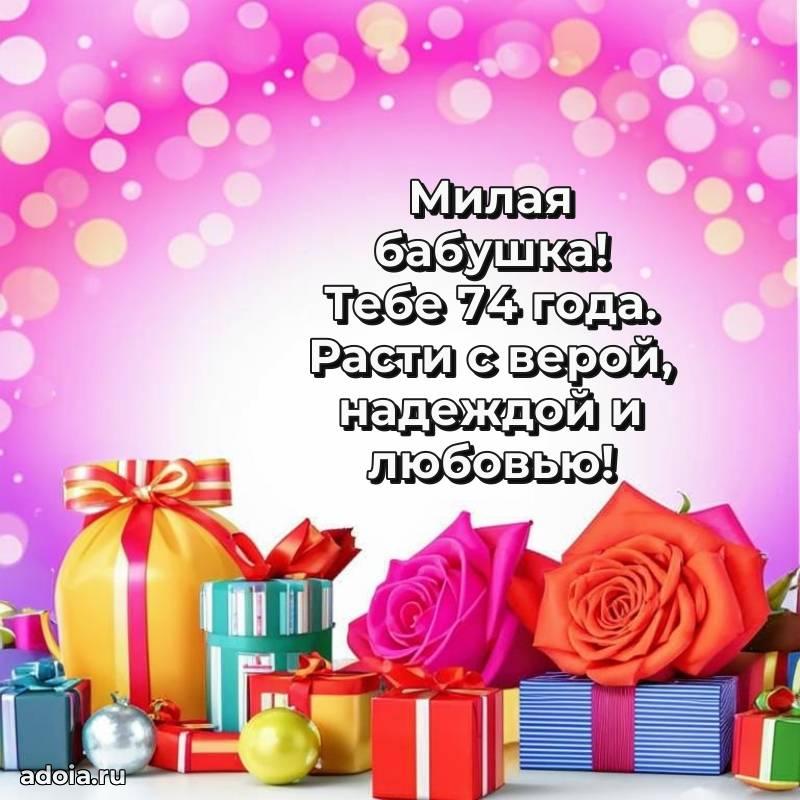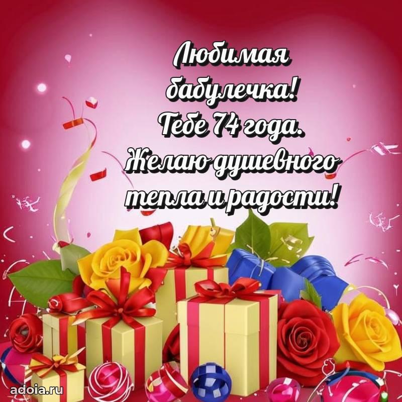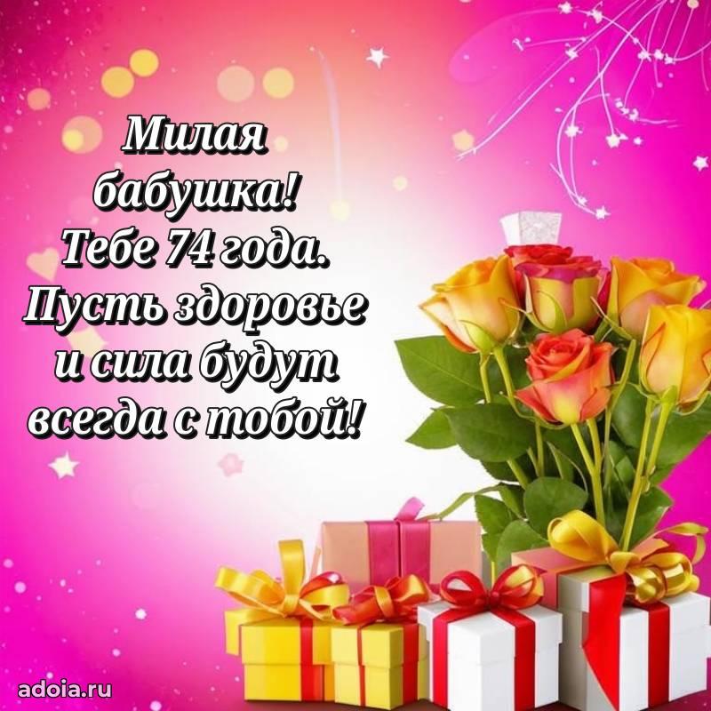 В поисках красивых и современных открыток? Вы попали по адресу! Здесь вы найдете картинки с днем рождения Бабушке на 74 года! Все картинки в высоком качестве, которые можно скачать или отправить через WhatsApp бесплатно. Также вы найдете много прикольных и мерцающих гифок и анимаций, которые поднимут настроение! Все открытки содержат поздравления в стихах и прозе.