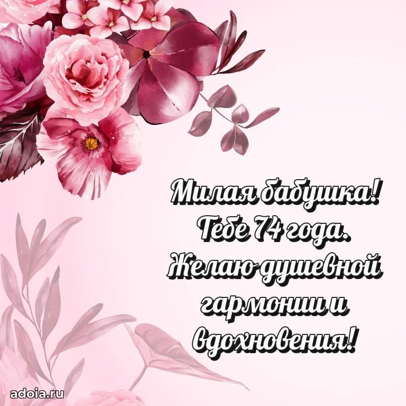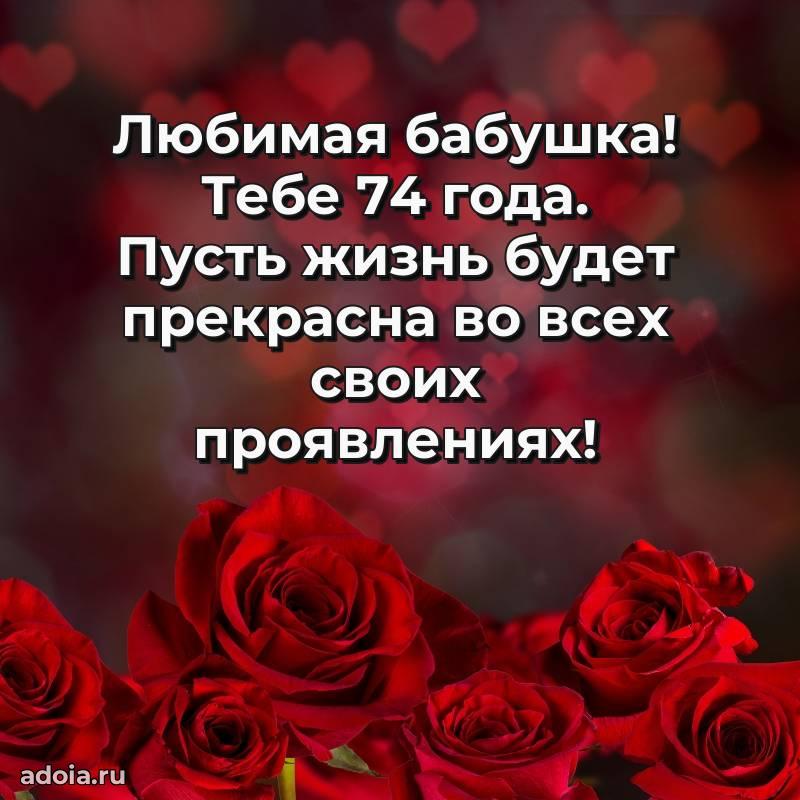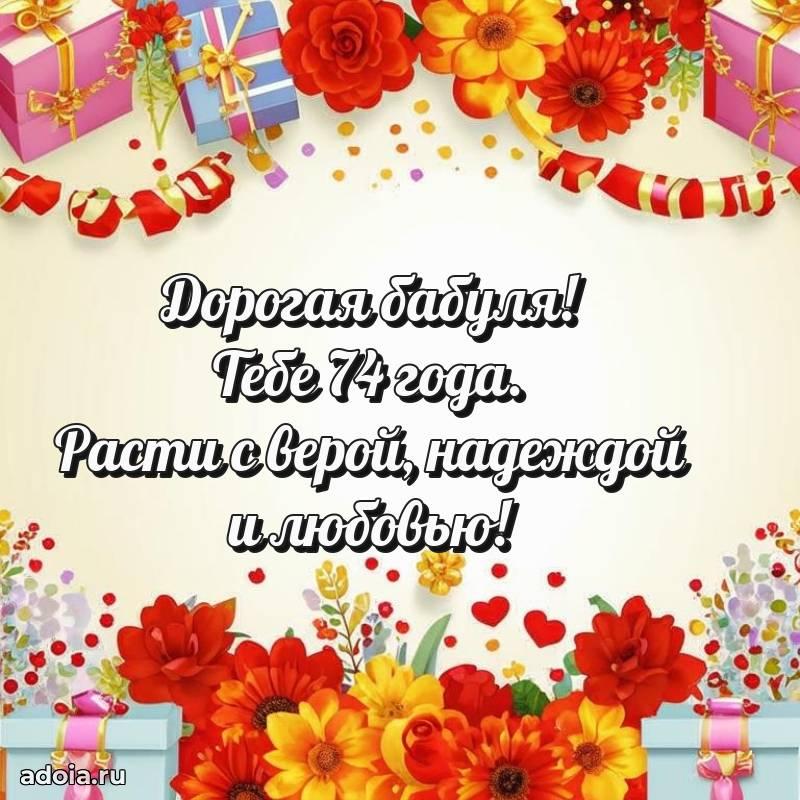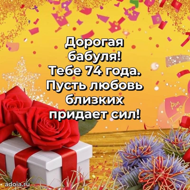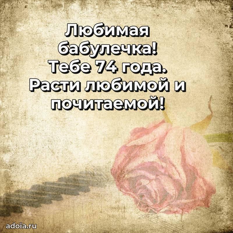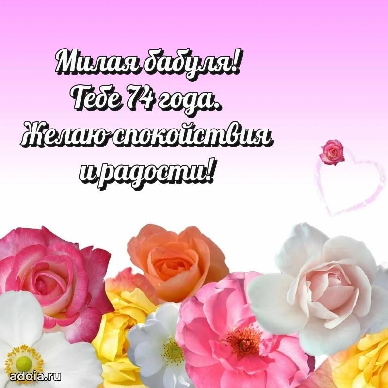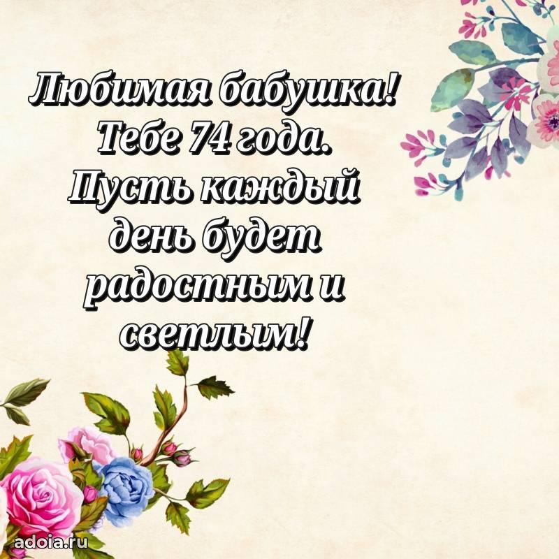 В поисках красивых и современных открыток? Вы попали по адресу! Здесь вы найдете картинки с днем рождения Бабушке на 74 года! Все картинки в высоком качестве, которые можно скачать или отправить через WhatsApp бесплатно. Также вы найдете много прикольных и мерцающих гифок и анимаций, которые поднимут настроение! Все открытки содержат поздравления в стихах и прозе.