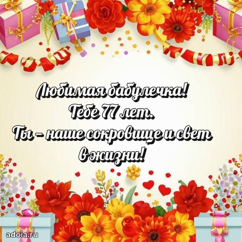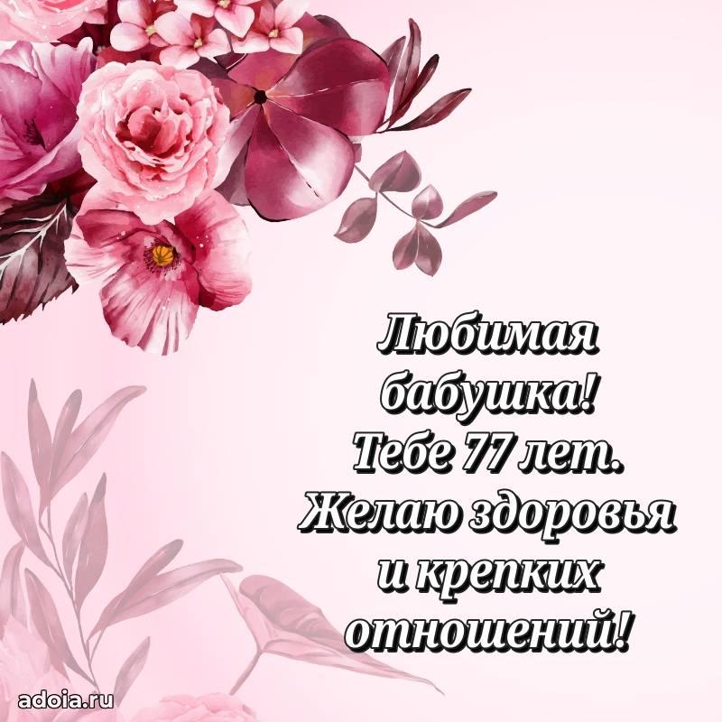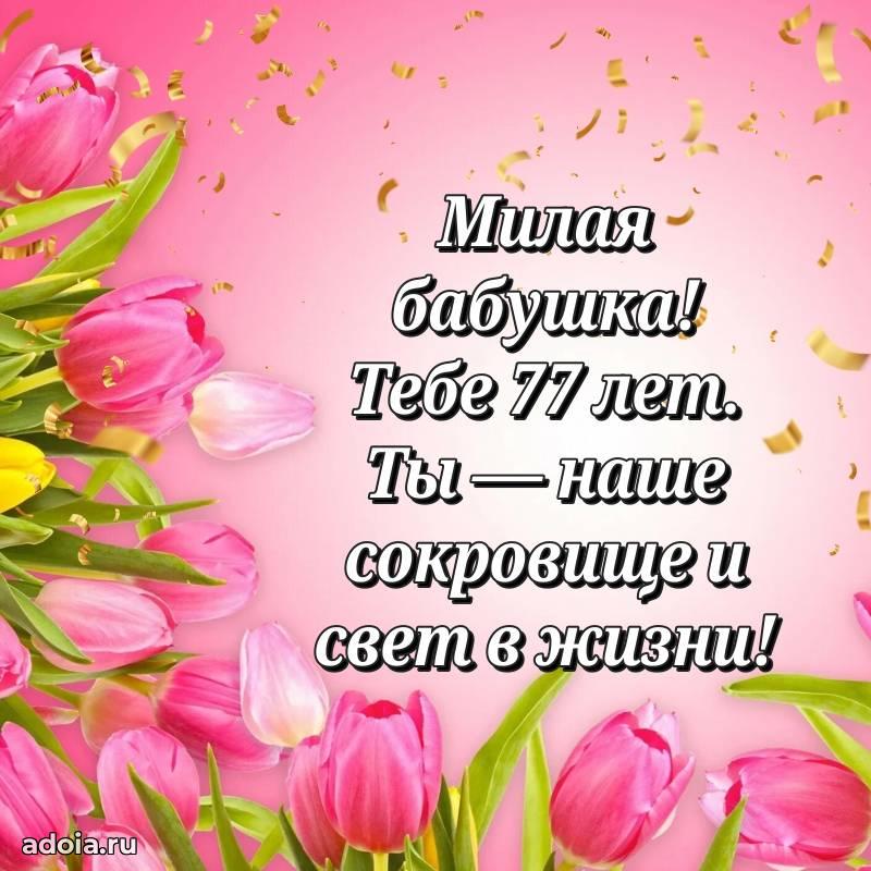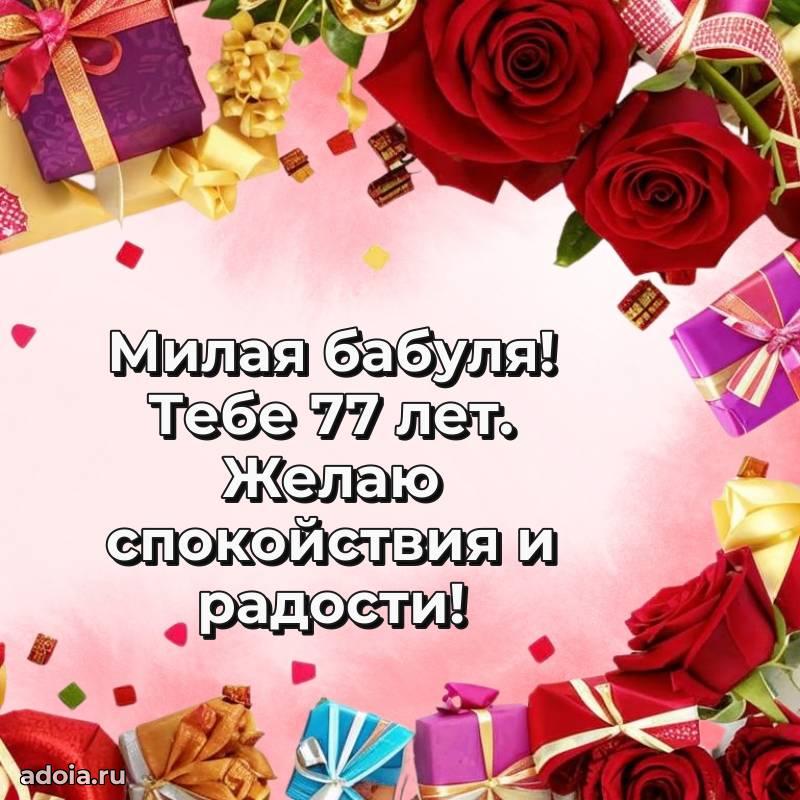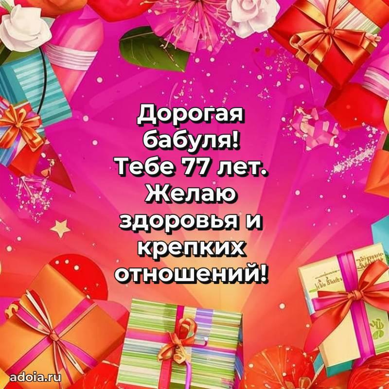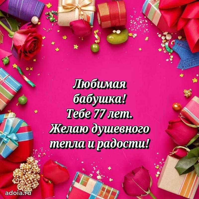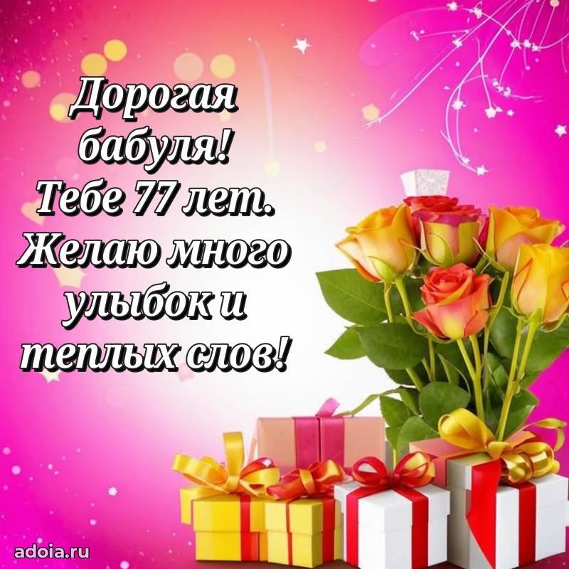 В поисках красивых и современных открыток? Вы попали по адресу! Здесь вы найдете картинки с днем рождения Бабушке на 77 лет! Все картинки в высоком качестве, которые можно скачать или отправить через WhatsApp бесплатно. Также вы найдете много прикольных и мерцающих гифок и анимаций, которые поднимут настроение! Все открытки содержат поздравления в стихах и прозе.