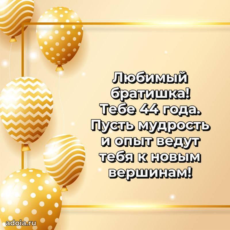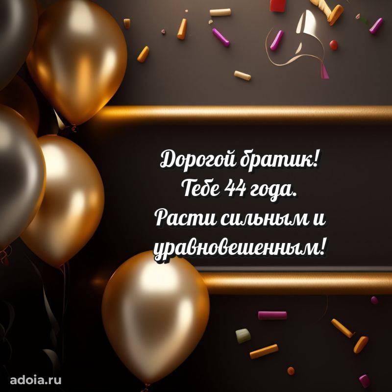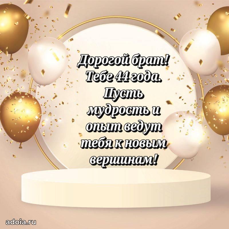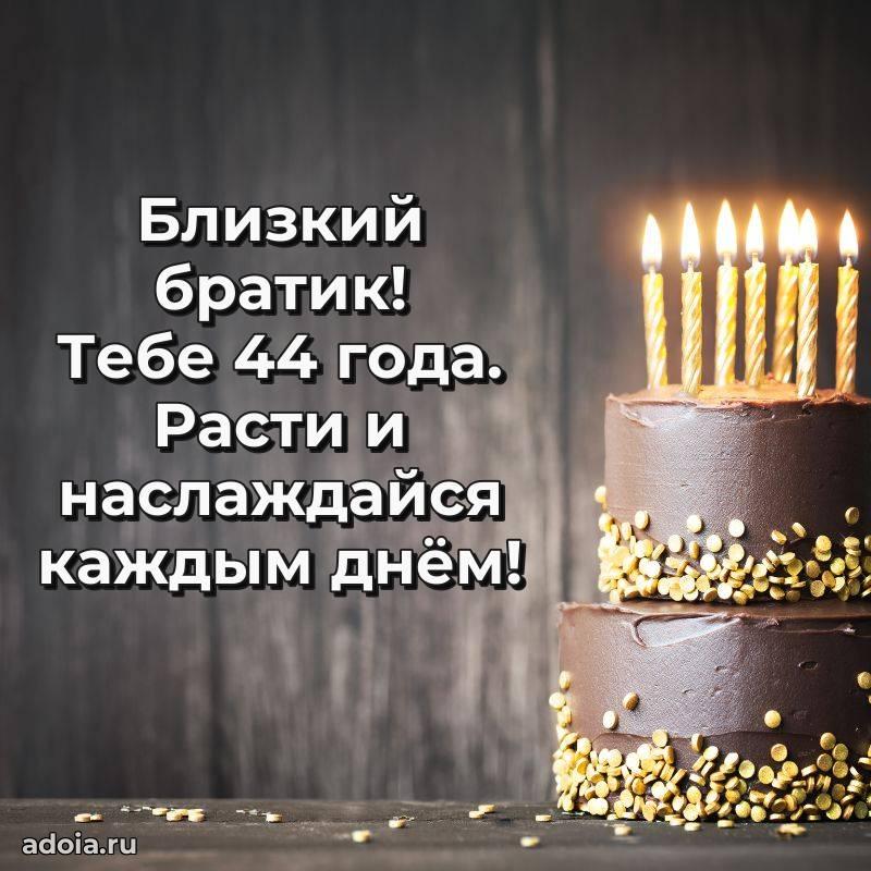 В поисках красивых и современных открыток? Вы попали по адресу! Здесь вы найдете картинки с днем рождения Брату на 44 года! Все картинки в высоком качестве, которые можно скачать или отправить через WhatsApp бесплатно. Также вы найдете много прикольных и мерцающих гифок и анимаций, которые поднимут настроение! Все открытки содержат поздравления в стихах и прозе.