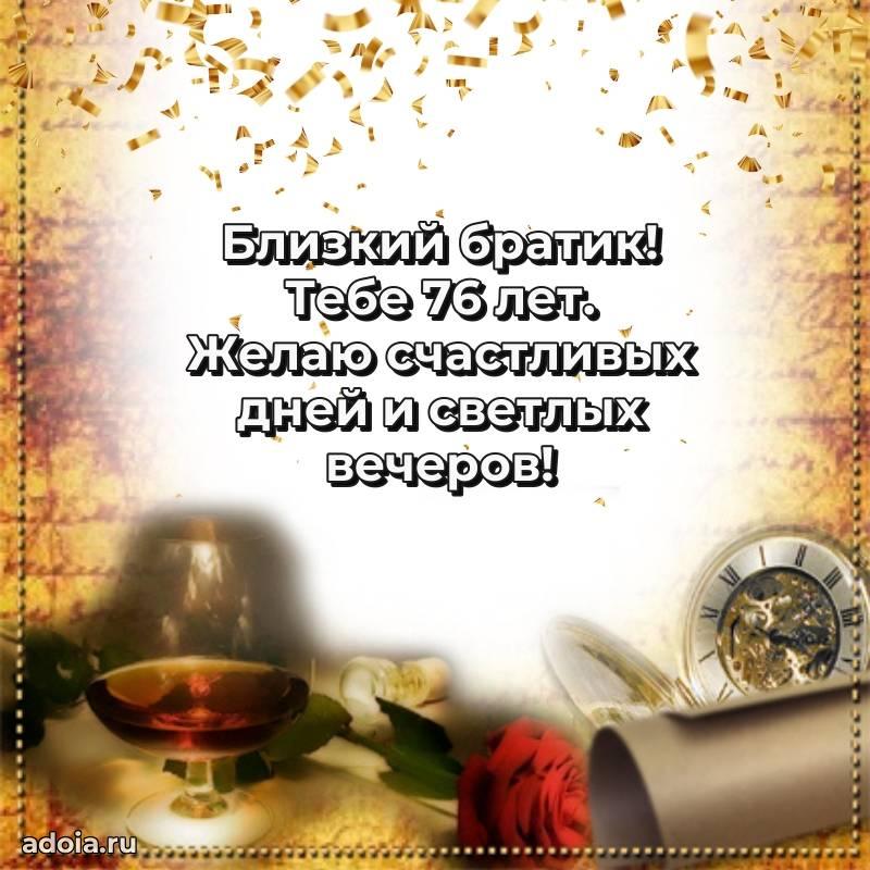 В поисках красивых и современных открыток? Вы попали по адресу! Здесь вы найдете картинки с днем рождения Брату на 76 лет! Все картинки в высоком качестве, которые можно скачать или отправить через WhatsApp бесплатно. Также вы найдете много прикольных и мерцающих гифок и анимаций, которые поднимут настроение! Все открытки содержат поздравления в стихах и прозе.