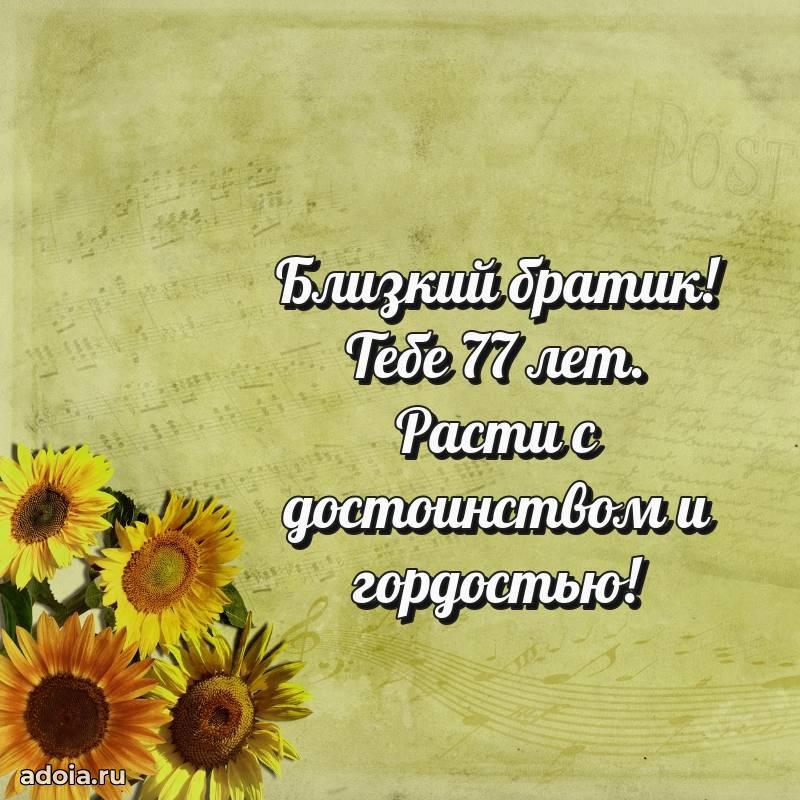 В поисках красивых и современных открыток? Вы попали по адресу! Здесь вы найдете картинки с днем рождения Брату на 77 лет! Все картинки в высоком качестве, которые можно скачать или отправить через WhatsApp бесплатно. Также вы найдете много прикольных и мерцающих гифок и анимаций, которые поднимут настроение! Все открытки содержат поздравления в стихах и прозе.