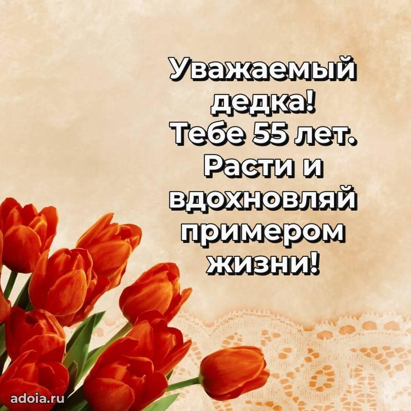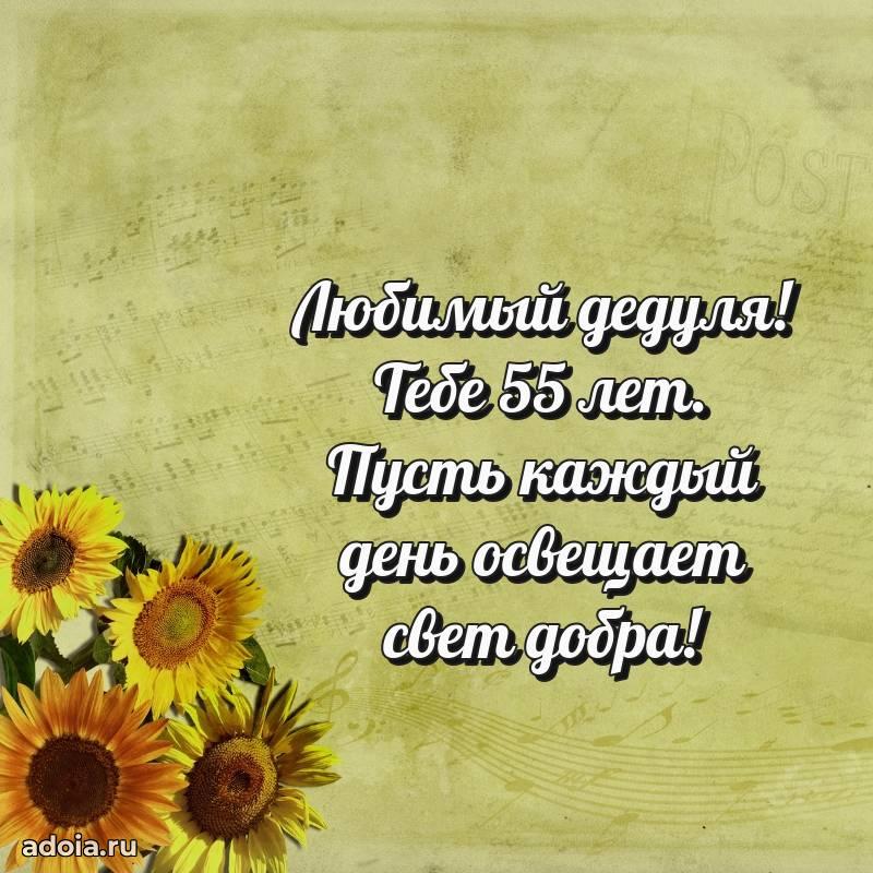 В поисках красивых и современных открыток? Вы попали по адресу! Здесь вы найдете картинки с днем рождения Дедушке на 55 лет! Все картинки в высоком качестве, которые можно скачать или отправить через WhatsApp бесплатно. Также вы найдете много прикольных и мерцающих гифок и анимаций, которые поднимут настроение! Все открытки содержат поздравления в стихах и прозе.