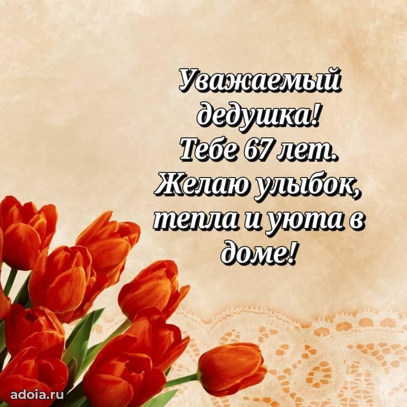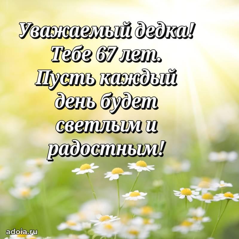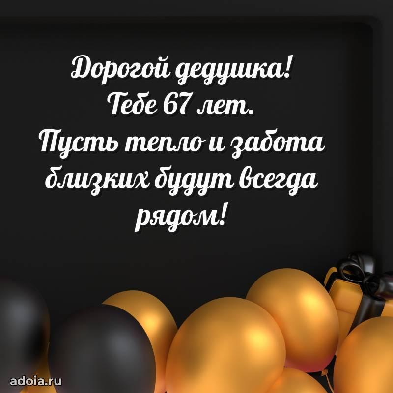 В поисках красивых и современных открыток? Вы попали по адресу! Здесь вы найдете картинки с днем рождения Дедушке на 67 лет! Все картинки в высоком качестве, которые можно скачать или отправить через WhatsApp бесплатно. Также вы найдете много прикольных и мерцающих гифок и анимаций, которые поднимут настроение! Все открытки содержат поздравления в стихах и прозе.