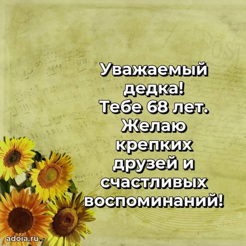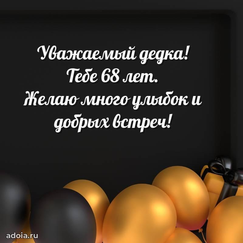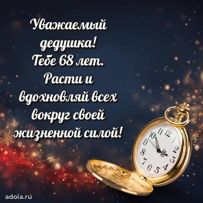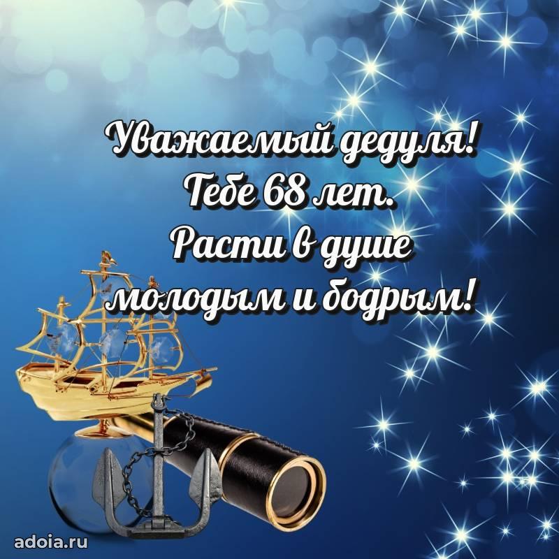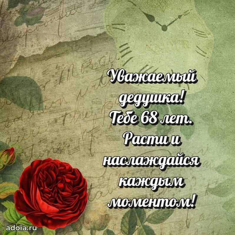 В поисках красивых и современных открыток? Вы попали по адресу! Здесь вы найдете картинки с днем рождения Дедушке на 68 лет! Все картинки в высоком качестве, которые можно скачать или отправить через WhatsApp бесплатно. Также вы найдете много прикольных и мерцающих гифок и анимаций, которые поднимут настроение! Все открытки содержат поздравления в стихах и прозе.