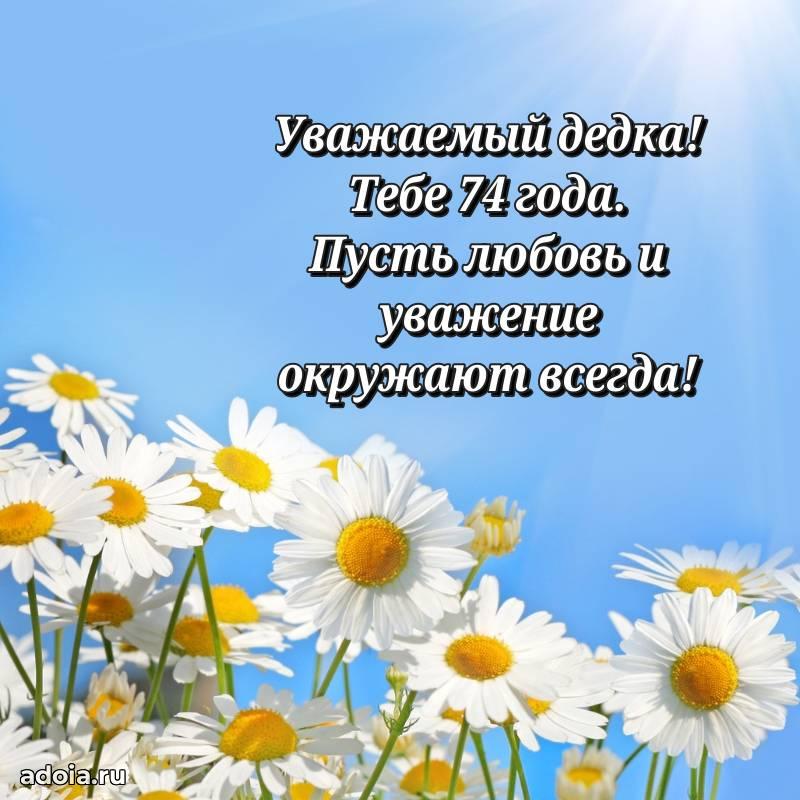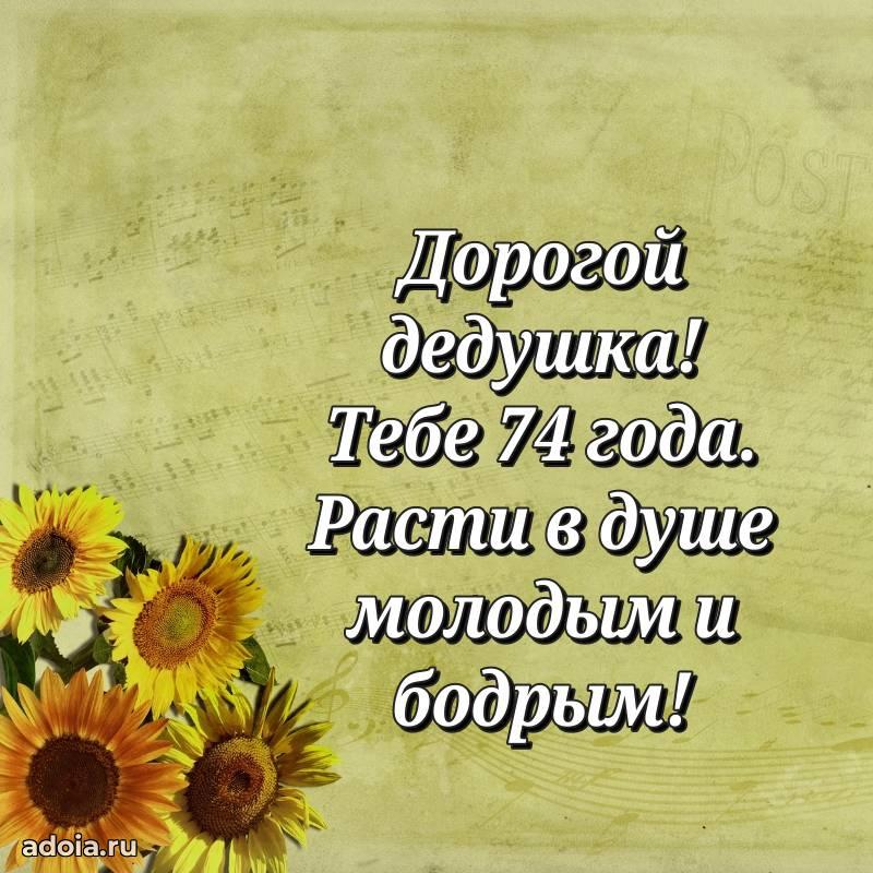 В поисках красивых и современных открыток? Вы попали по адресу! Здесь вы найдете картинки с днем рождения Дедушке на 74 года! Все картинки в высоком качестве, которые можно скачать или отправить через WhatsApp бесплатно. Также вы найдете много прикольных и мерцающих гифок и анимаций, которые поднимут настроение! Все открытки содержат поздравления в стихах и прозе.