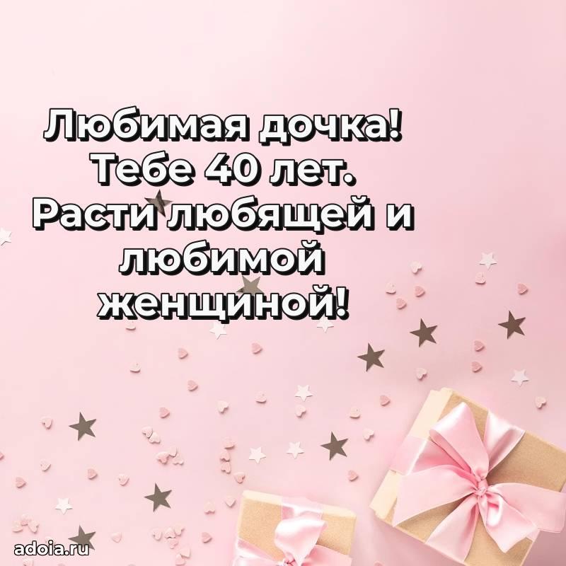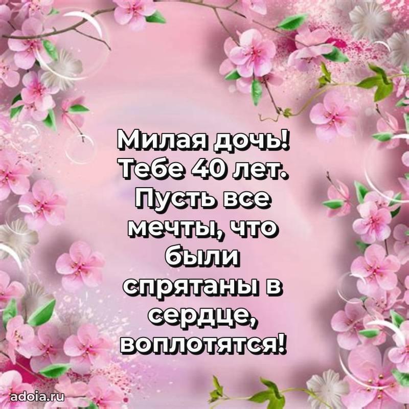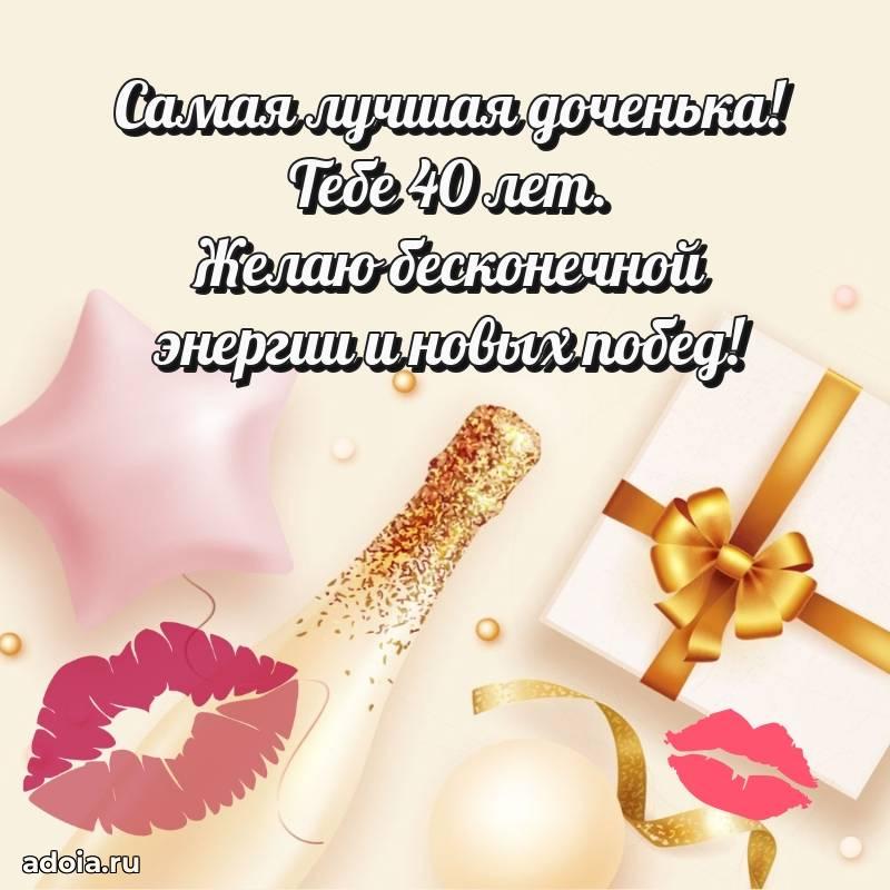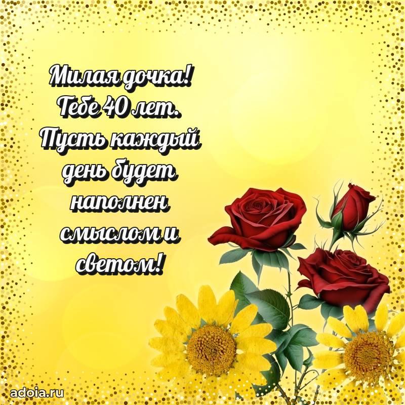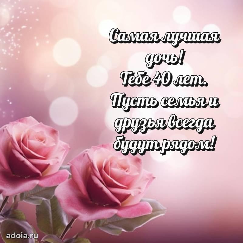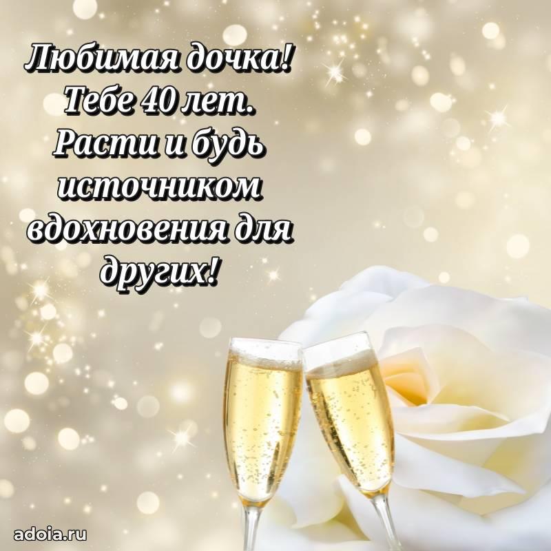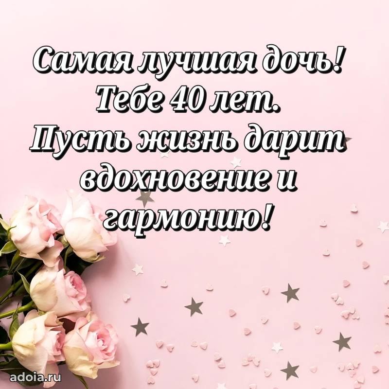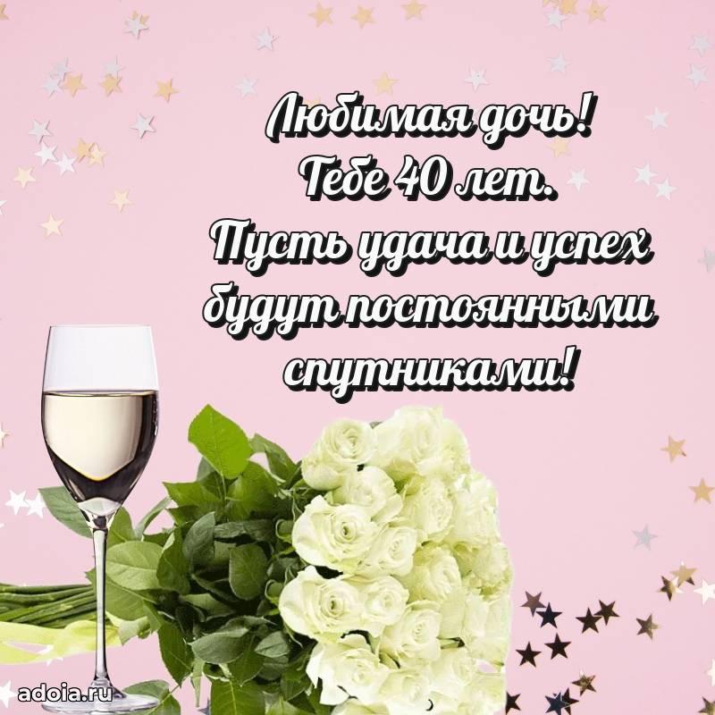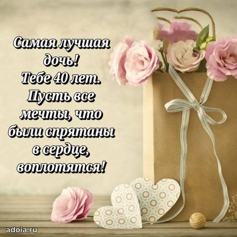 В поисках красивых и современных открыток? Вы попали по адресу! Здесь вы найдете картинки с днем рождения Дочери на 40 лет! Все картинки в высоком качестве, которые можно скачать или отправить через WhatsApp бесплатно. Также вы найдете много прикольных и мерцающих гифок и анимаций, которые поднимут настроение! Все открытки содержат поздравления в стихах и прозе.