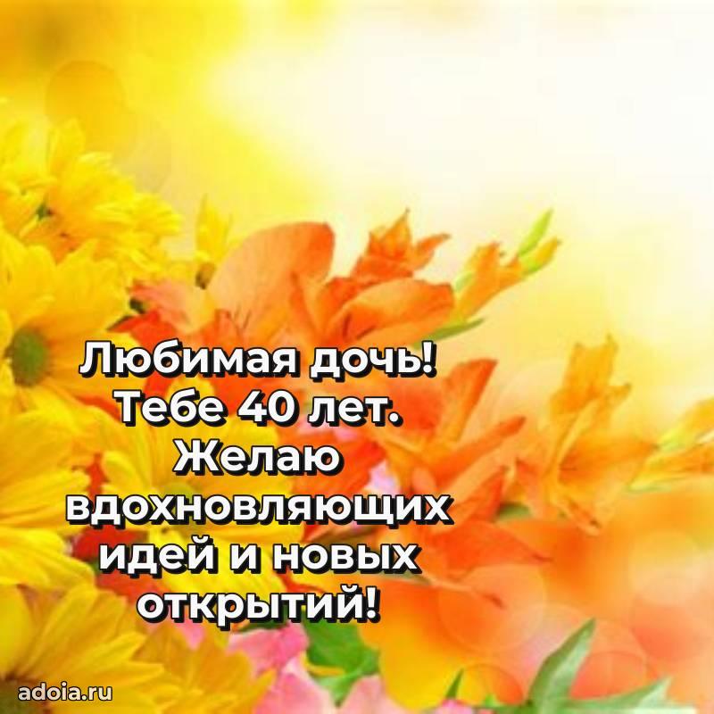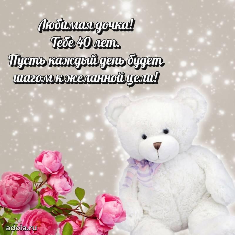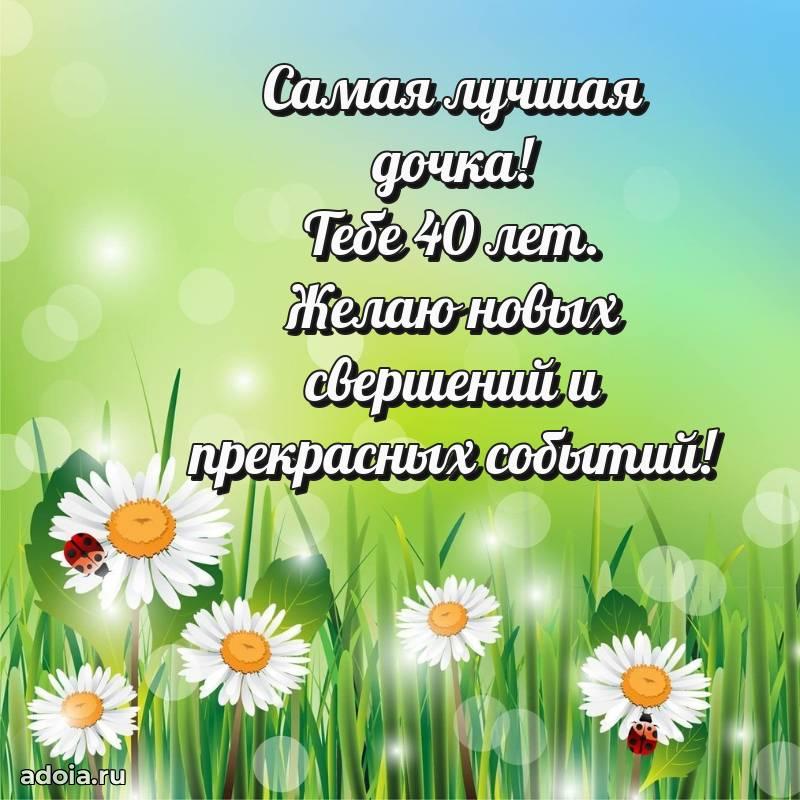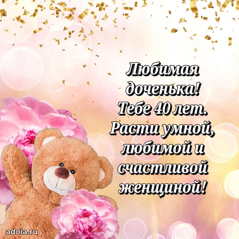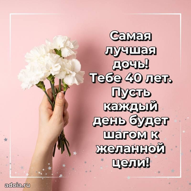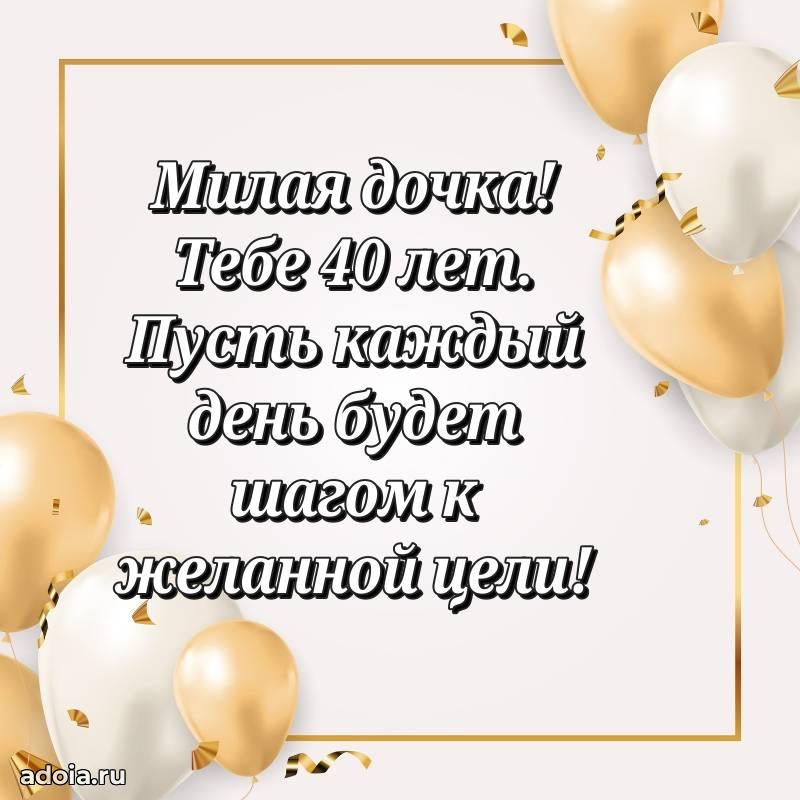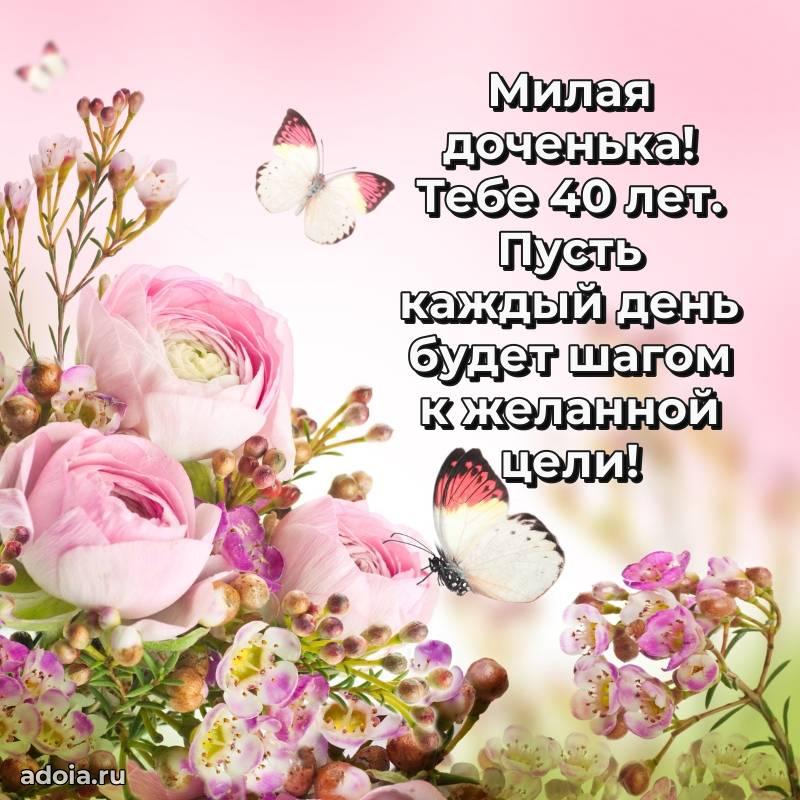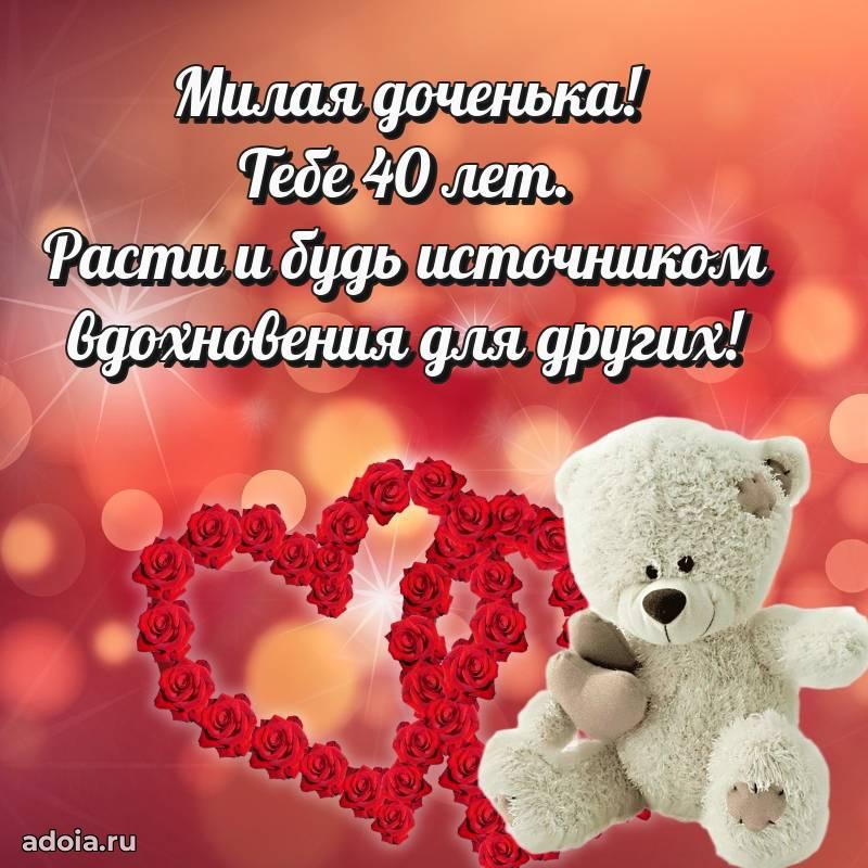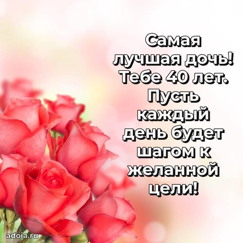 В поисках красивых и современных открыток? Вы попали по адресу! Здесь вы найдете картинки с днем рождения Дочери на 40 лет! Все картинки в высоком качестве, которые можно скачать или отправить через WhatsApp бесплатно. Также вы найдете много прикольных и мерцающих гифок и анимаций, которые поднимут настроение! Все открытки содержат поздравления в стихах и прозе.