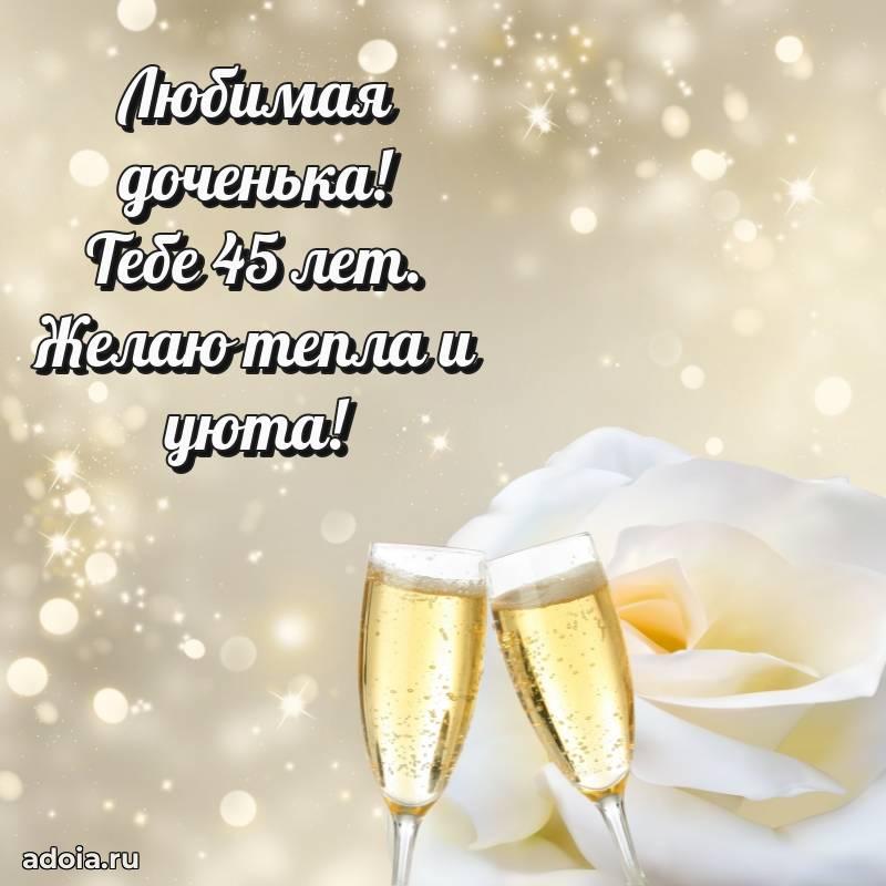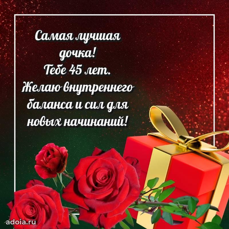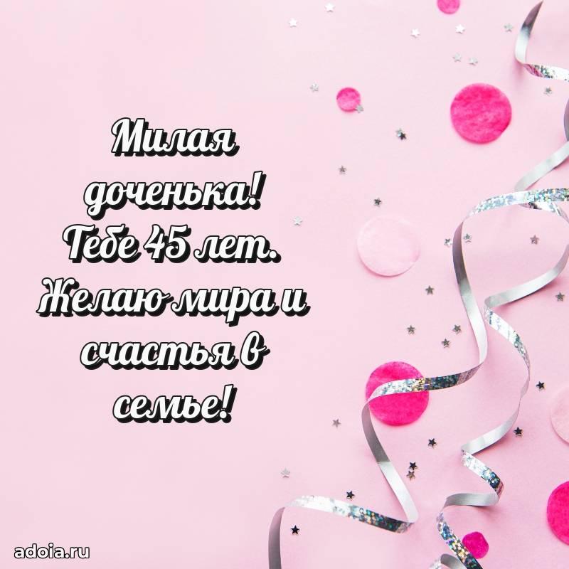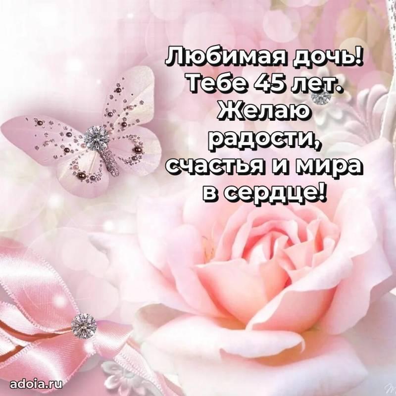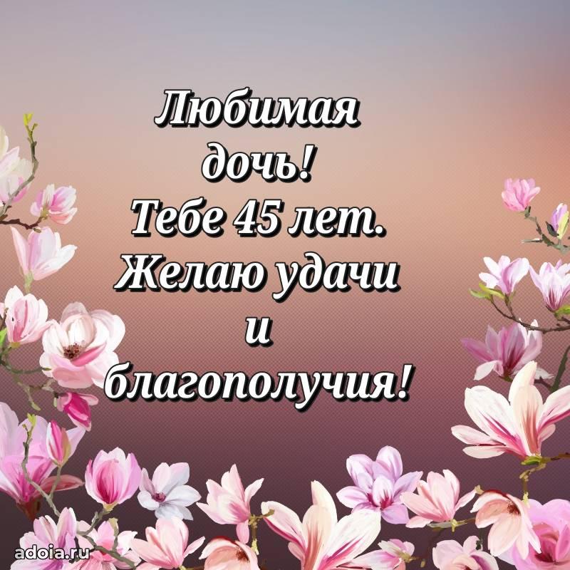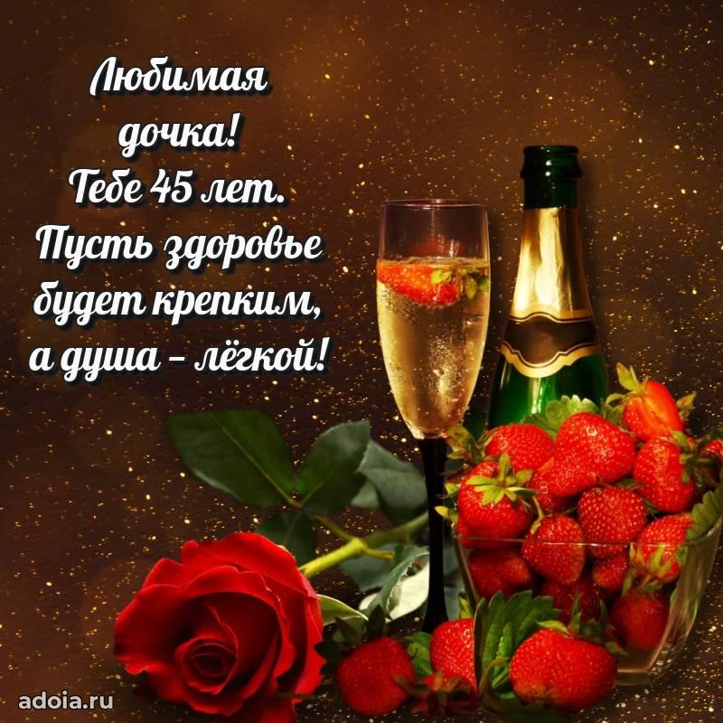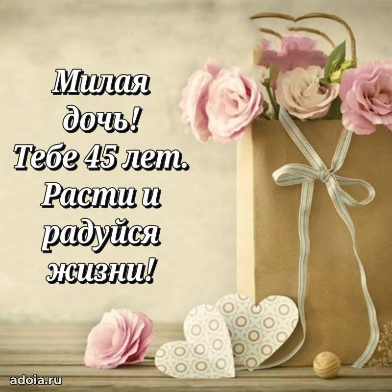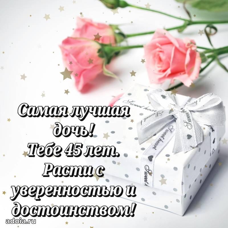 В поисках красивых и современных открыток? Вы попали по адресу! Здесь вы найдете картинки с днем рождения Дочери на 45 лет! Все картинки в высоком качестве, которые можно скачать или отправить через WhatsApp бесплатно. Также вы найдете много прикольных и мерцающих гифок и анимаций, которые поднимут настроение! Все открытки содержат поздравления в стихах и прозе.