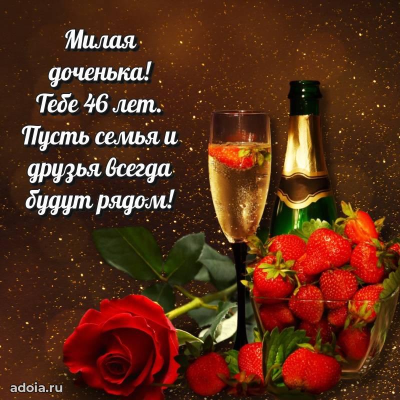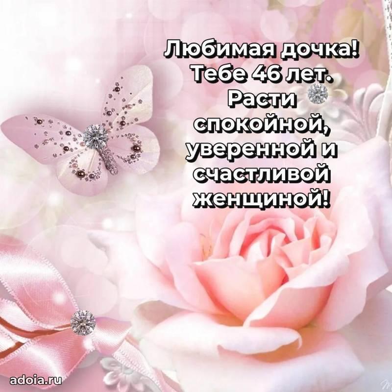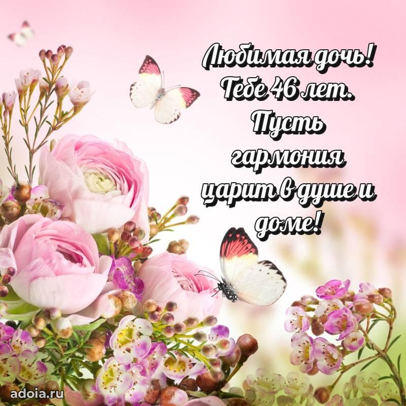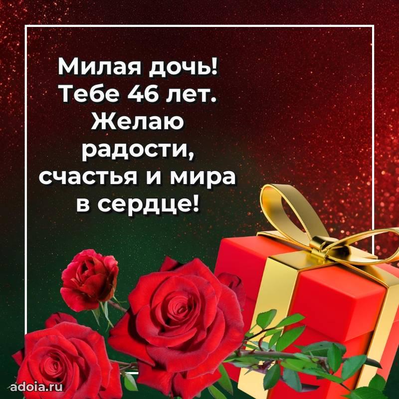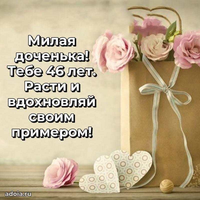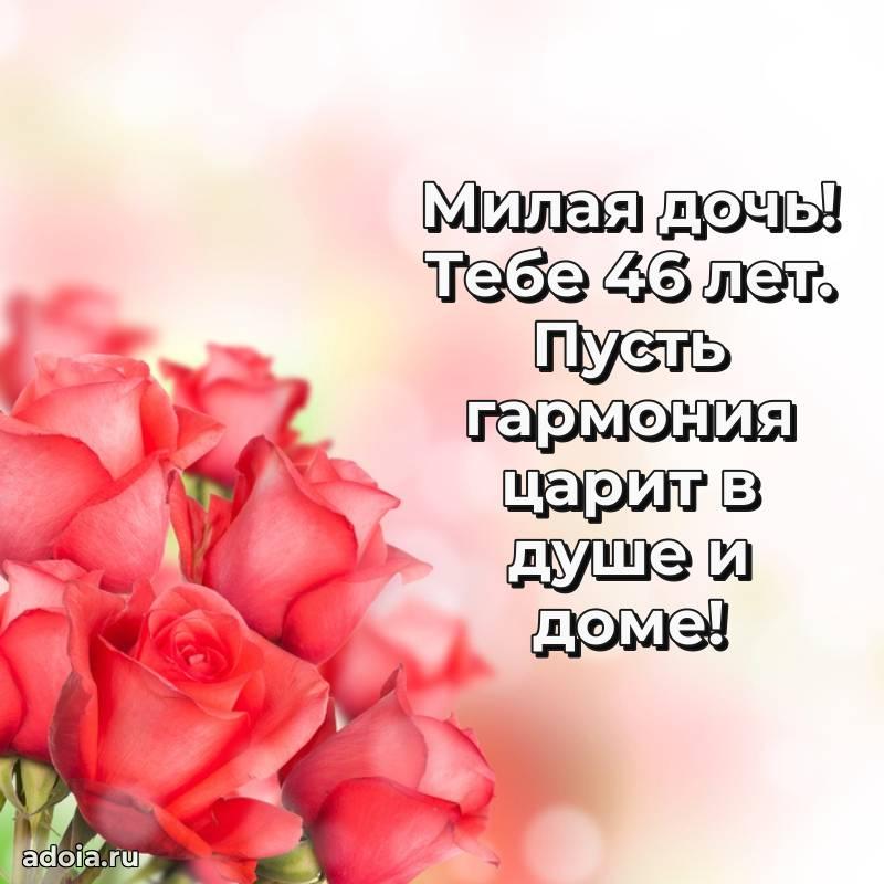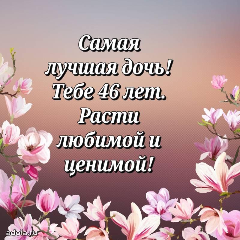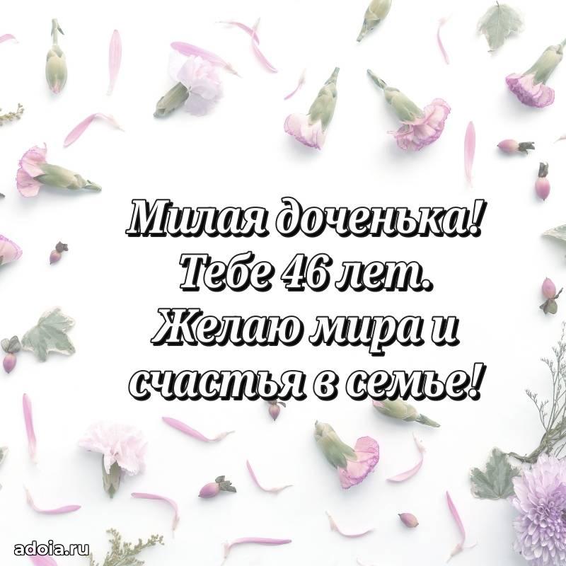 В поисках красивых и современных открыток? Вы попали по адресу! Здесь вы найдете картинки с днем рождения Дочери на 46 лет! Все картинки в высоком качестве, которые можно скачать или отправить через WhatsApp бесплатно. Также вы найдете много прикольных и мерцающих гифок и анимаций, которые поднимут настроение! Все открытки содержат поздравления в стихах и прозе.