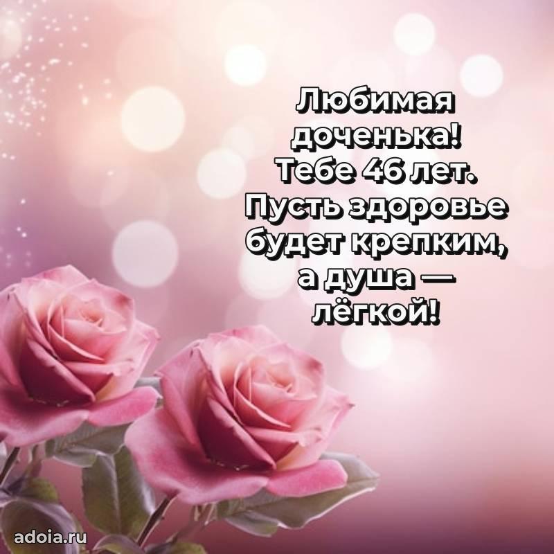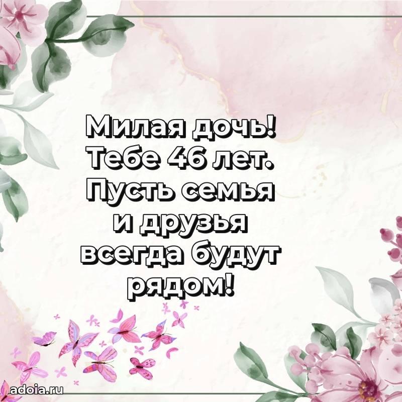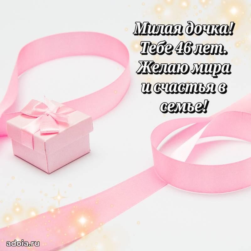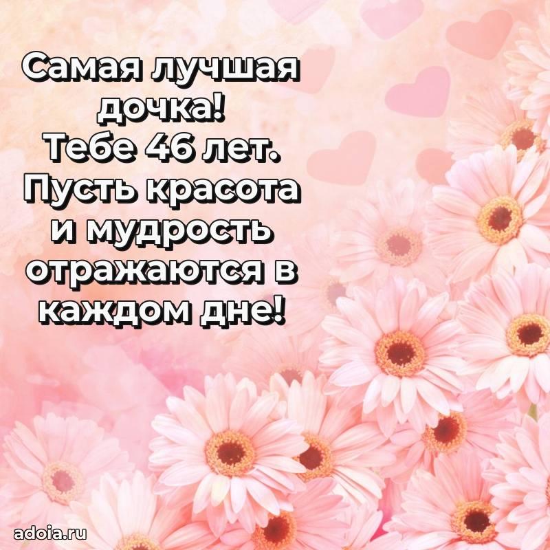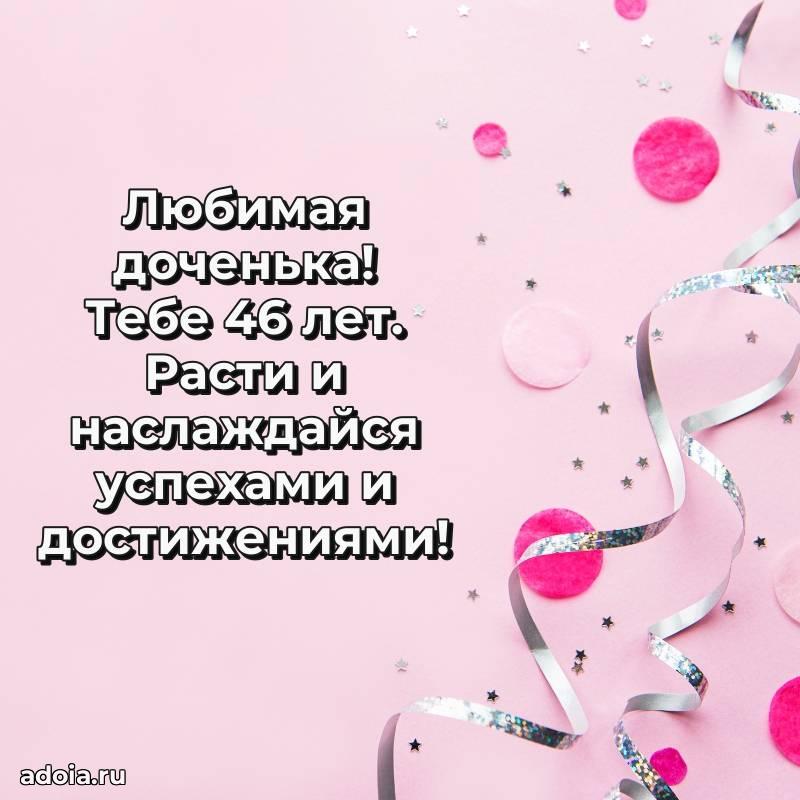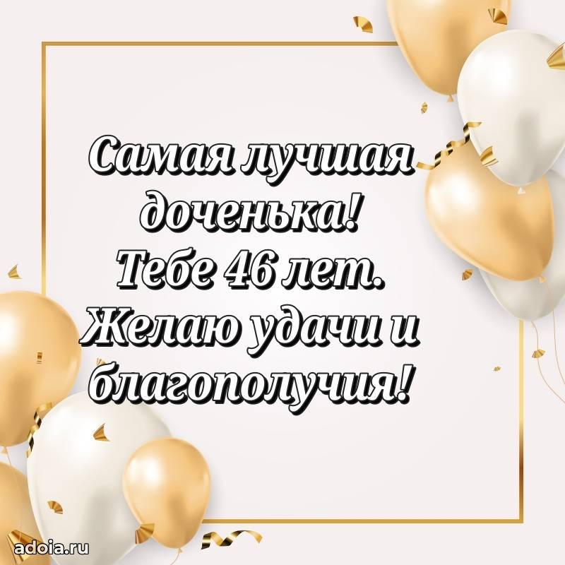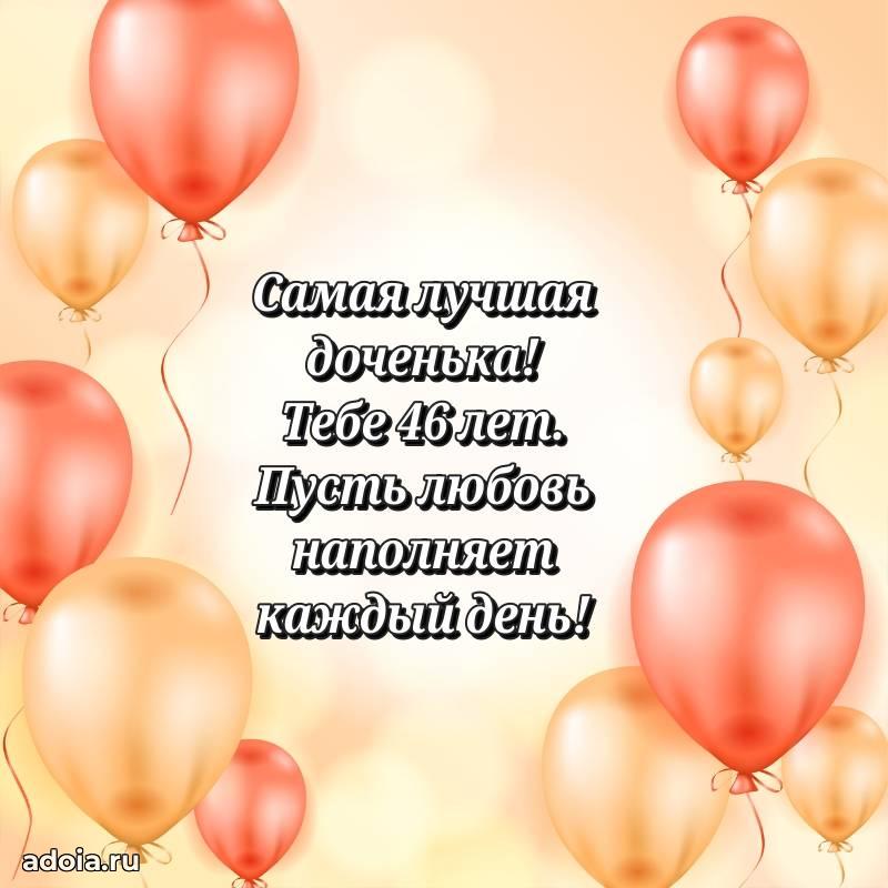 В поисках красивых и современных открыток? Вы попали по адресу! Здесь вы найдете картинки с днем рождения Дочери на 46 лет! Все картинки в высоком качестве, которые можно скачать или отправить через WhatsApp бесплатно. Также вы найдете много прикольных и мерцающих гифок и анимаций, которые поднимут настроение! Все открытки содержат поздравления в стихах и прозе.