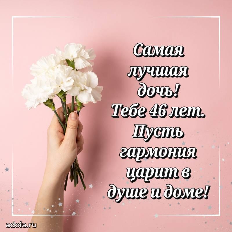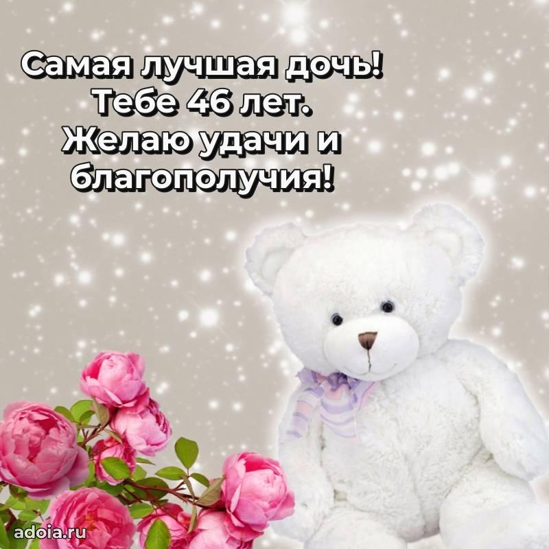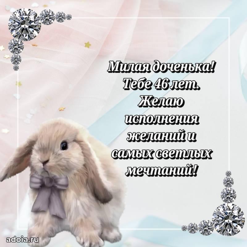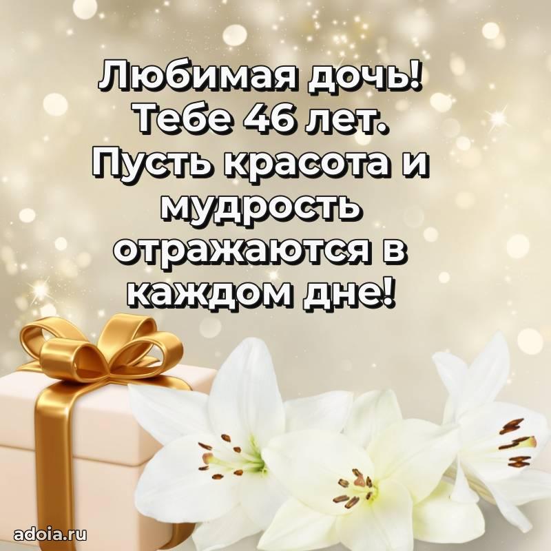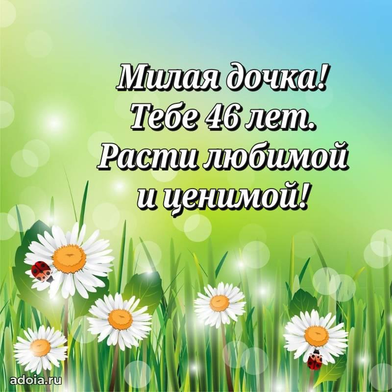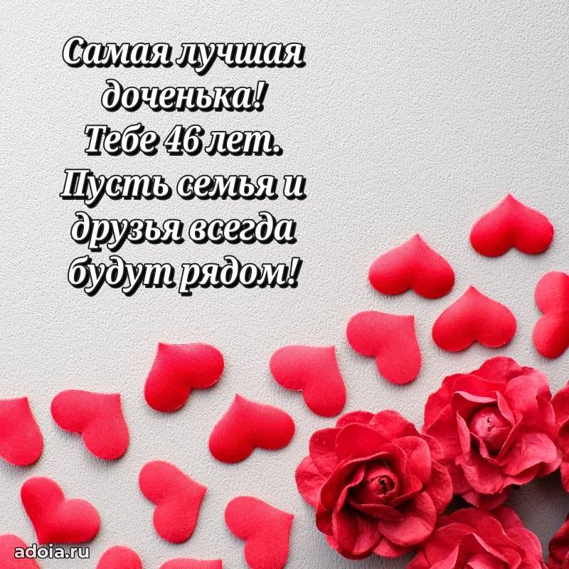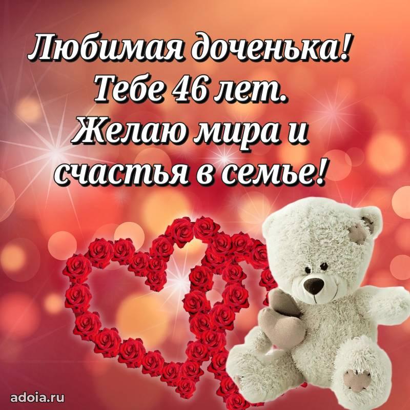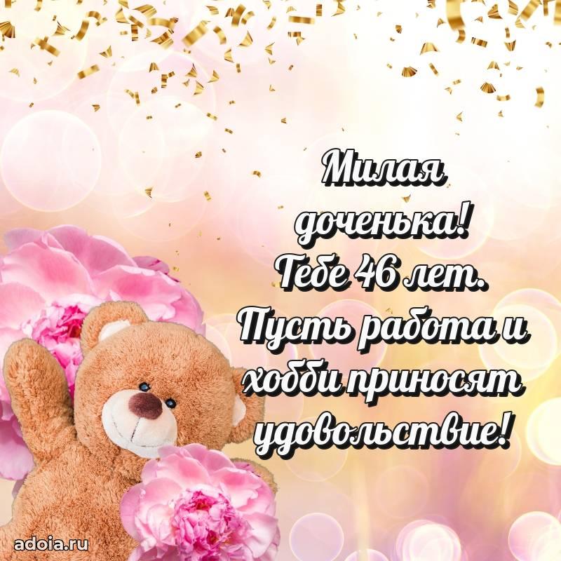 В поисках красивых и современных открыток? Вы попали по адресу! Здесь вы найдете картинки с днем рождения Дочери на 46 лет! Все картинки в высоком качестве, которые можно скачать или отправить через WhatsApp бесплатно. Также вы найдете много прикольных и мерцающих гифок и анимаций, которые поднимут настроение! Все открытки содержат поздравления в стихах и прозе.