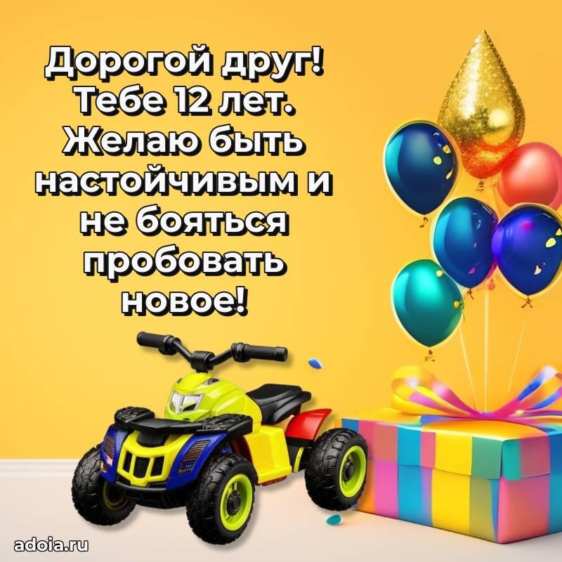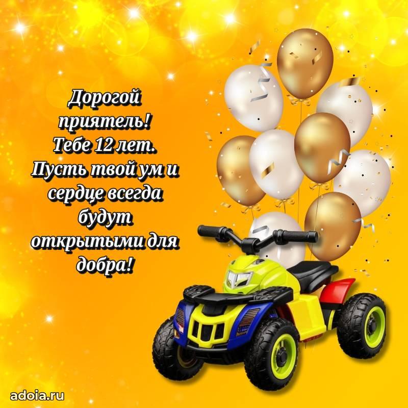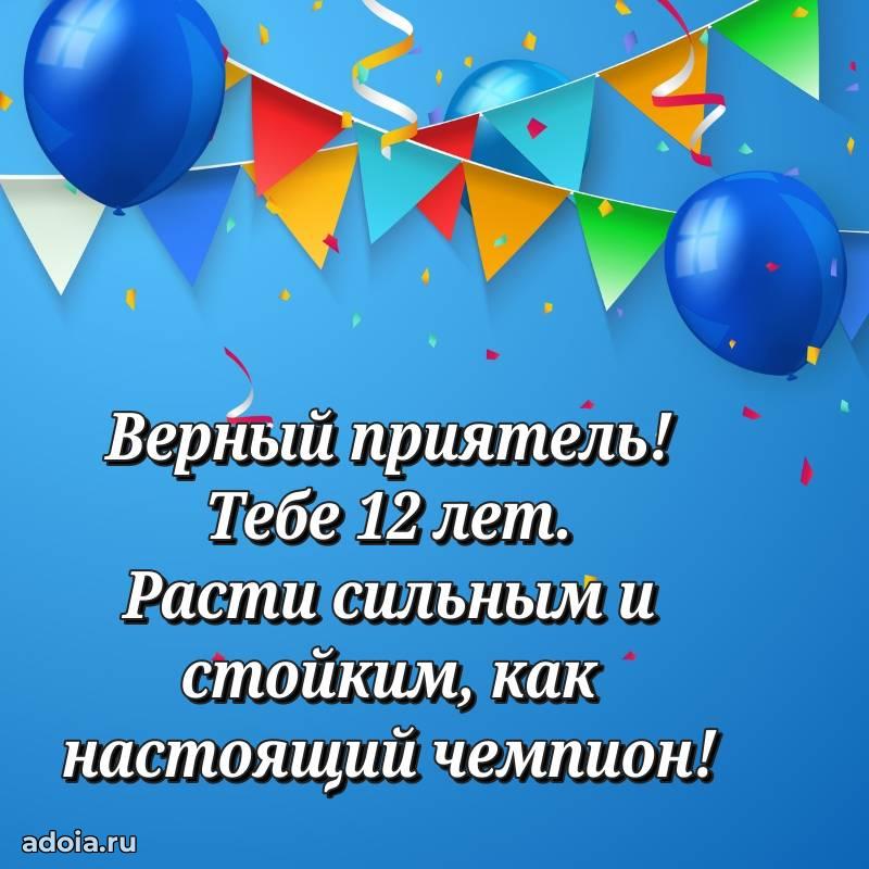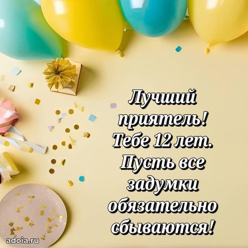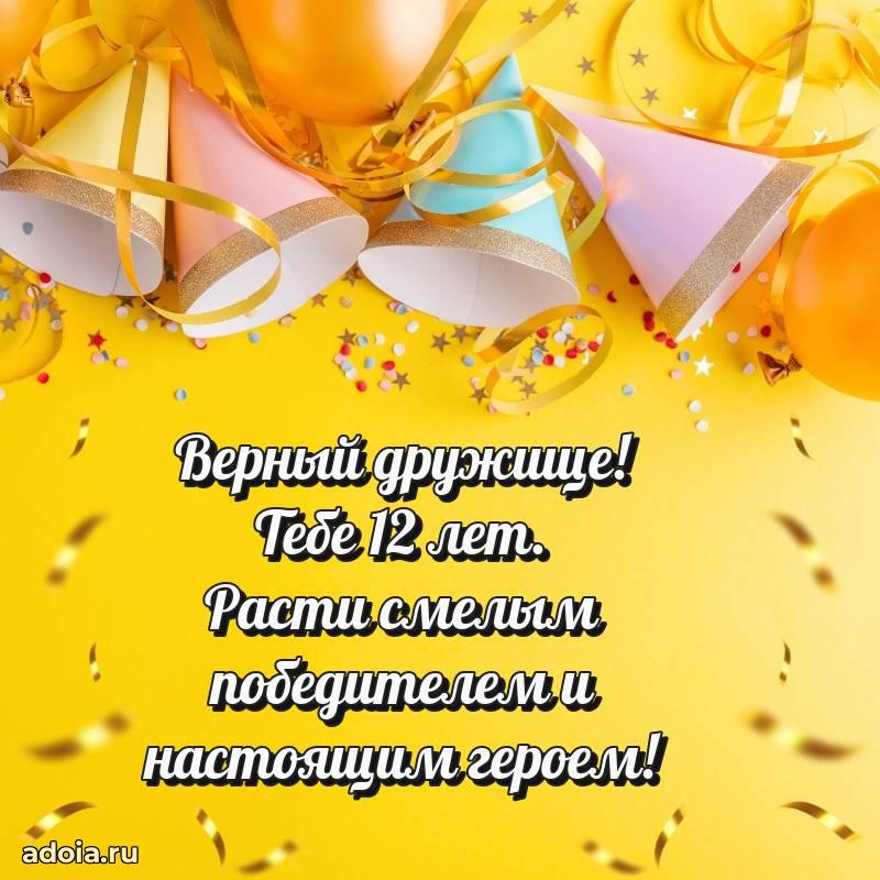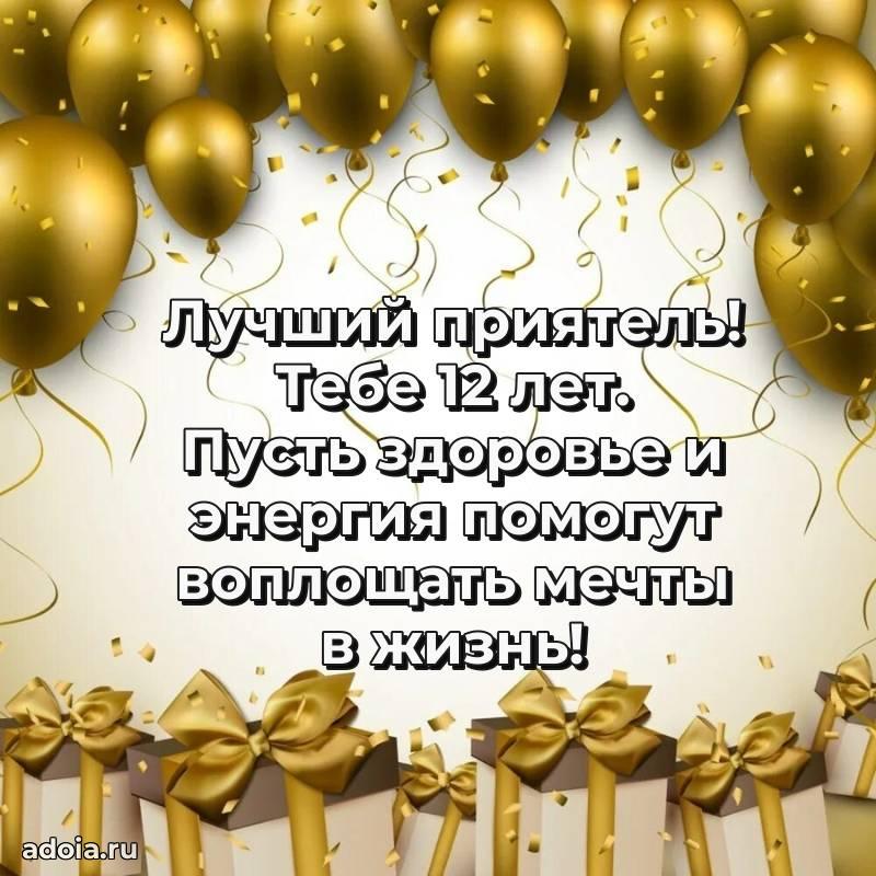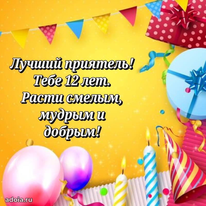 В поисках красивых и современных открыток? Вы попали по адресу! Здесь вы найдете картинки с днем рождения Другу на 12 лет! Все картинки в высоком качестве, которые можно скачать или отправить через WhatsApp бесплатно. Также вы найдете много прикольных и мерцающих гифок и анимаций, которые поднимут настроение! Все открытки содержат поздравления в стихах и прозе.