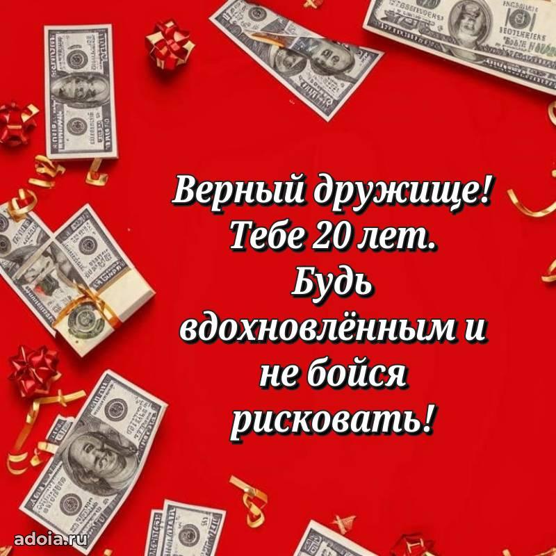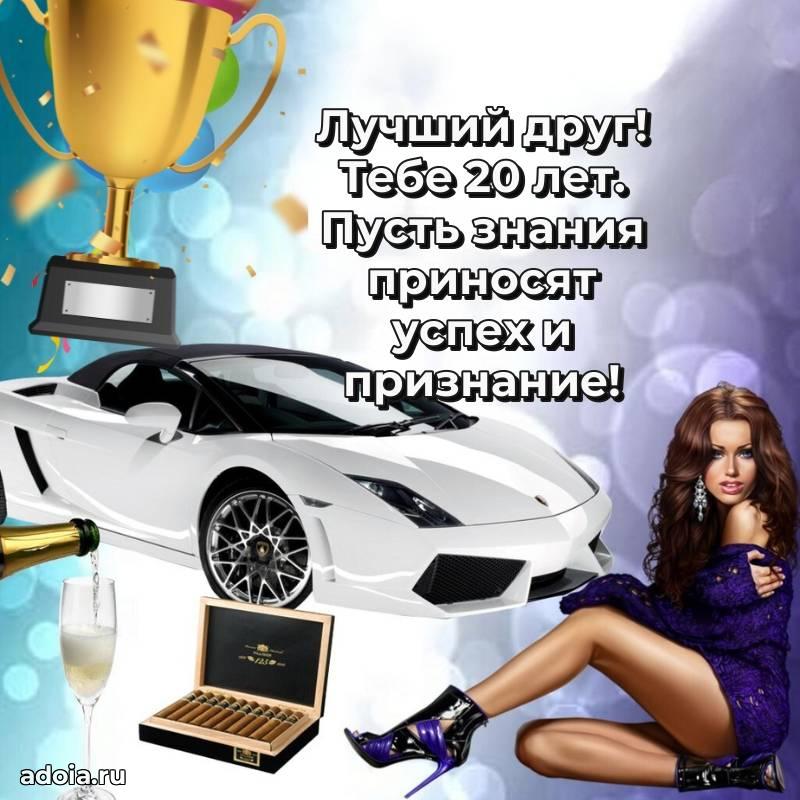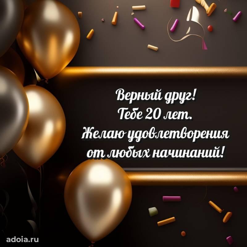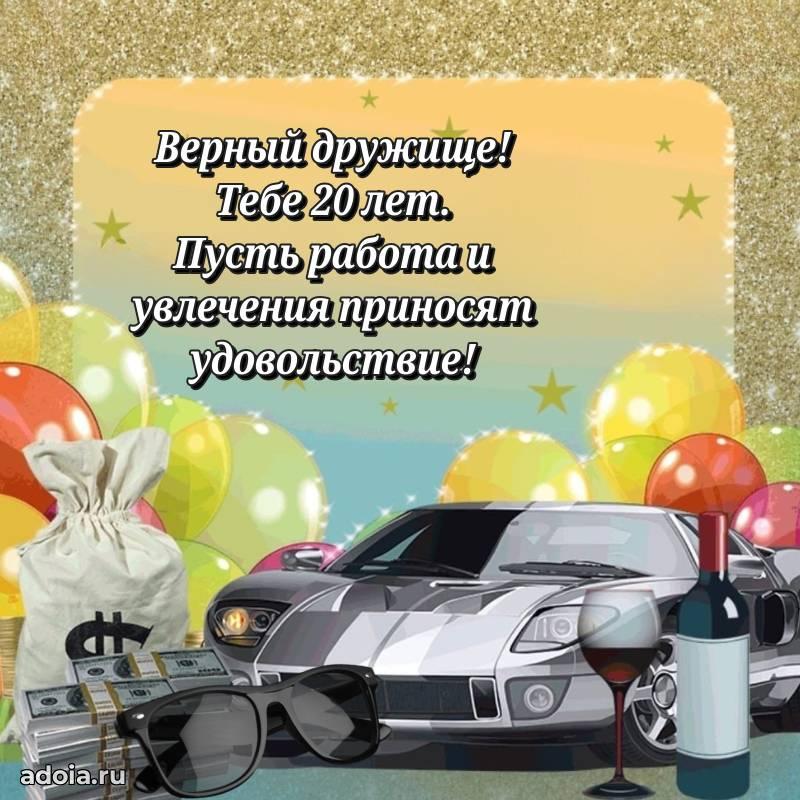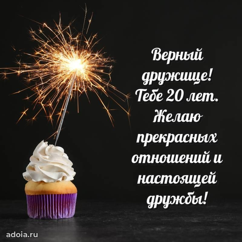 В поисках красивых и современных открыток? Вы попали по адресу! Здесь вы найдете картинки с днем рождения Другу на 20 лет! Все картинки в высоком качестве, которые можно скачать или отправить через WhatsApp бесплатно. Также вы найдете много прикольных и мерцающих гифок и анимаций, которые поднимут настроение! Все открытки содержат поздравления в стихах и прозе.