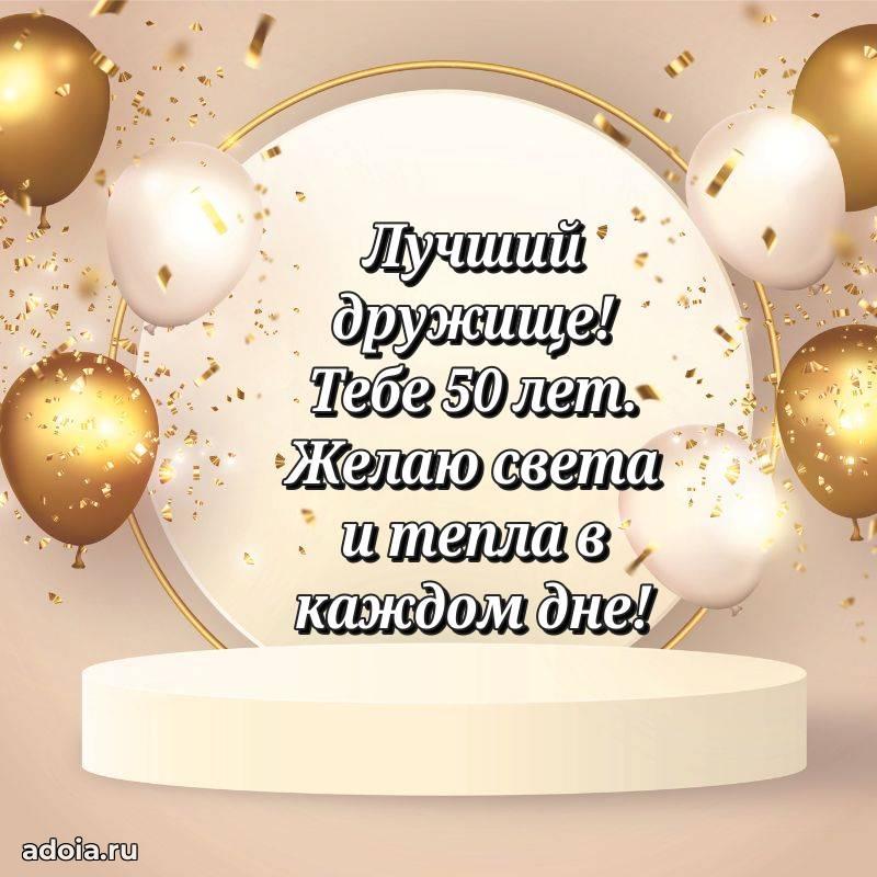 В поисках красивых и современных открыток? Вы попали по адресу! Здесь вы найдете картинки с днем рождения Другу на 50 лет! Все картинки в высоком качестве, которые можно скачать или отправить через WhatsApp бесплатно. Также вы найдете много прикольных и мерцающих гифок и анимаций, которые поднимут настроение! Все открытки содержат поздравления в стихах и прозе.