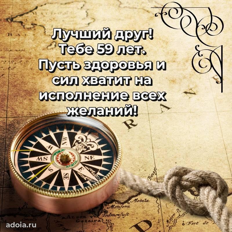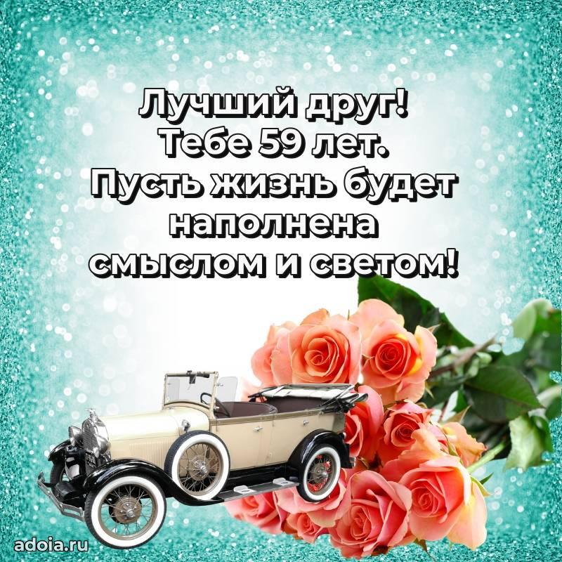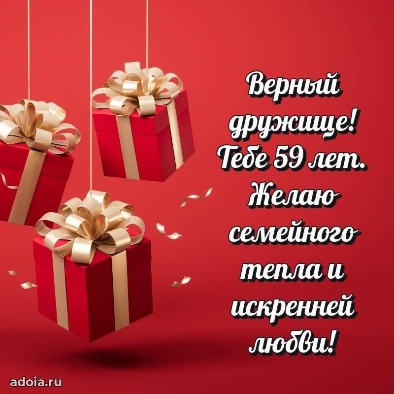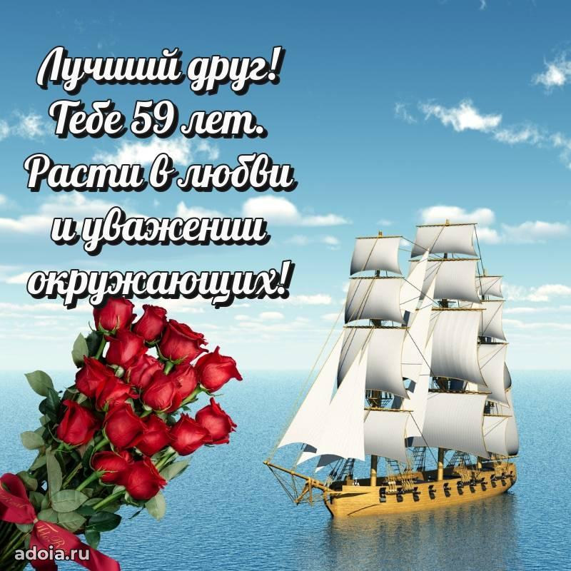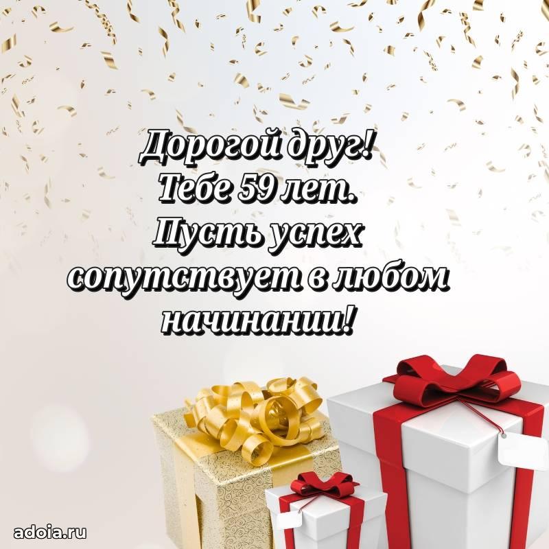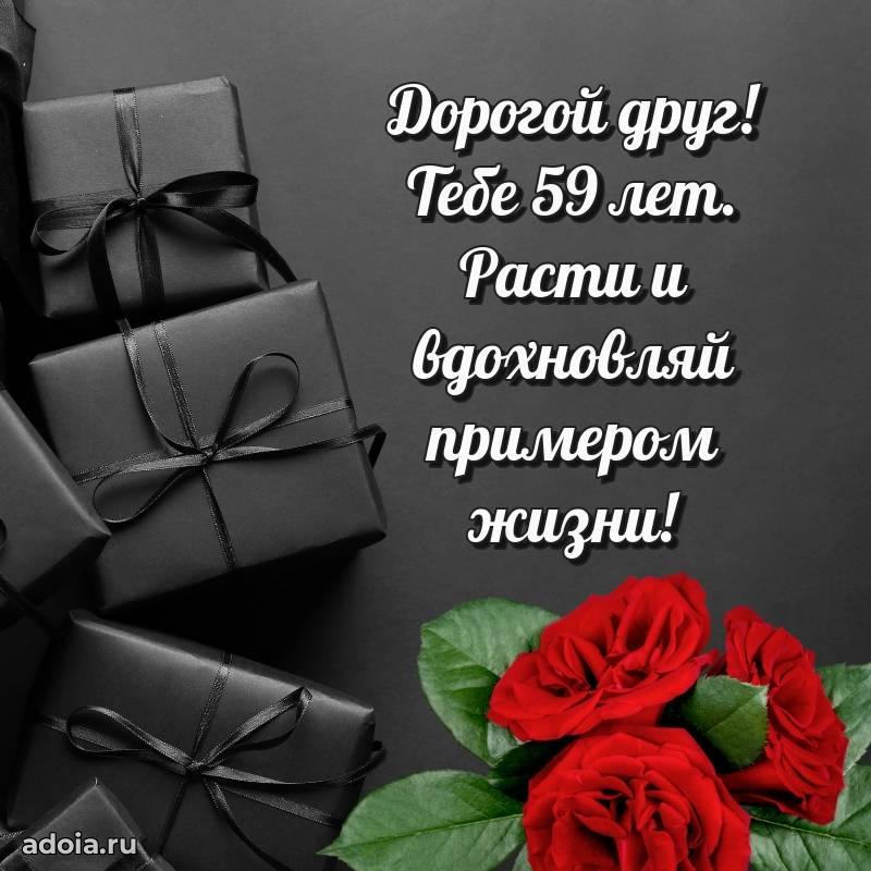В поисках красивых и современных открыток? Вы попали по адресу! Здесь вы найдете картинки с днем рождения Другу на 59 лет! Все картинки в высоком качестве, которые можно скачать или отправить через WhatsApp бесплатно. Также вы найдете много прикольных и мерцающих гифок и анимаций, которые поднимут настроение! Все открытки содержат поздравления в стихах и прозе.