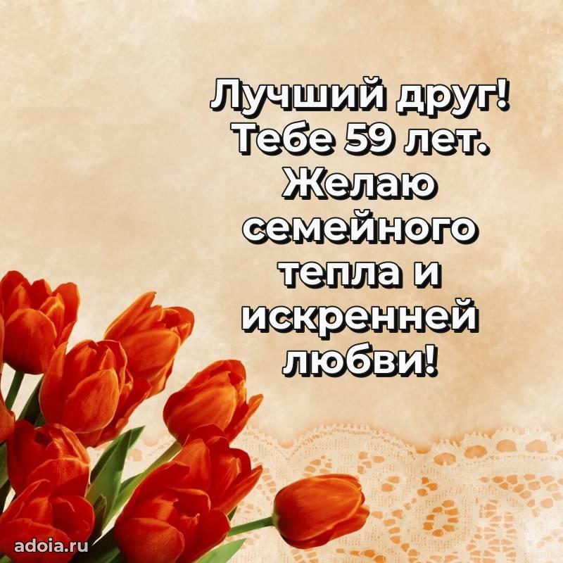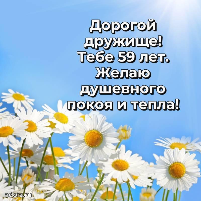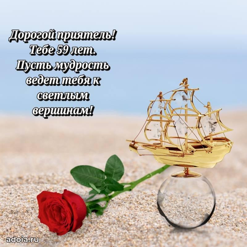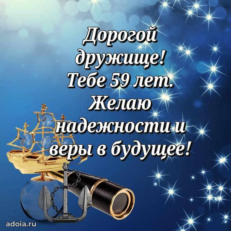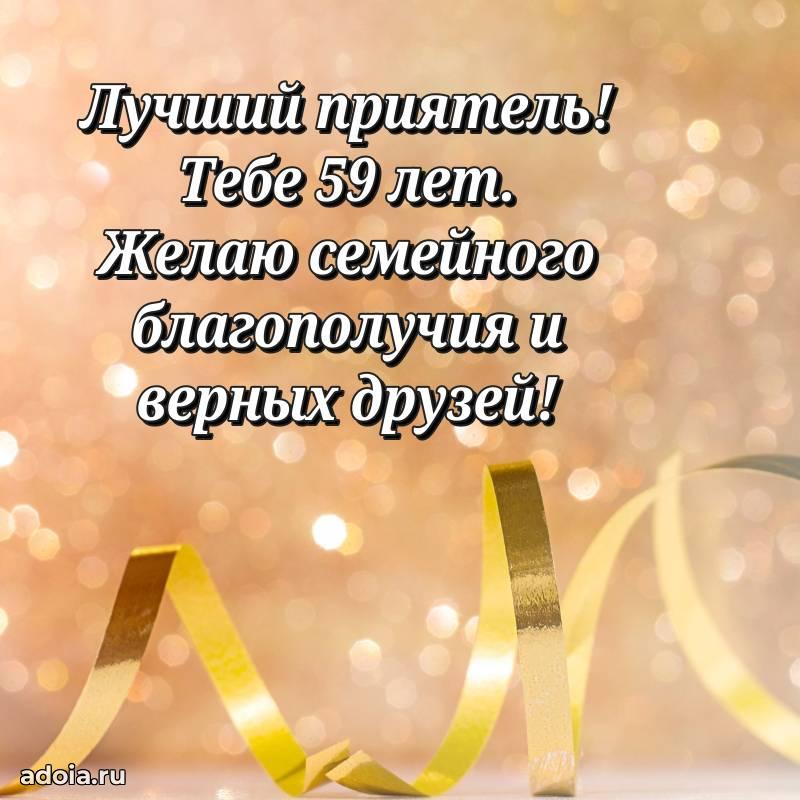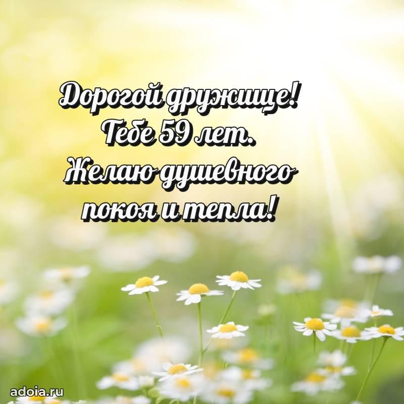 В поисках красивых и современных открыток? Вы попали по адресу! Здесь вы найдете картинки с днем рождения Другу на 59 лет! Все картинки в высоком качестве, которые можно скачать или отправить через WhatsApp бесплатно. Также вы найдете много прикольных и мерцающих гифок и анимаций, которые поднимут настроение! Все открытки содержат поздравления в стихах и прозе.