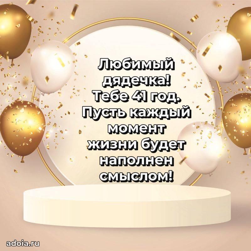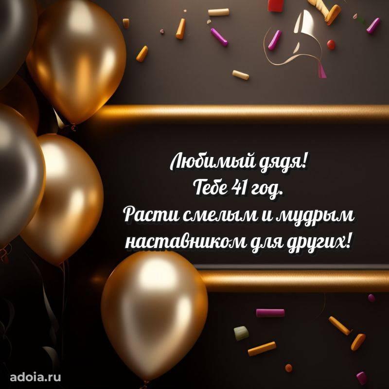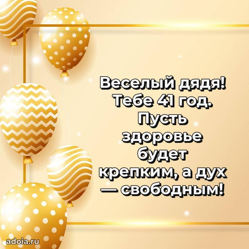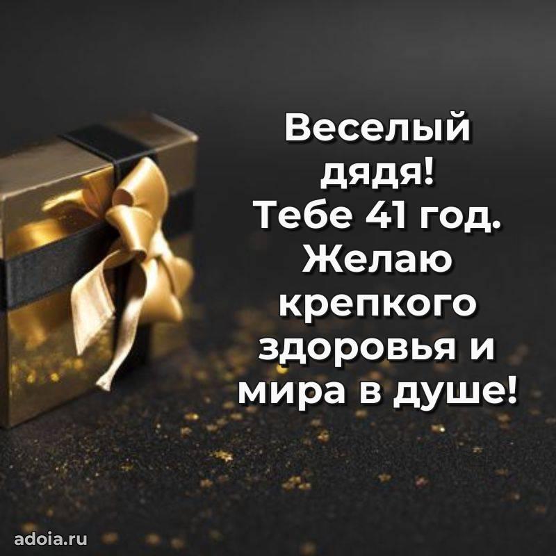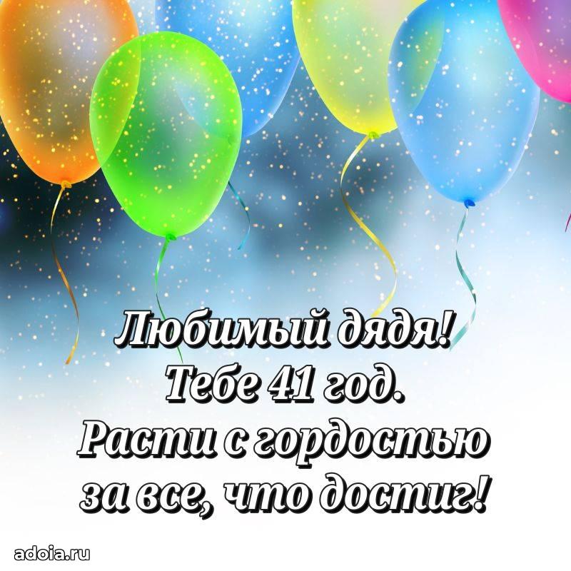 В поисках красивых и современных открыток? Вы попали по адресу! Здесь вы найдете картинки с днем рождения Дяде на 41 год! Все картинки в высоком качестве, которые можно скачать или отправить через WhatsApp бесплатно. Также вы найдете много прикольных и мерцающих гифок и анимаций, которые поднимут настроение! Все открытки содержат поздравления в стихах и прозе.