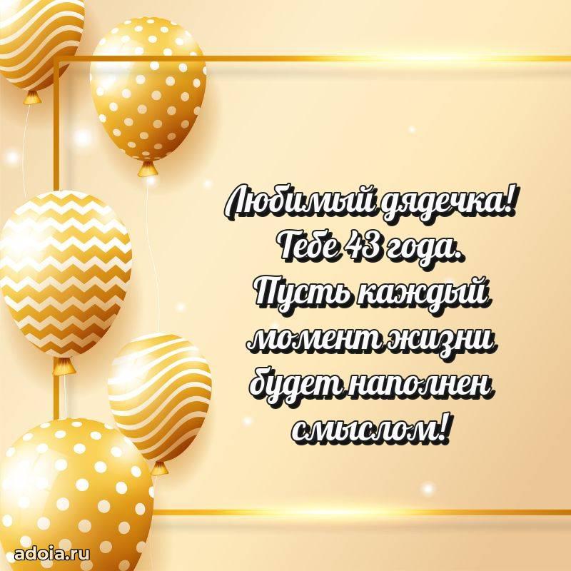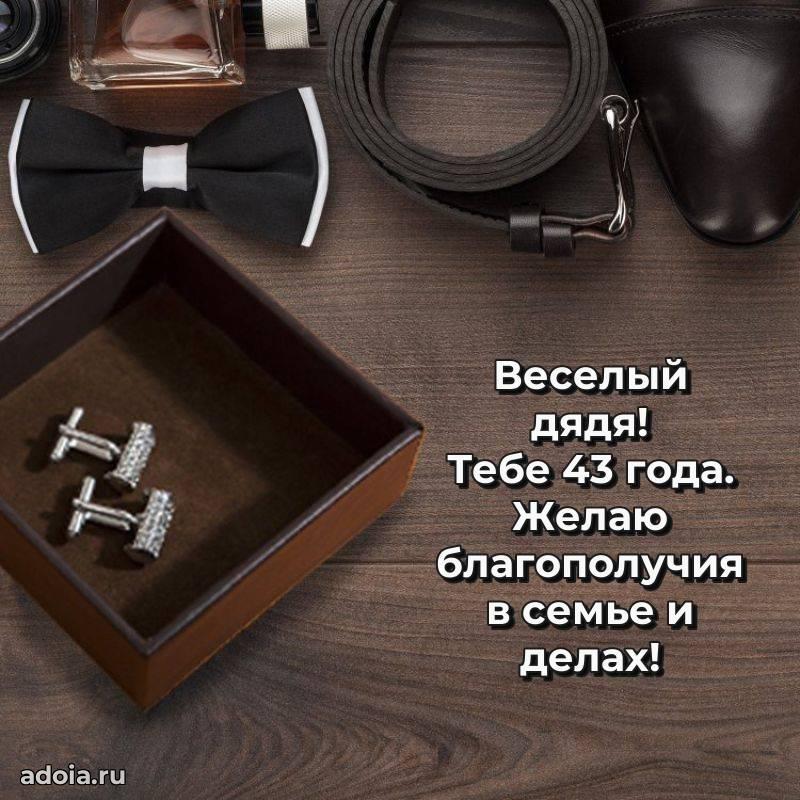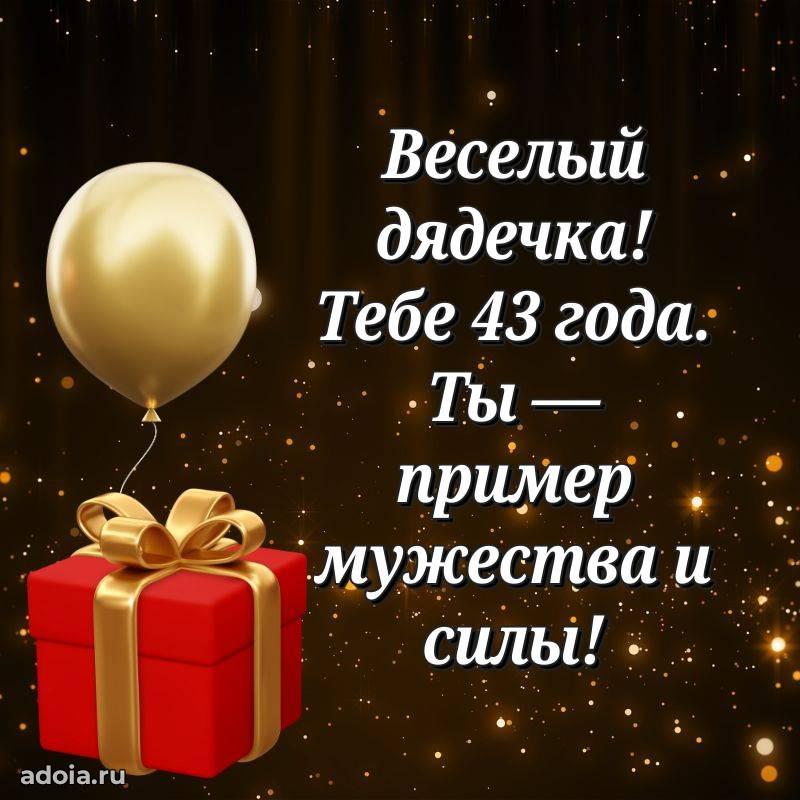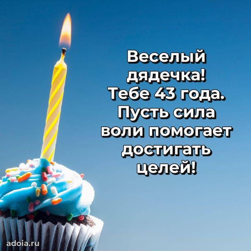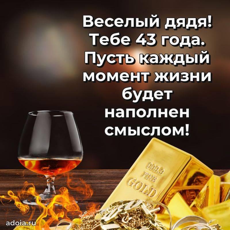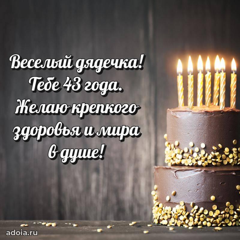 В поисках красивых и современных открыток? Вы попали по адресу! Здесь вы найдете картинки с днем рождения Дяде на 43 года! Все картинки в высоком качестве, которые можно скачать или отправить через WhatsApp бесплатно. Также вы найдете много прикольных и мерцающих гифок и анимаций, которые поднимут настроение! Все открытки содержат поздравления в стихах и прозе.