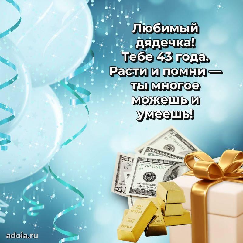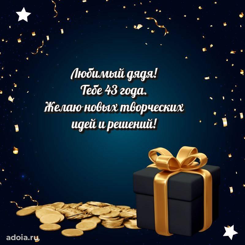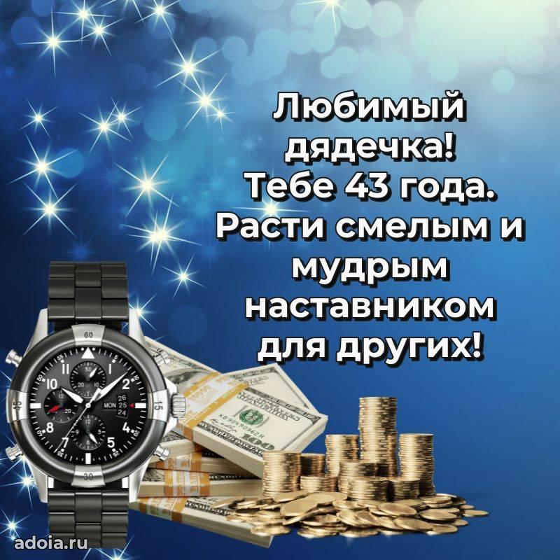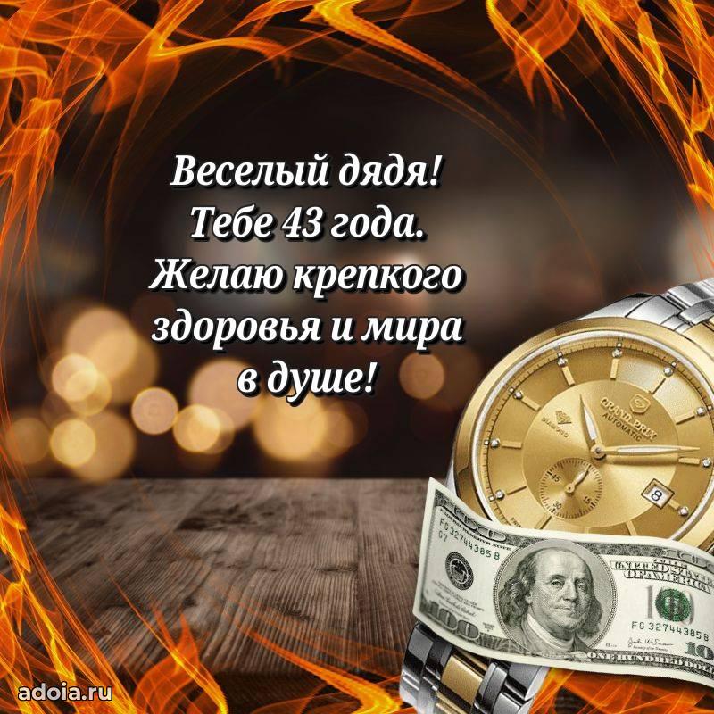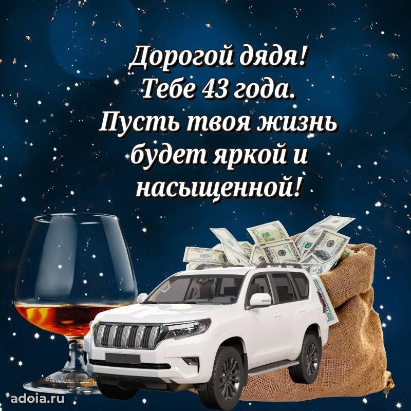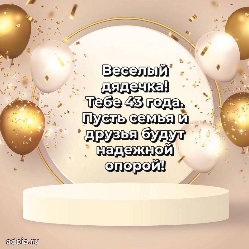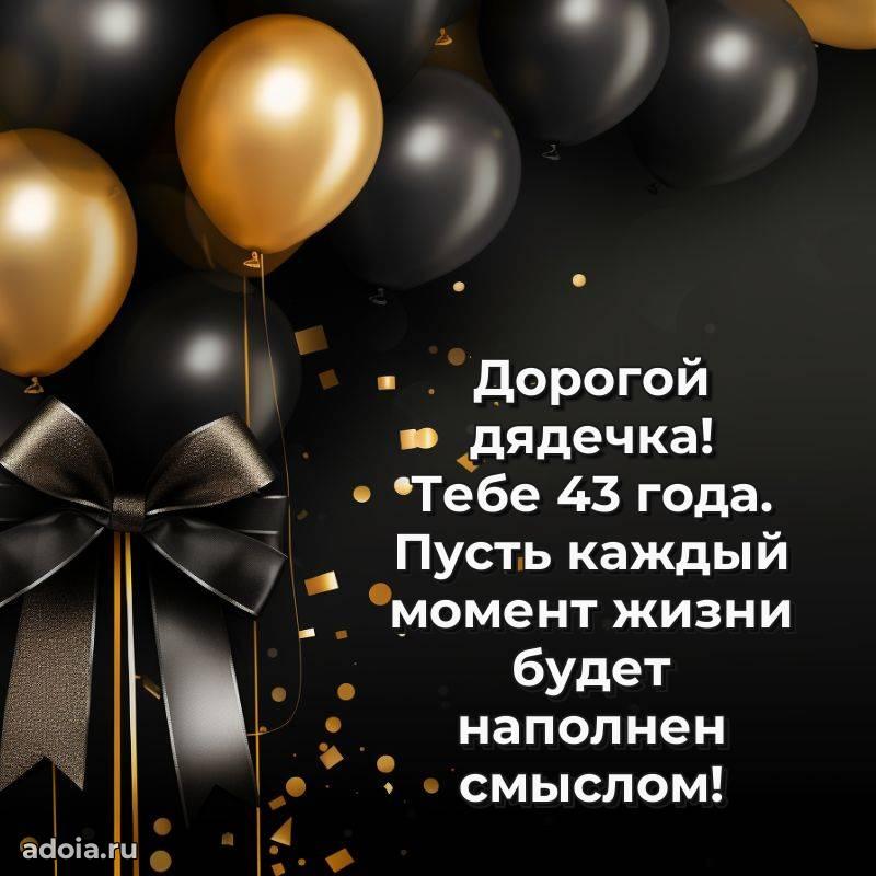 В поисках красивых и современных открыток? Вы попали по адресу! Здесь вы найдете картинки с днем рождения Дяде на 43 года! Все картинки в высоком качестве, которые можно скачать или отправить через WhatsApp бесплатно. Также вы найдете много прикольных и мерцающих гифок и анимаций, которые поднимут настроение! Все открытки содержат поздравления в стихах и прозе.