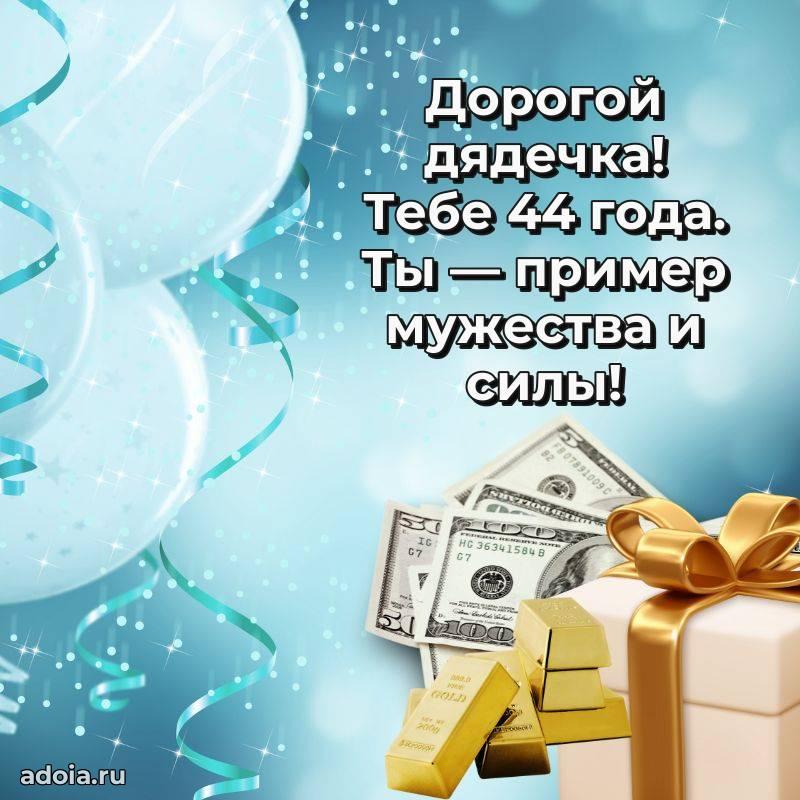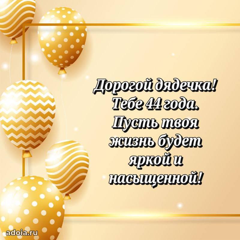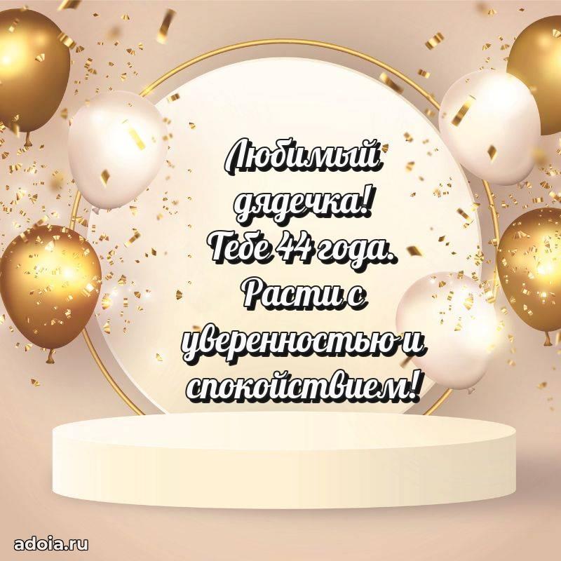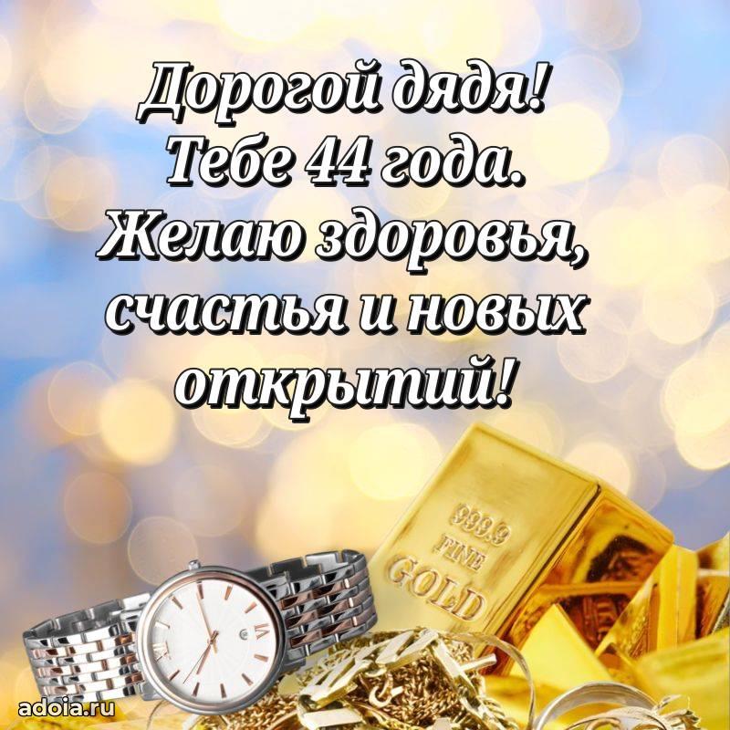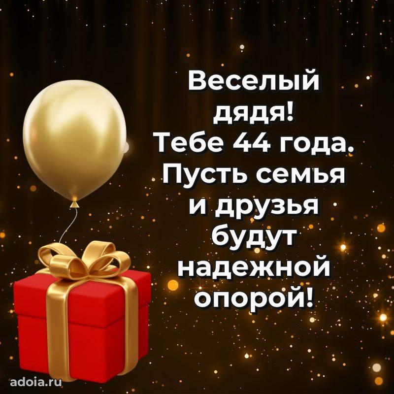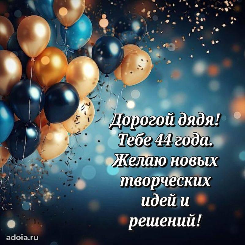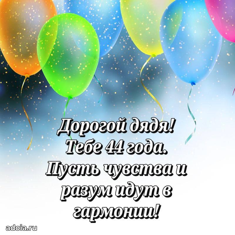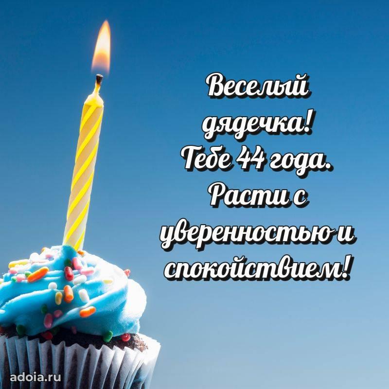 В поисках красивых и современных открыток? Вы попали по адресу! Здесь вы найдете картинки с днем рождения Дяде на 44 года! Все картинки в высоком качестве, которые можно скачать или отправить через WhatsApp бесплатно. Также вы найдете много прикольных и мерцающих гифок и анимаций, которые поднимут настроение! Все открытки содержат поздравления в стихах и прозе.