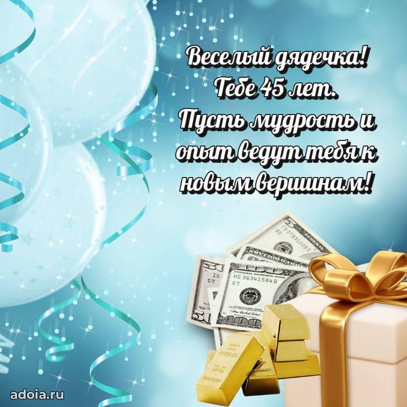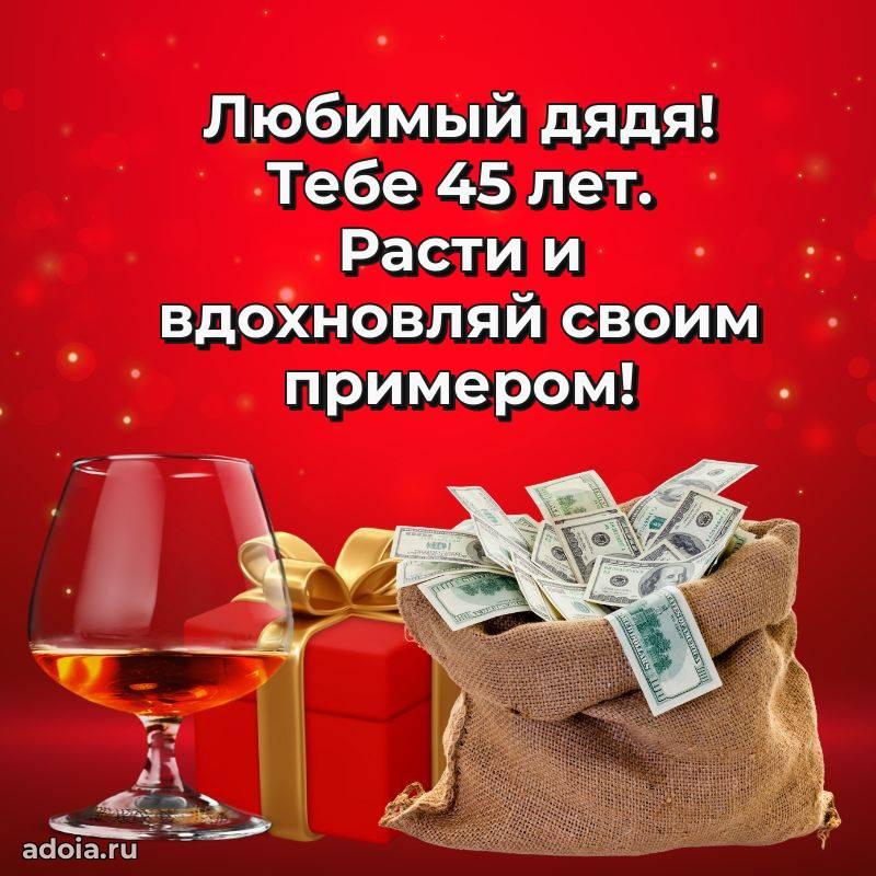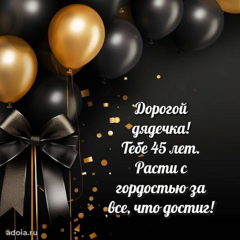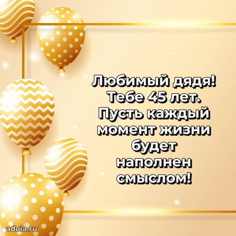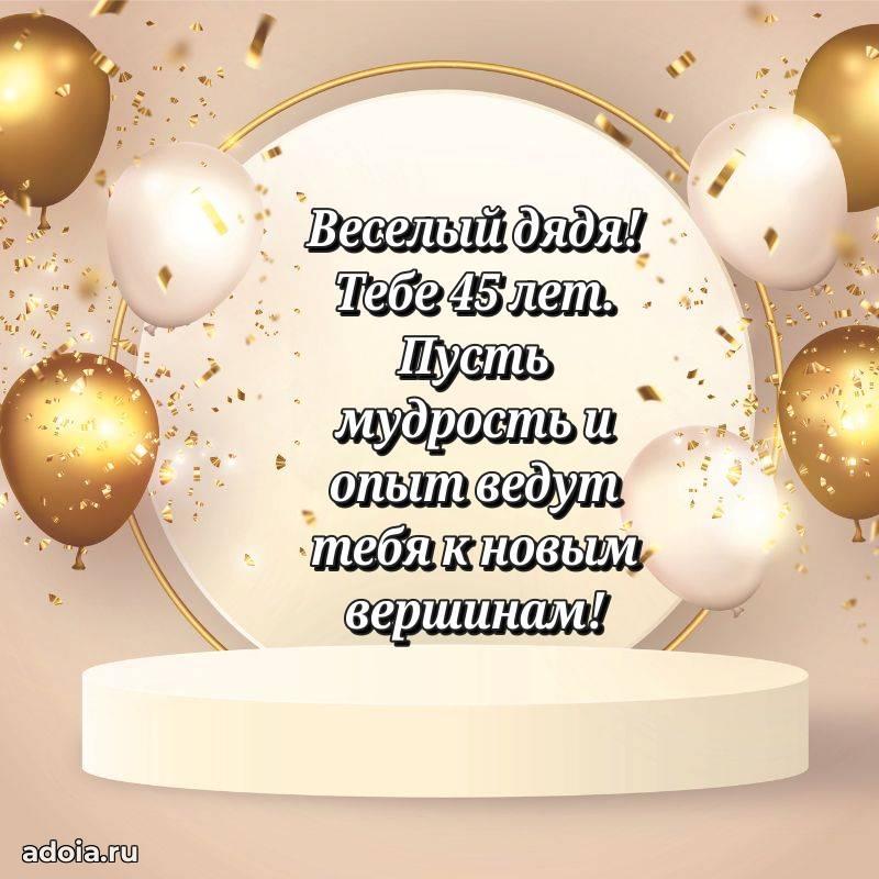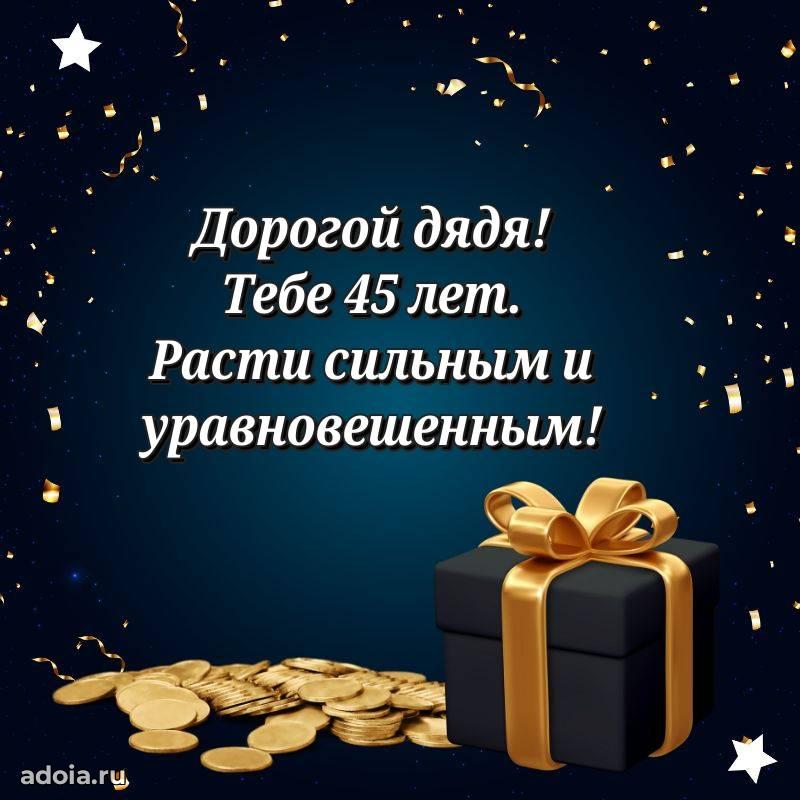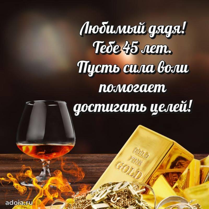 В поисках красивых и современных открыток? Вы попали по адресу! Здесь вы найдете картинки с днем рождения Дяде на 45 лет! Все картинки в высоком качестве, которые можно скачать или отправить через WhatsApp бесплатно. Также вы найдете много прикольных и мерцающих гифок и анимаций, которые поднимут настроение! Все открытки содержат поздравления в стихах и прозе.
