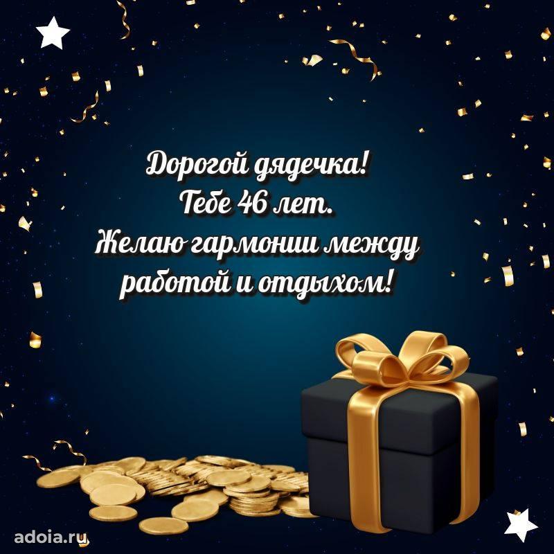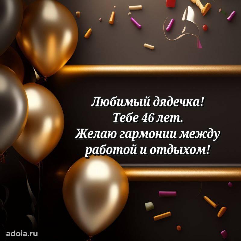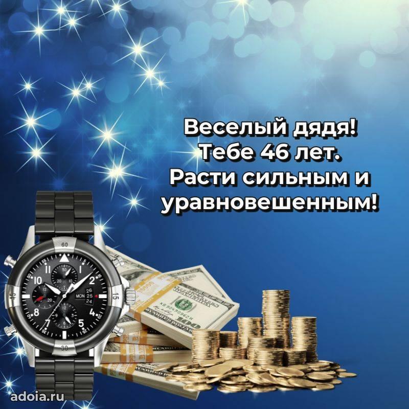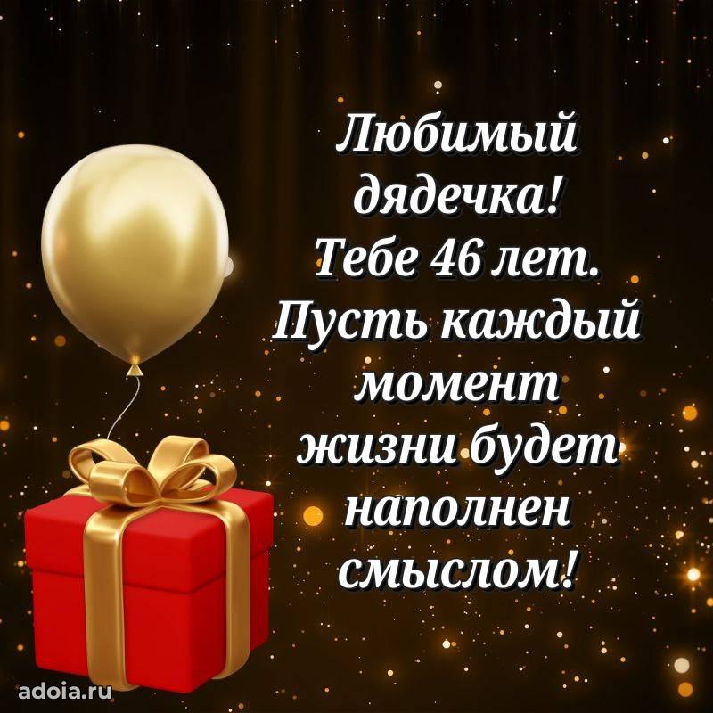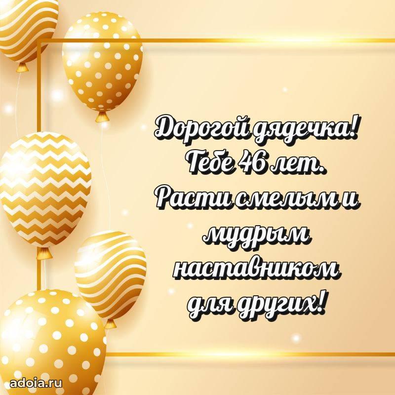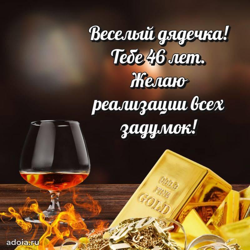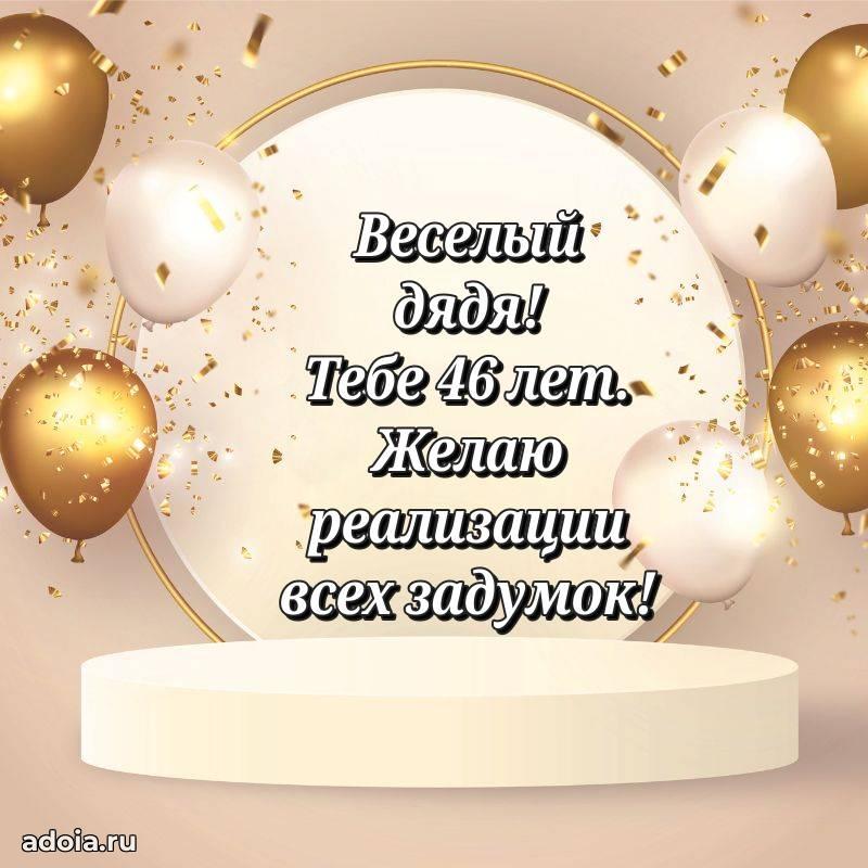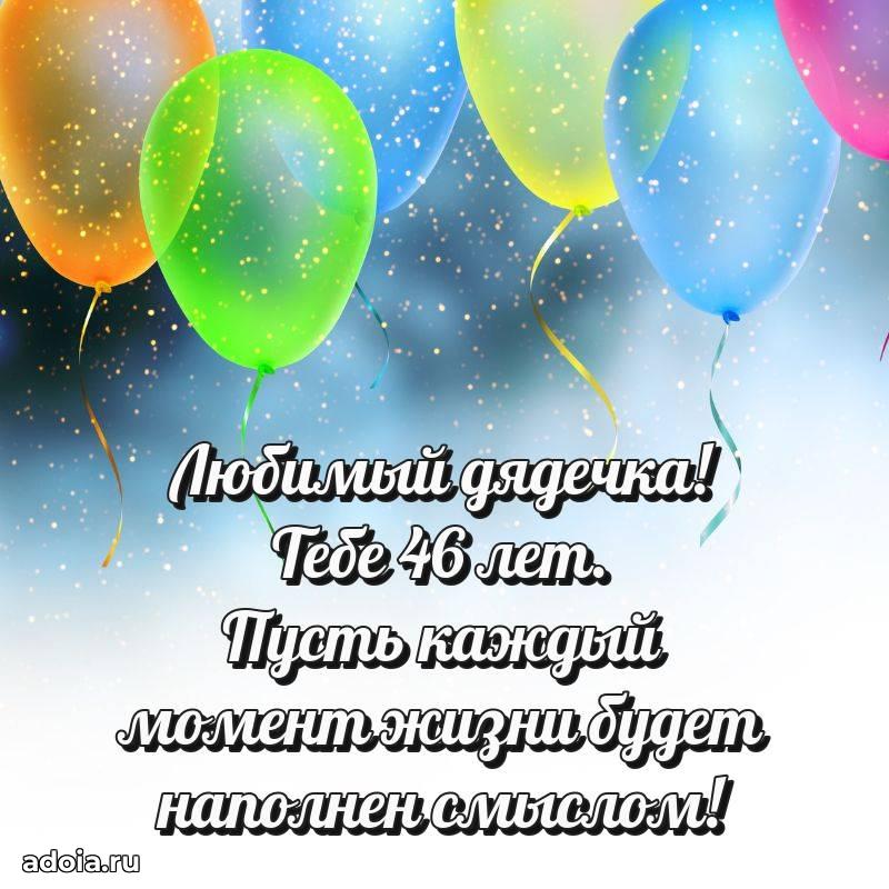 В поисках красивых и современных открыток? Вы попали по адресу! Здесь вы найдете картинки с днем рождения Дяде на 46 лет! Все картинки в высоком качестве, которые можно скачать или отправить через WhatsApp бесплатно. Также вы найдете много прикольных и мерцающих гифок и анимаций, которые поднимут настроение! Все открытки содержат поздравления в стихах и прозе.