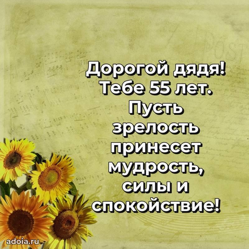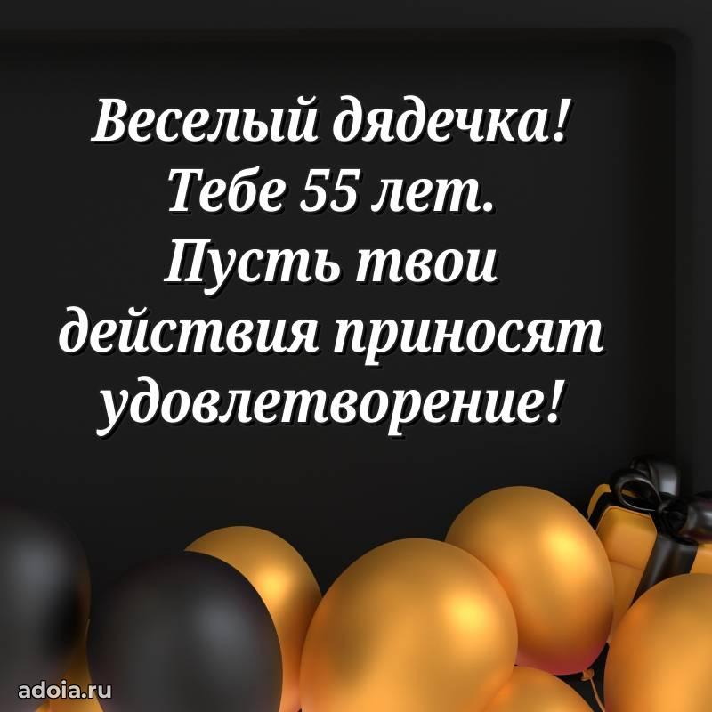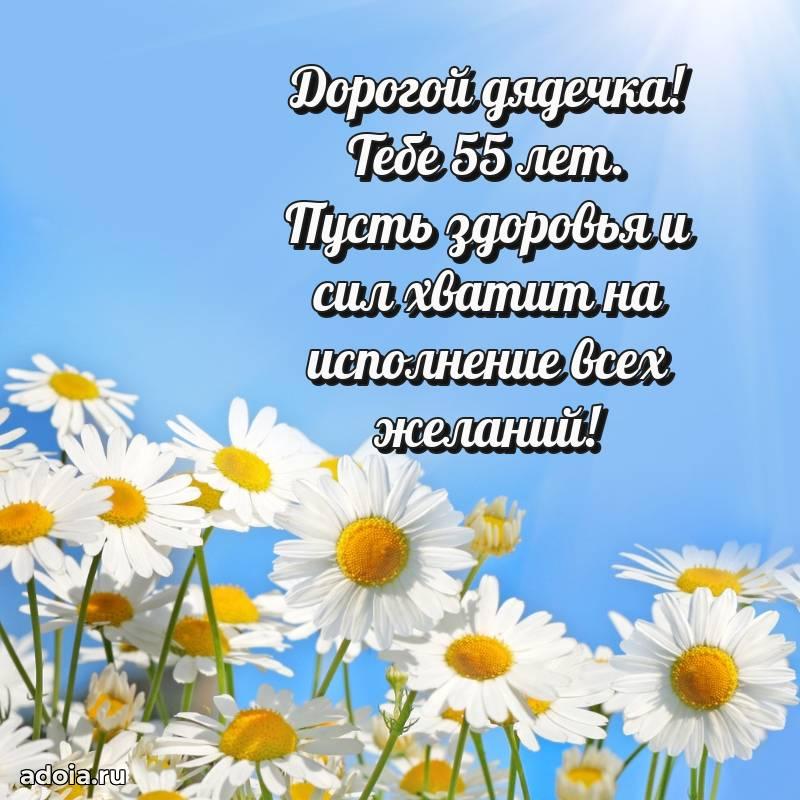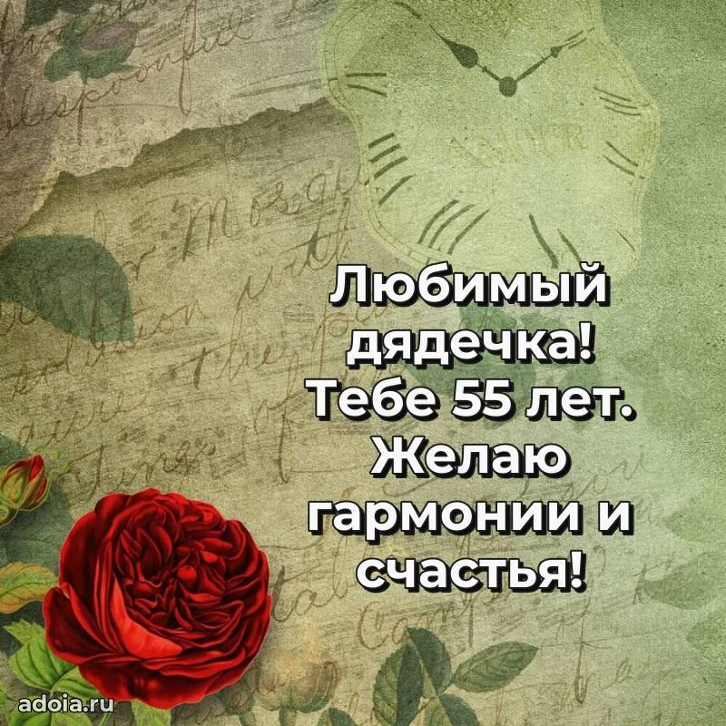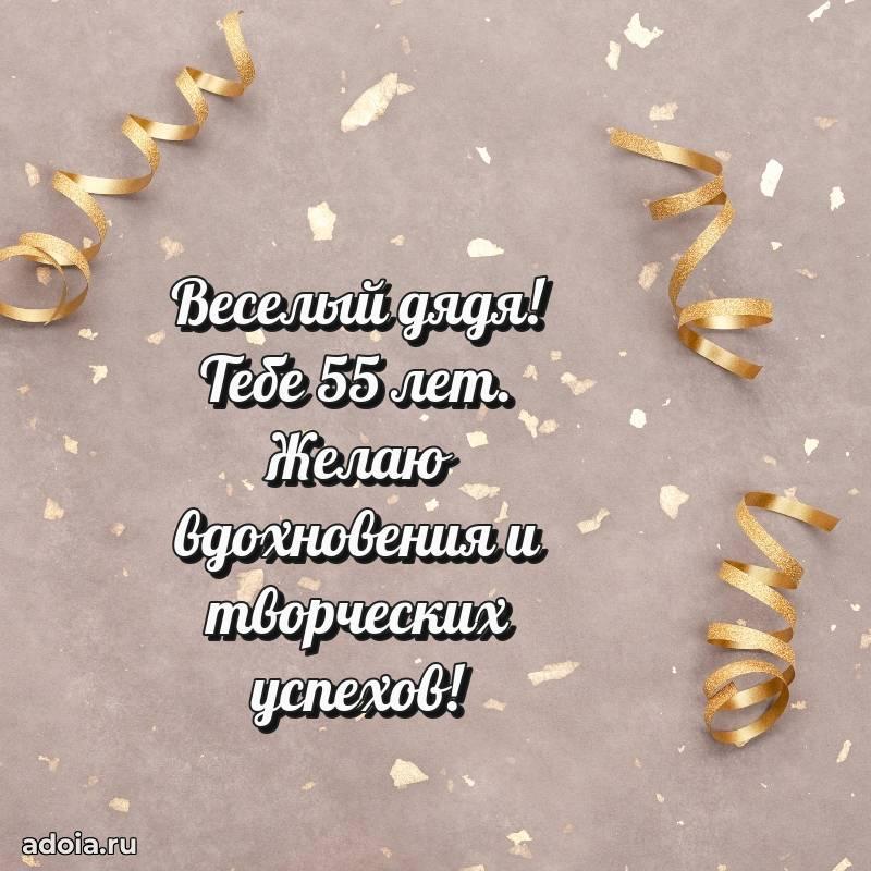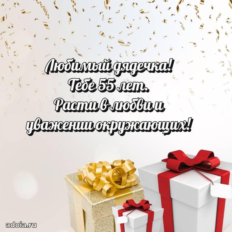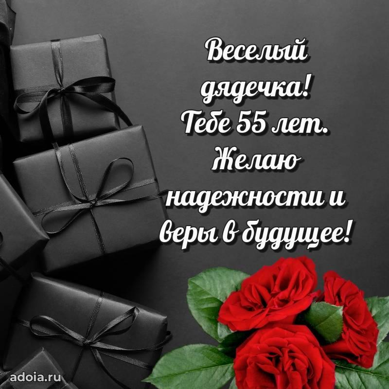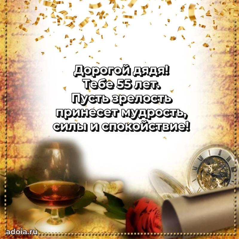 В поисках красивых и современных открыток? Вы попали по адресу! Здесь вы найдете картинки с днем рождения Дяде на 55 лет! Все картинки в высоком качестве, которые можно скачать или отправить через WhatsApp бесплатно. Также вы найдете много прикольных и мерцающих гифок и анимаций, которые поднимут настроение! Все открытки содержат поздравления в стихах и прозе.