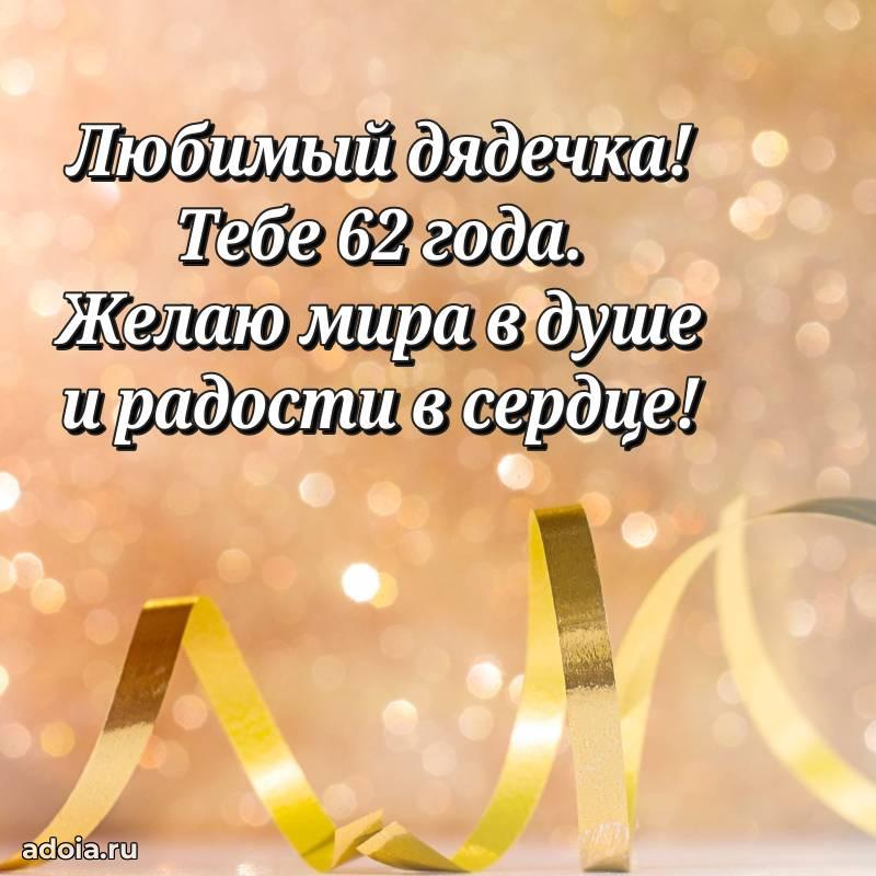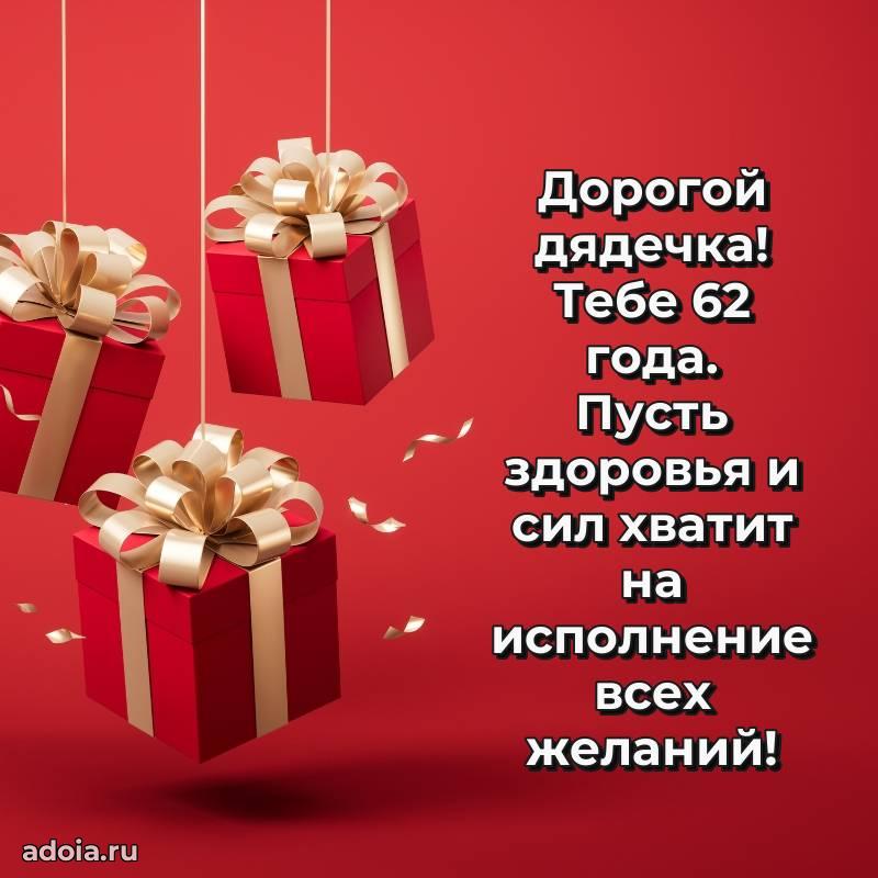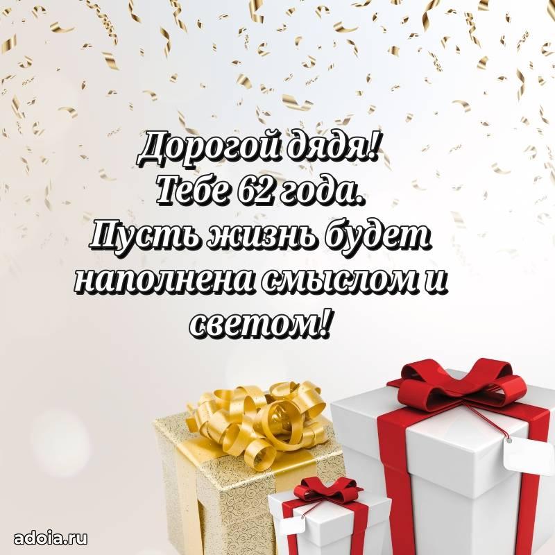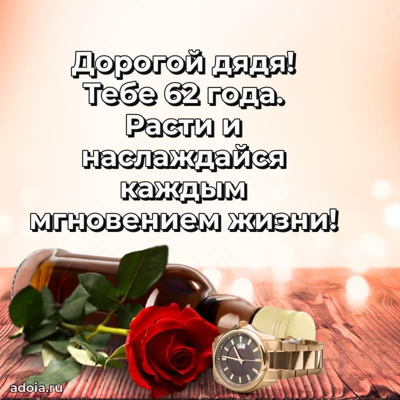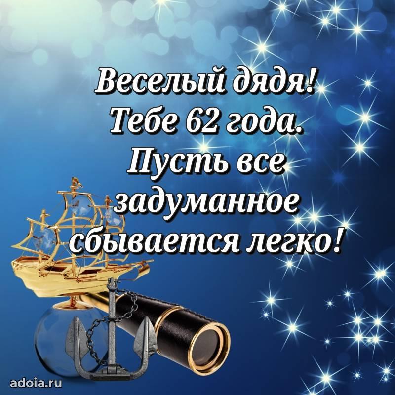 В поисках красивых и современных открыток? Вы попали по адресу! Здесь вы найдете картинки с днем рождения Дяде на 62 года! Все картинки в высоком качестве, которые можно скачать или отправить через WhatsApp бесплатно. Также вы найдете много прикольных и мерцающих гифок и анимаций, которые поднимут настроение! Все открытки содержат поздравления в стихах и прозе.