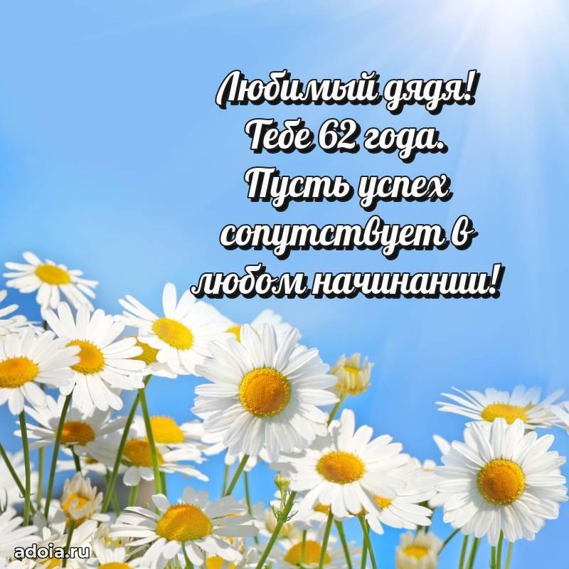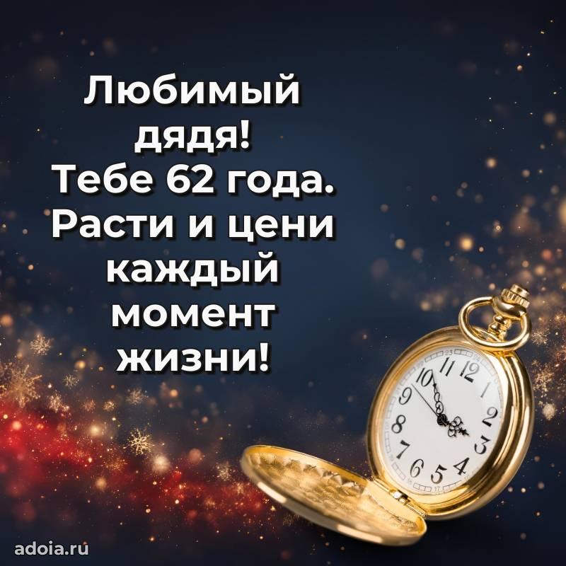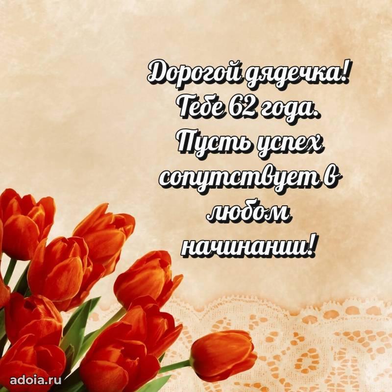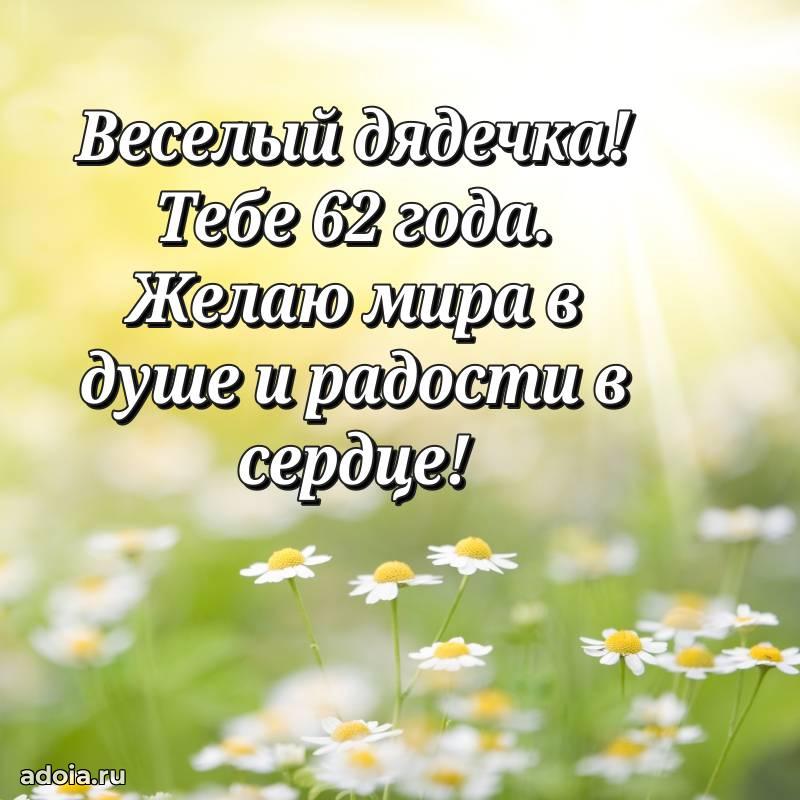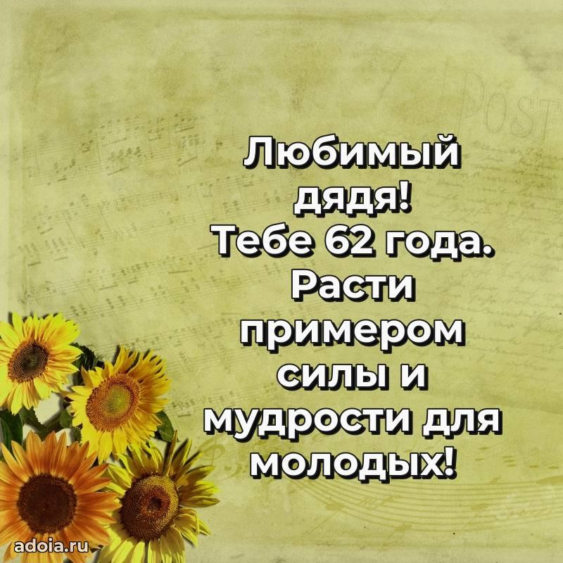 В поисках красивых и современных открыток? Вы попали по адресу! Здесь вы найдете картинки с днем рождения Дяде на 62 года! Все картинки в высоком качестве, которые можно скачать или отправить через WhatsApp бесплатно. Также вы найдете много прикольных и мерцающих гифок и анимаций, которые поднимут настроение! Все открытки содержат поздравления в стихах и прозе.