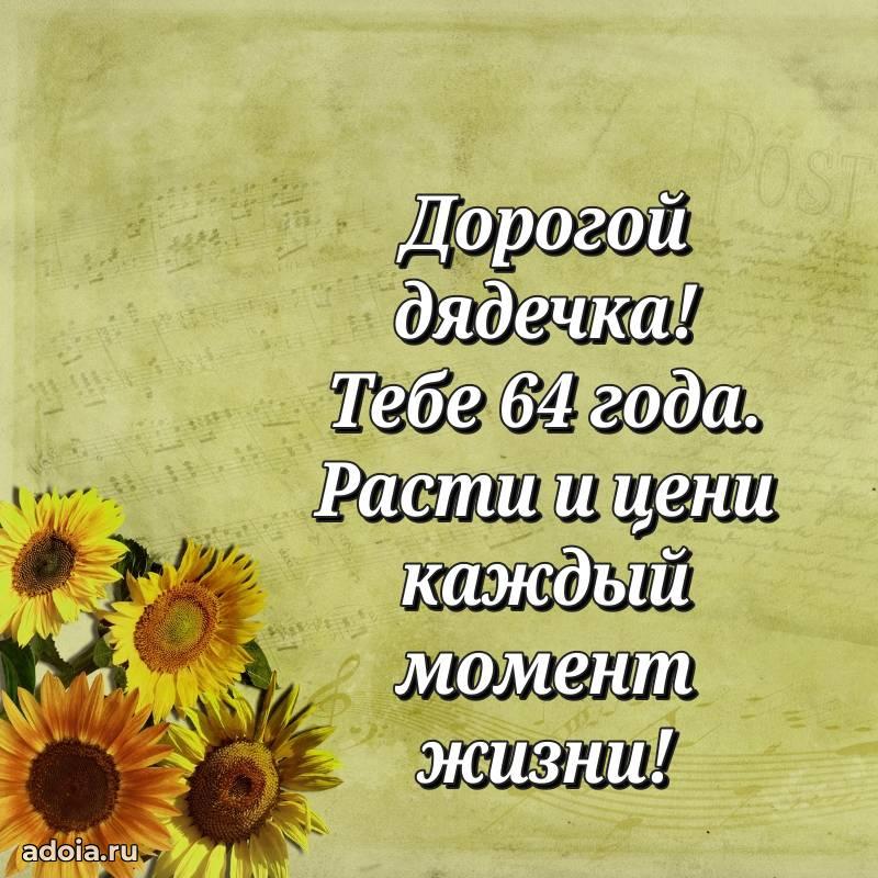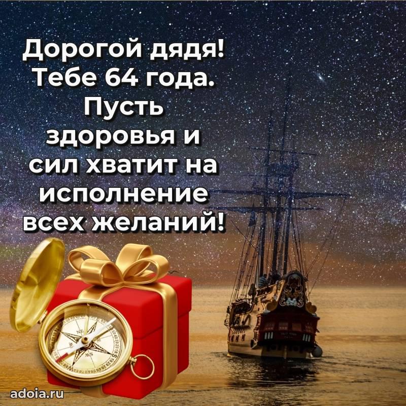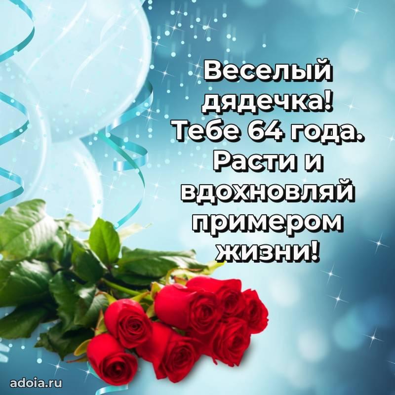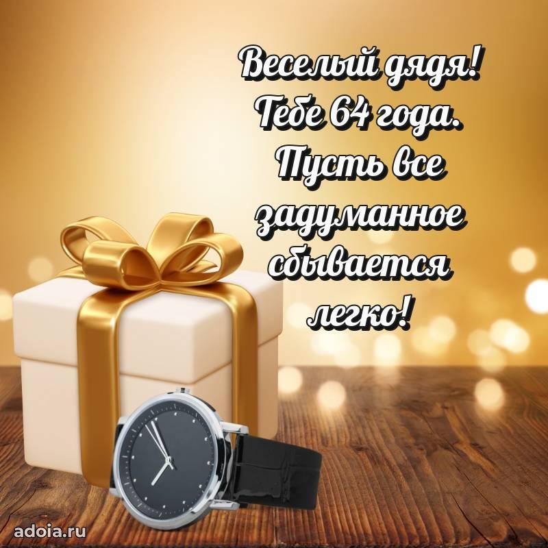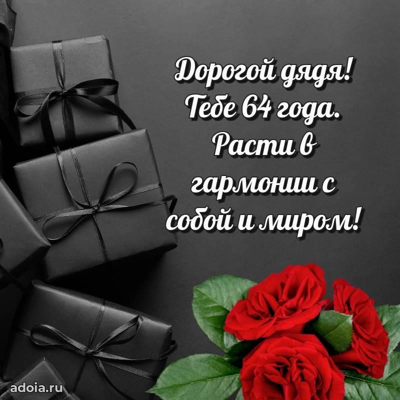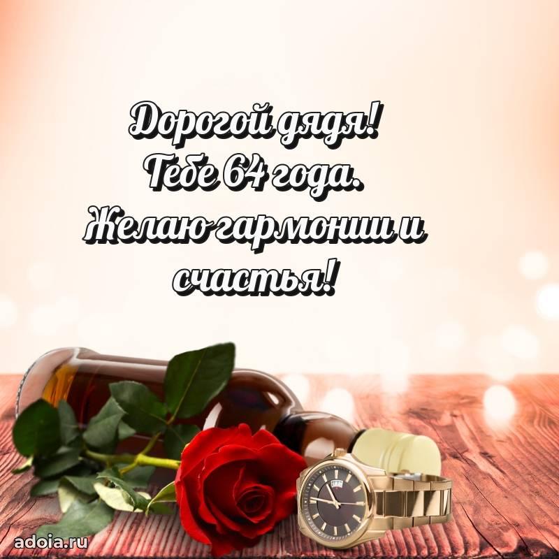 В поисках красивых и современных открыток? Вы попали по адресу! Здесь вы найдете картинки с днем рождения Дяде на 64 года! Все картинки в высоком качестве, которые можно скачать или отправить через WhatsApp бесплатно. Также вы найдете много прикольных и мерцающих гифок и анимаций, которые поднимут настроение! Все открытки содержат поздравления в стихах и прозе.