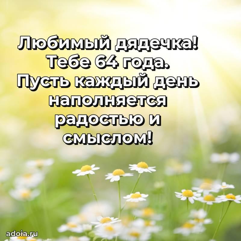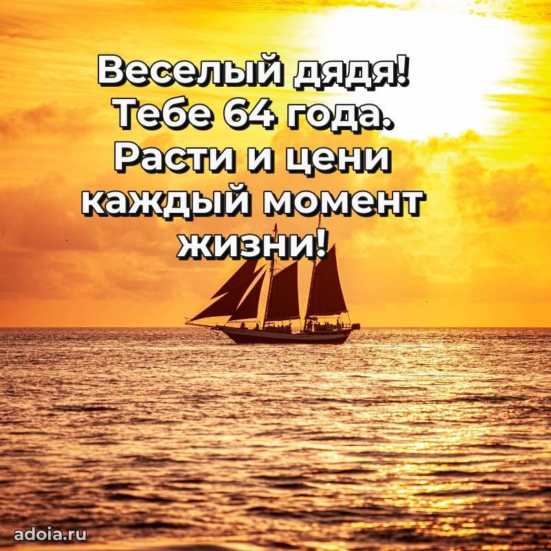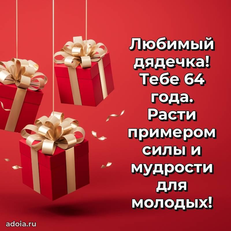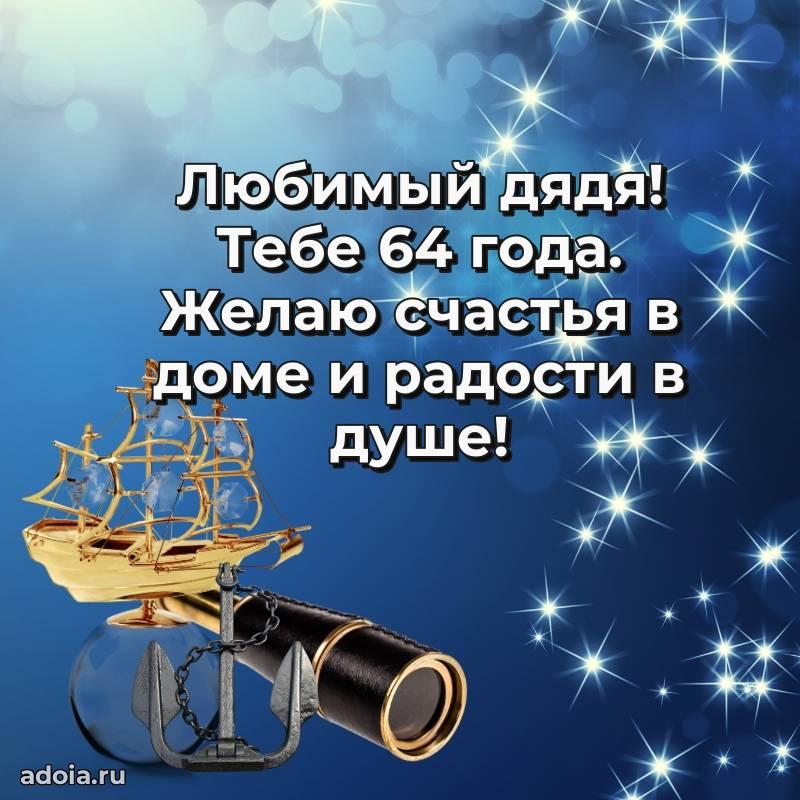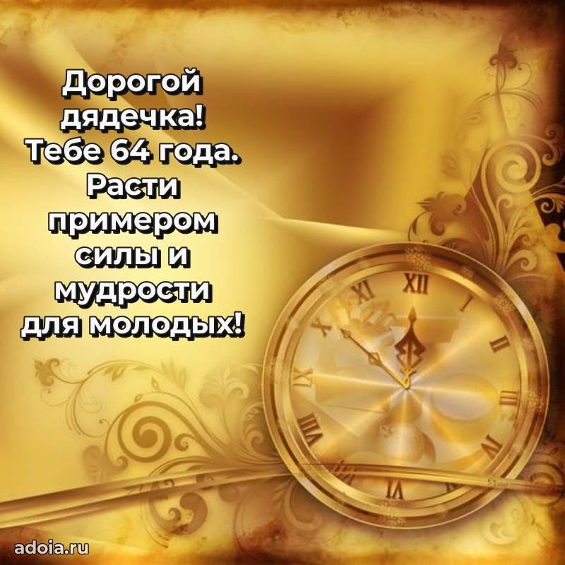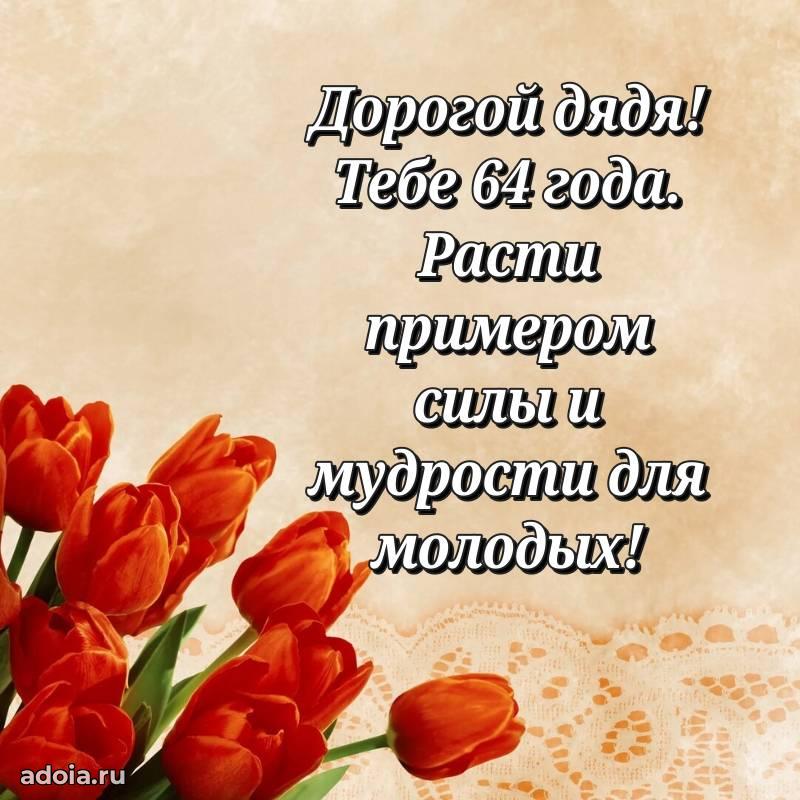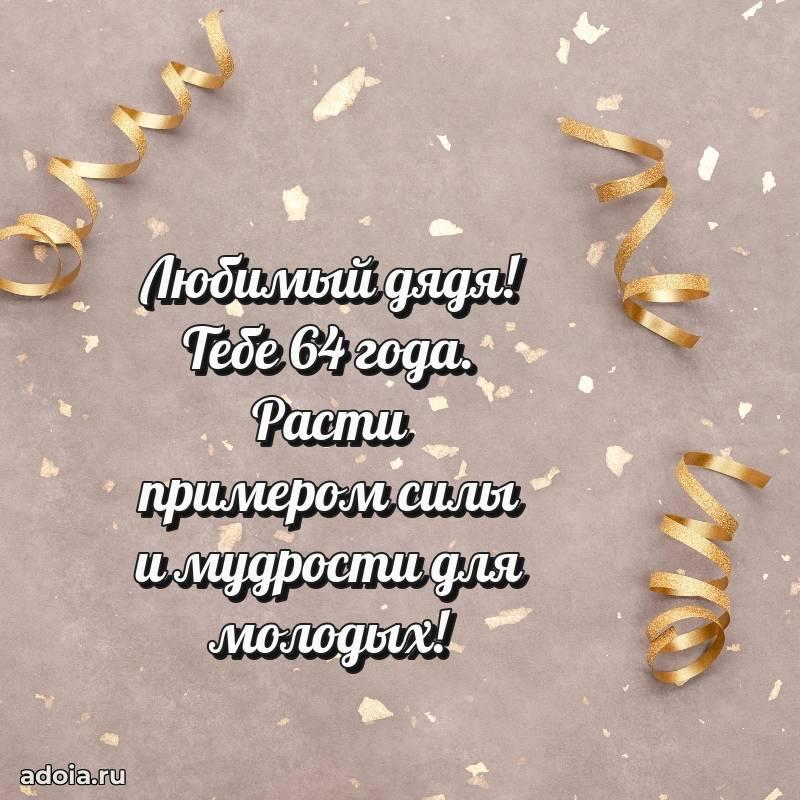 В поисках красивых и современных открыток? Вы попали по адресу! Здесь вы найдете картинки с днем рождения Дяде на 64 года! Все картинки в высоком качестве, которые можно скачать или отправить через WhatsApp бесплатно. Также вы найдете много прикольных и мерцающих гифок и анимаций, которые поднимут настроение! Все открытки содержат поздравления в стихах и прозе.