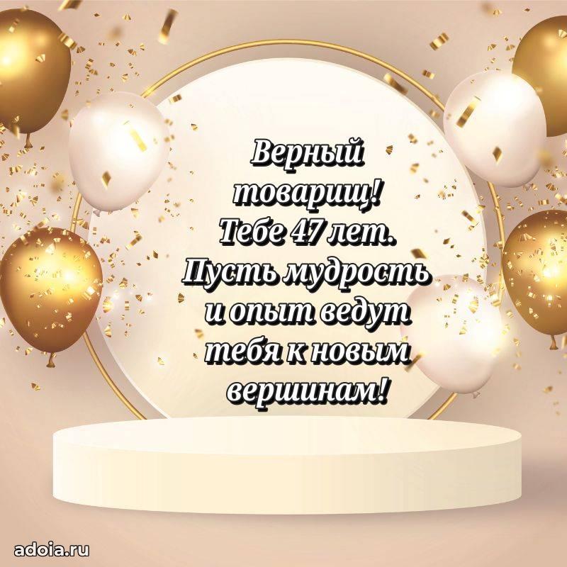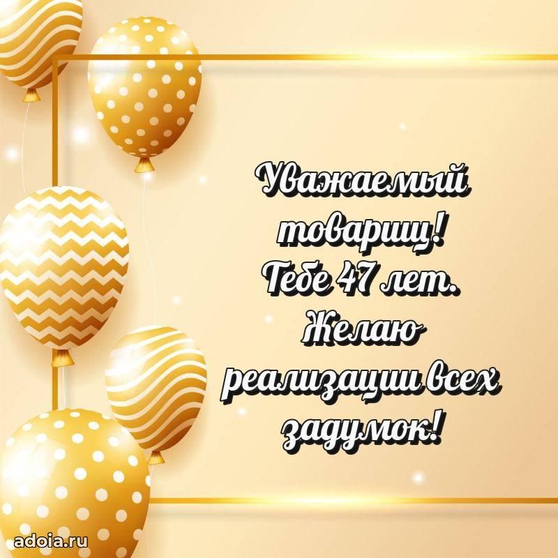 В поисках красивых и современных открыток? Вы попали по адресу! Здесь вы найдете картинки с днем рождения Коллеге на 47 лет! Все картинки в высоком качестве, которые можно скачать или отправить через WhatsApp бесплатно. Также вы найдете много прикольных и мерцающих гифок и анимаций, которые поднимут настроение! Все открытки содержат поздравления в стихах и прозе.