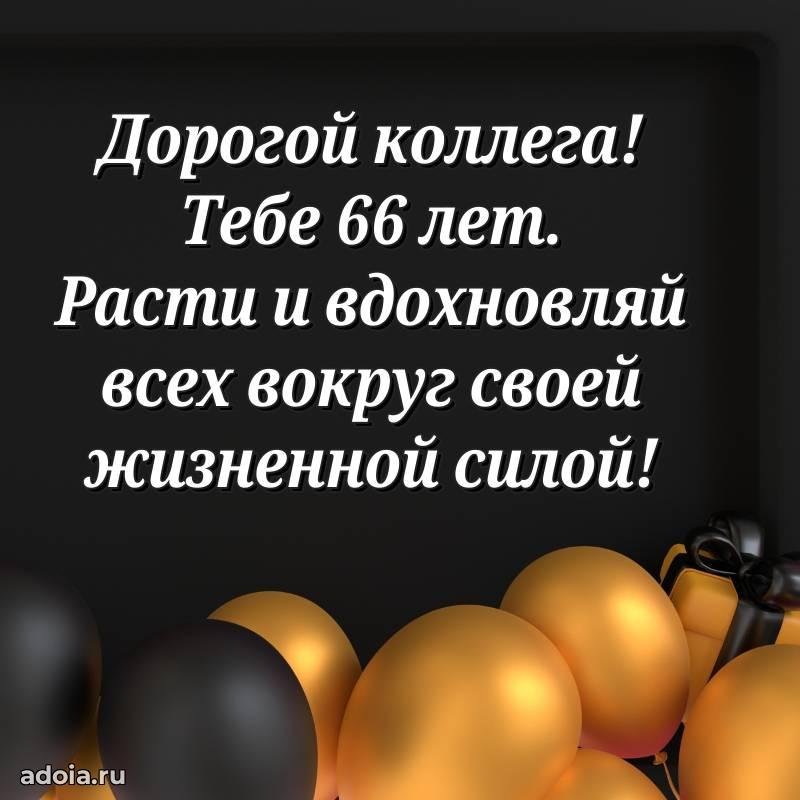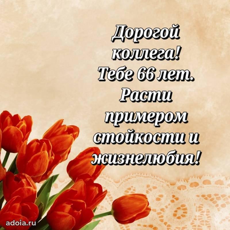 В поисках красивых и современных открыток? Вы попали по адресу! Здесь вы найдете картинки с днем рождения Коллеге на 66 лет! Все картинки в высоком качестве, которые можно скачать или отправить через WhatsApp бесплатно. Также вы найдете много прикольных и мерцающих гифок и анимаций, которые поднимут настроение! Все открытки содержат поздравления в стихах и прозе.