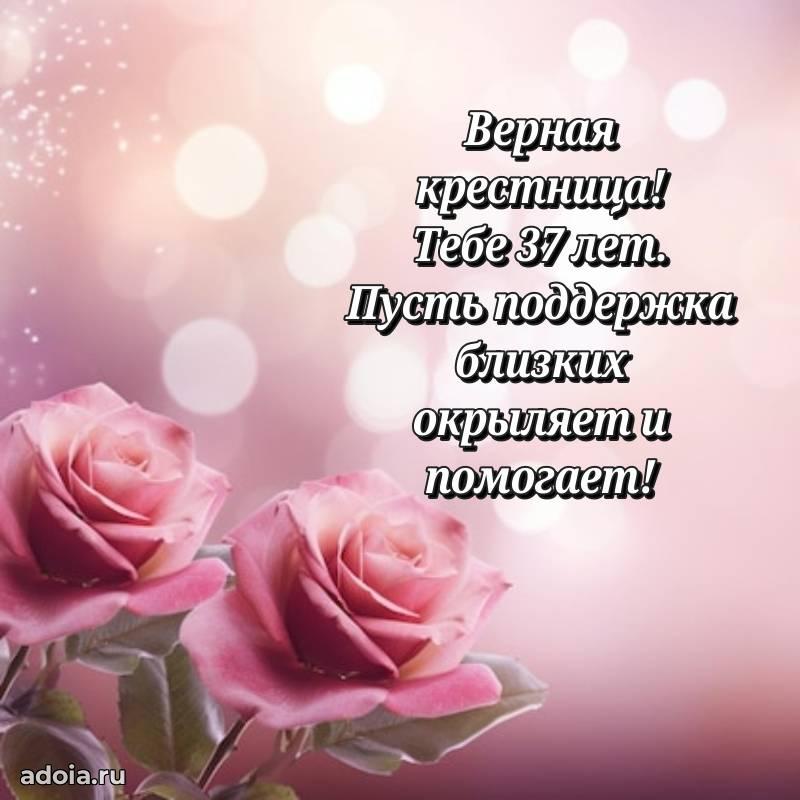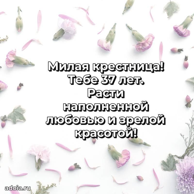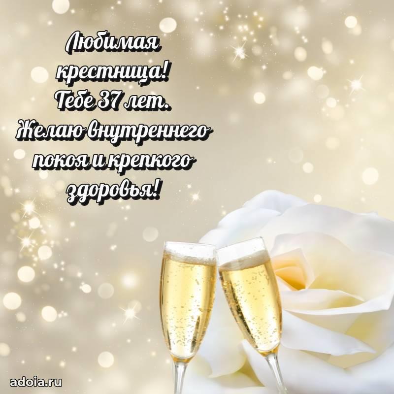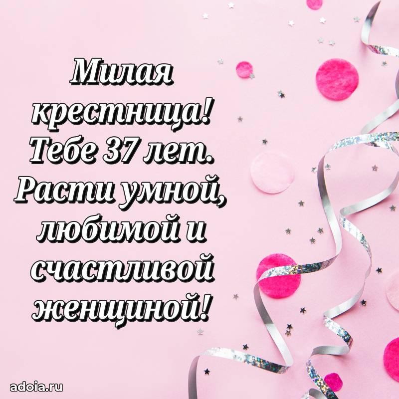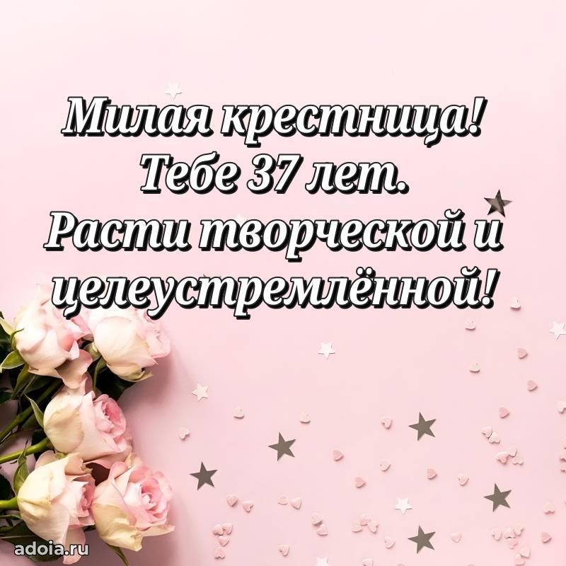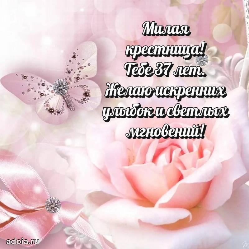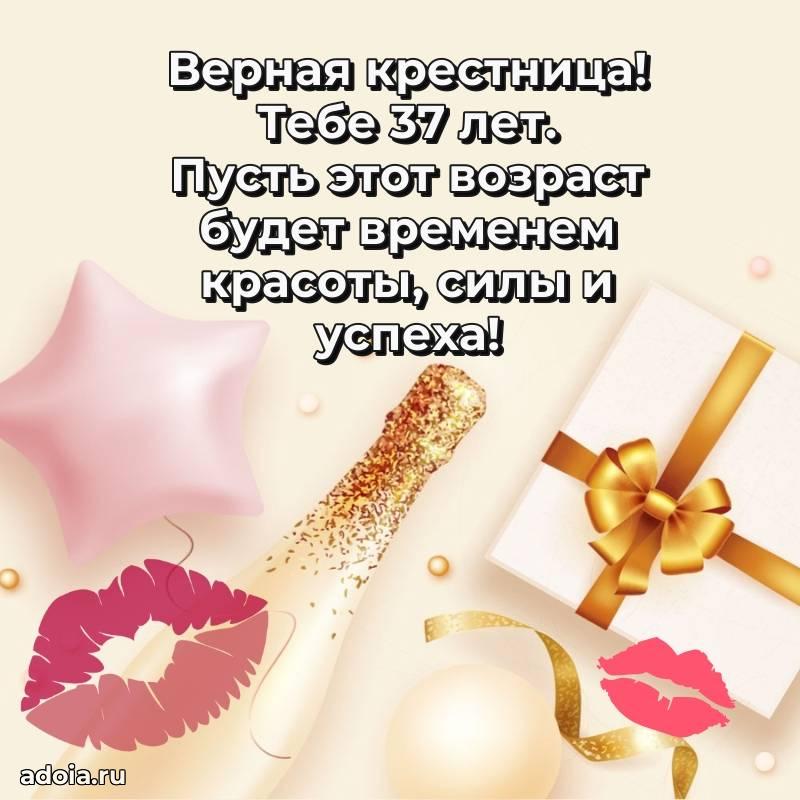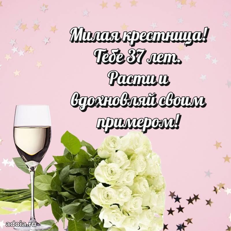В поисках красивых и современных открыток? Вы попали по адресу! Здесь вы найдете картинки с днем рождения Крестнице на 37 лет! Все картинки в высоком качестве, которые можно скачать или отправить через WhatsApp бесплатно. Также вы найдете много прикольных и мерцающих гифок и анимаций, которые поднимут настроение! Все открытки содержат поздравления в стихах и прозе.