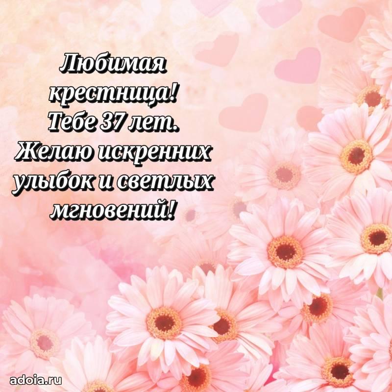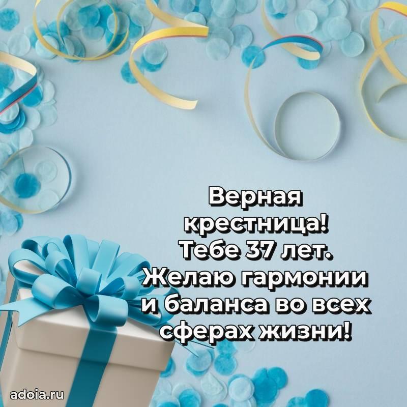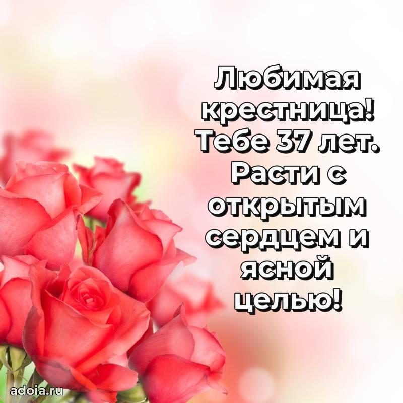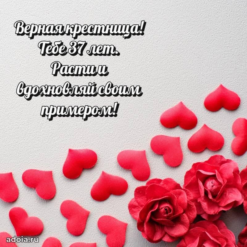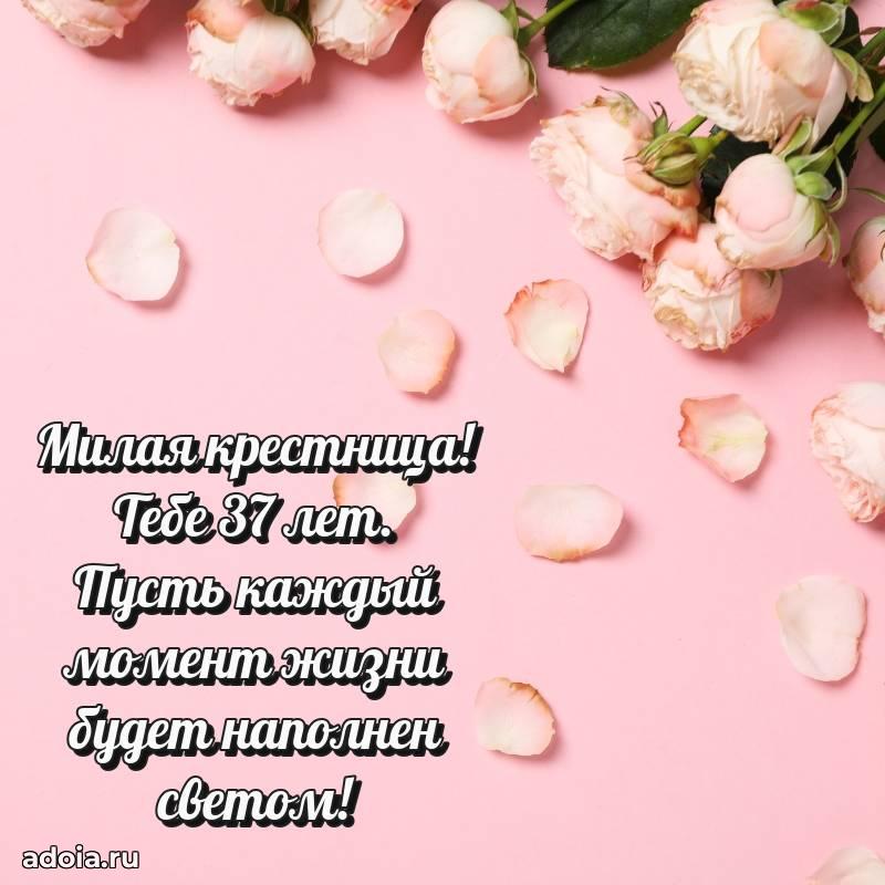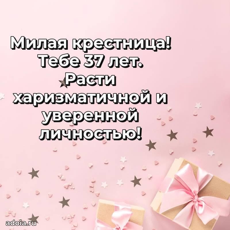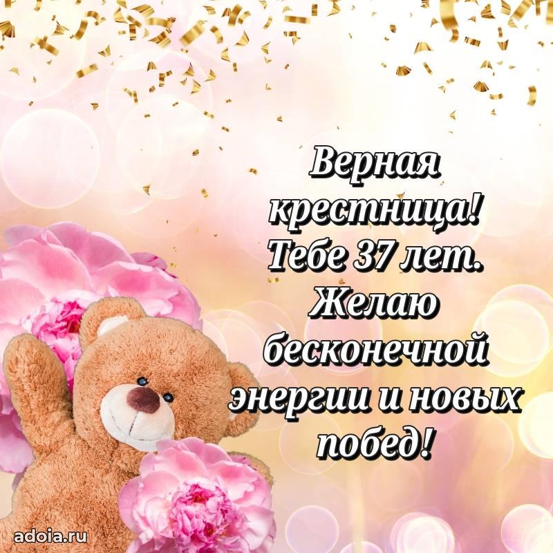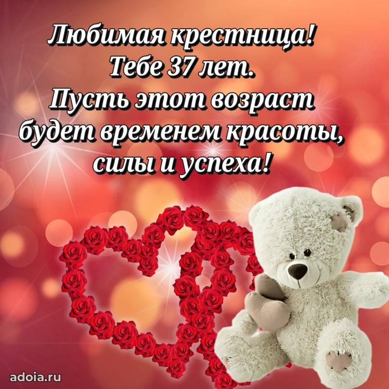 В поисках красивых и современных открыток? Вы попали по адресу! Здесь вы найдете картинки с днем рождения Крестнице на 37 лет! Все картинки в высоком качестве, которые можно скачать или отправить через WhatsApp бесплатно. Также вы найдете много прикольных и мерцающих гифок и анимаций, которые поднимут настроение! Все открытки содержат поздравления в стихах и прозе.