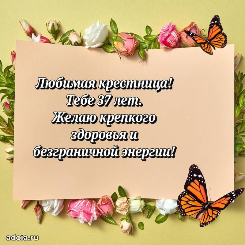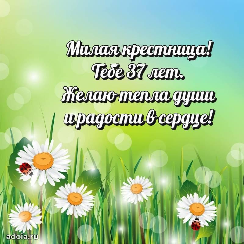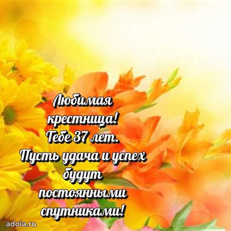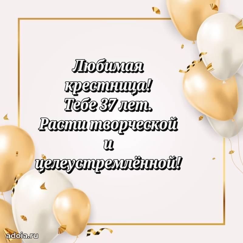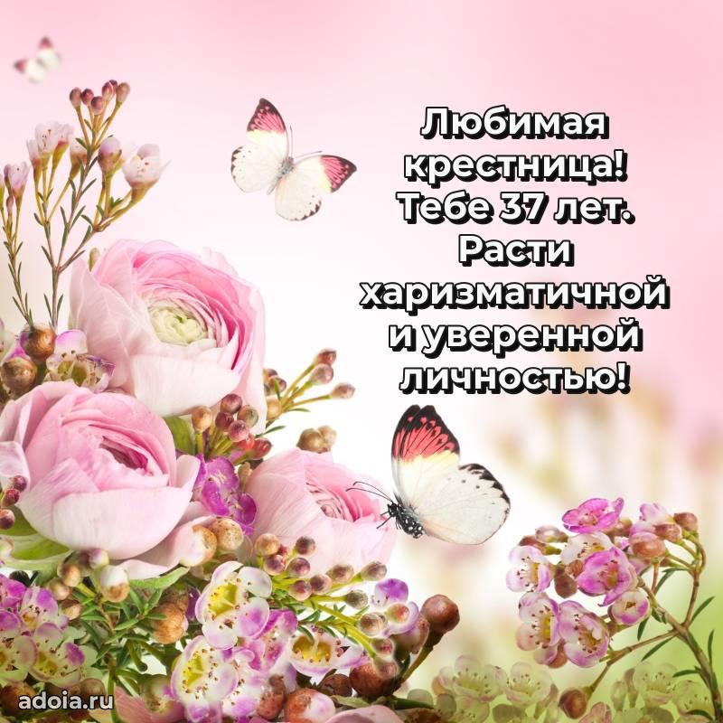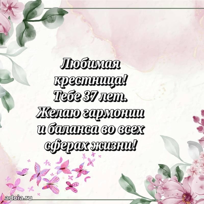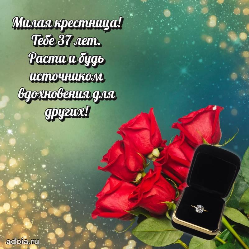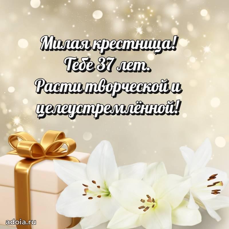 В поисках красивых и современных открыток? Вы попали по адресу! Здесь вы найдете картинки с днем рождения Крестнице на 37 лет! Все картинки в высоком качестве, которые можно скачать или отправить через WhatsApp бесплатно. Также вы найдете много прикольных и мерцающих гифок и анимаций, которые поднимут настроение! Все открытки содержат поздравления в стихах и прозе.