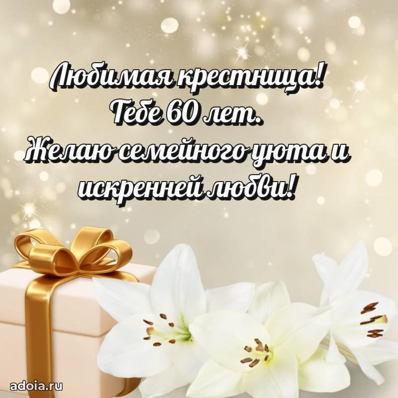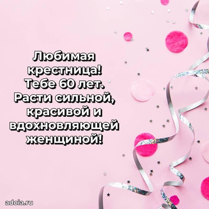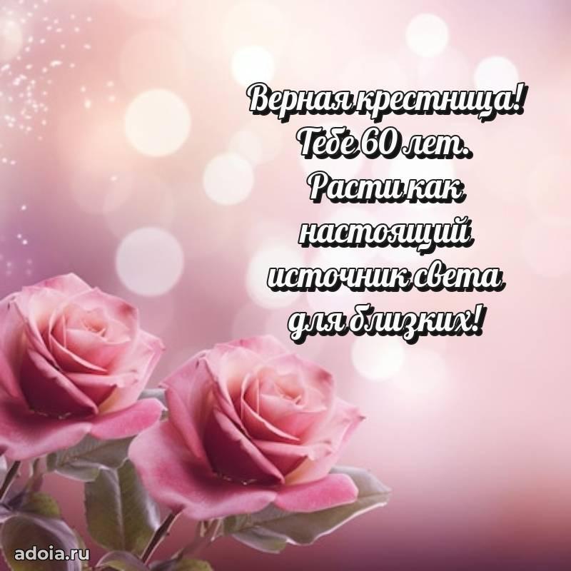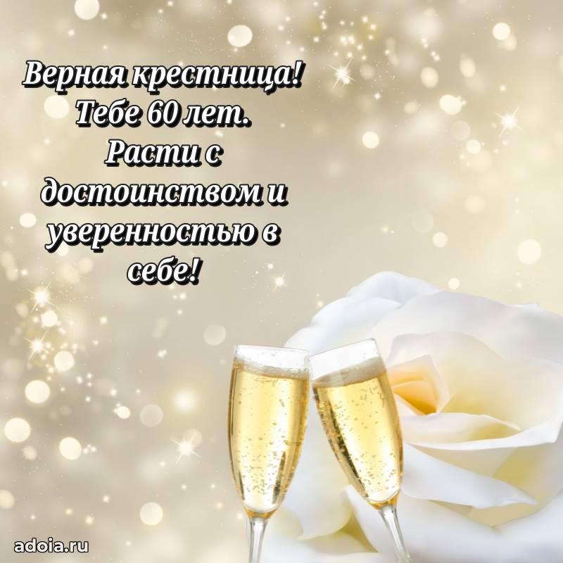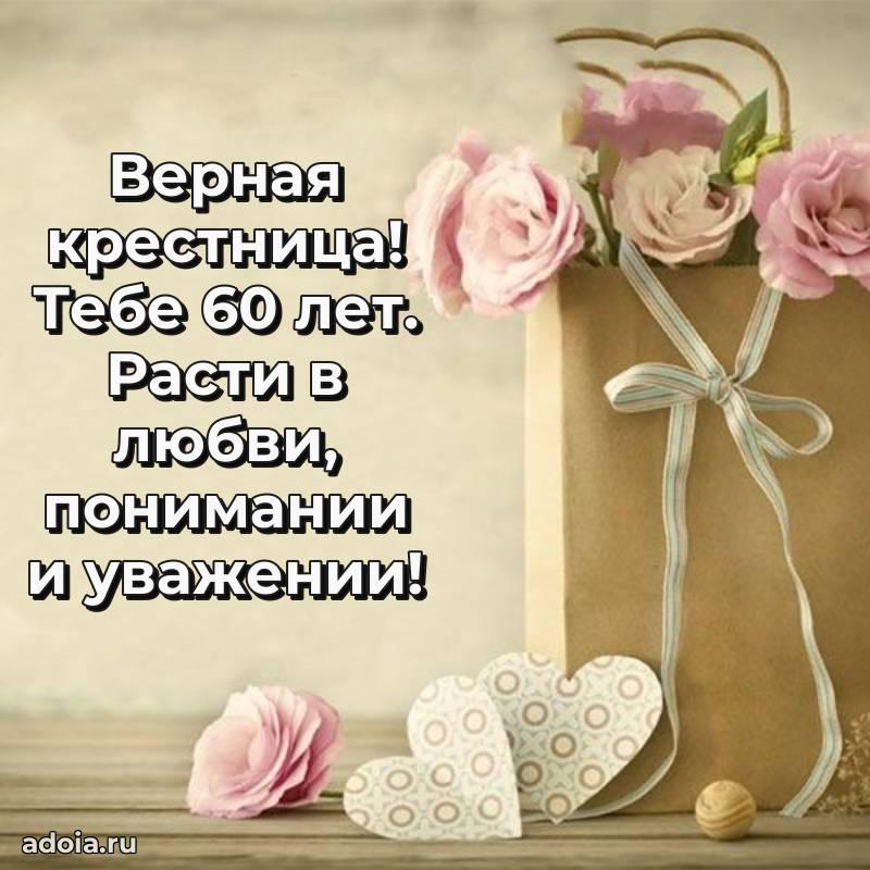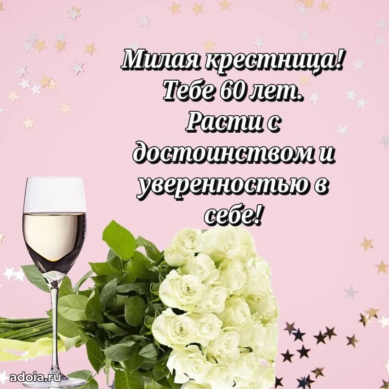 В поисках красивых и современных открыток? Вы попали по адресу! Здесь вы найдете картинки с днем рождения Крестнице на 60 лет! Все картинки в высоком качестве, которые можно скачать или отправить через WhatsApp бесплатно. Также вы найдете много прикольных и мерцающих гифок и анимаций, которые поднимут настроение! Все открытки содержат поздравления в стихах и прозе.