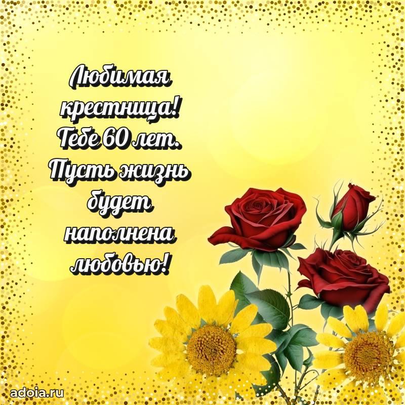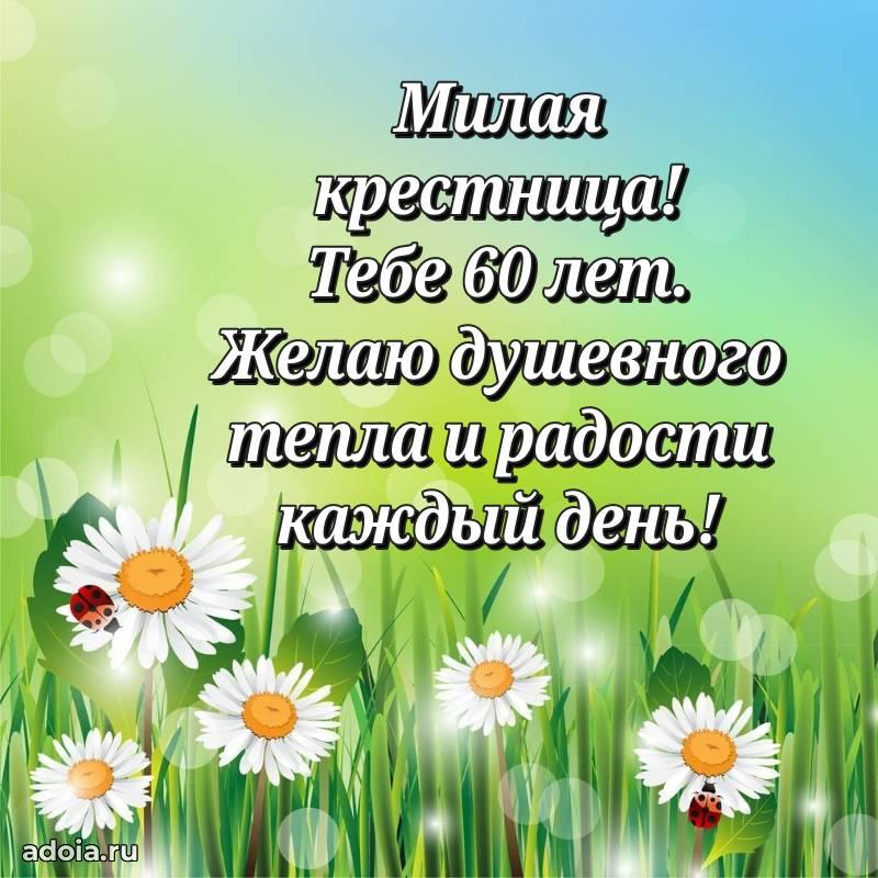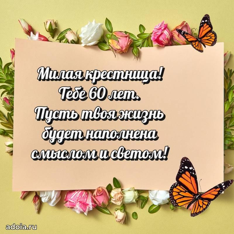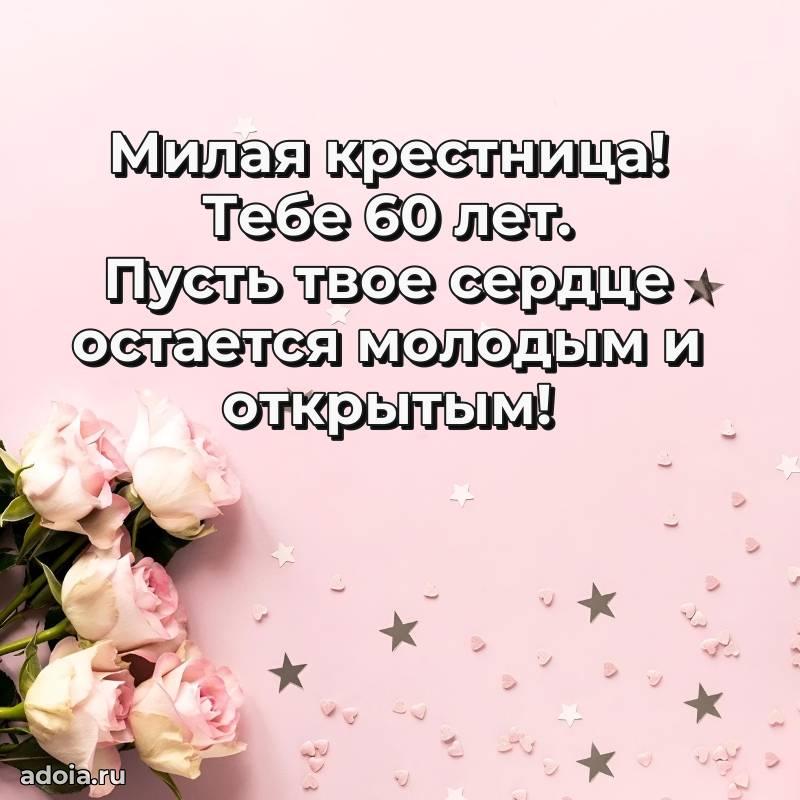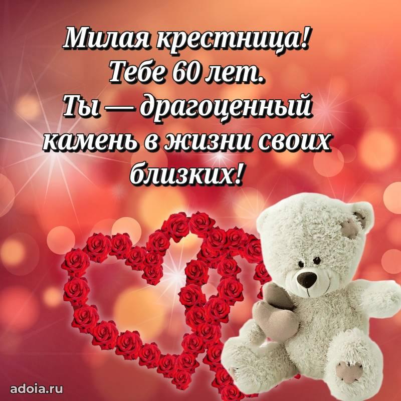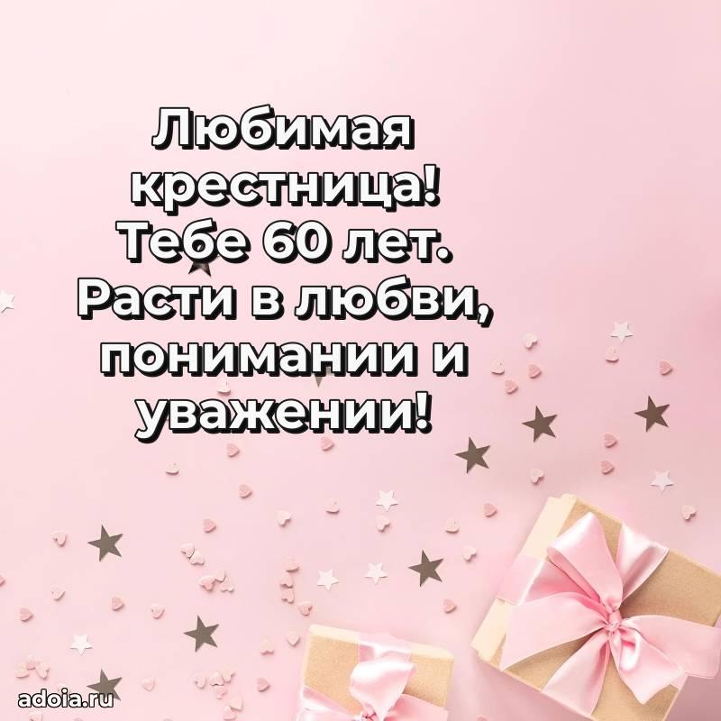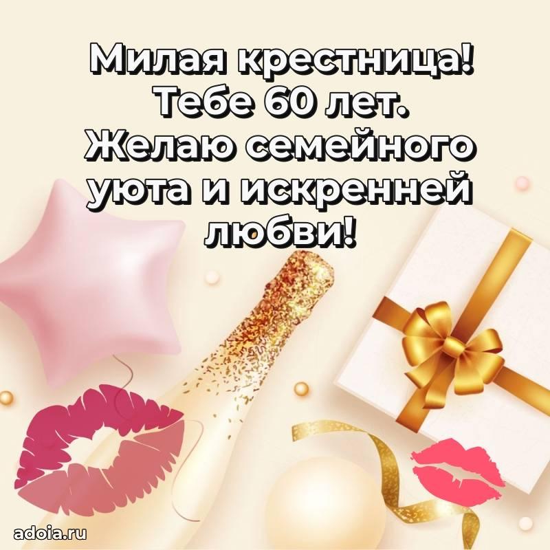 В поисках красивых и современных открыток? Вы попали по адресу! Здесь вы найдете картинки с днем рождения Крестнице на 60 лет! Все картинки в высоком качестве, которые можно скачать или отправить через WhatsApp бесплатно. Также вы найдете много прикольных и мерцающих гифок и анимаций, которые поднимут настроение! Все открытки содержат поздравления в стихах и прозе.