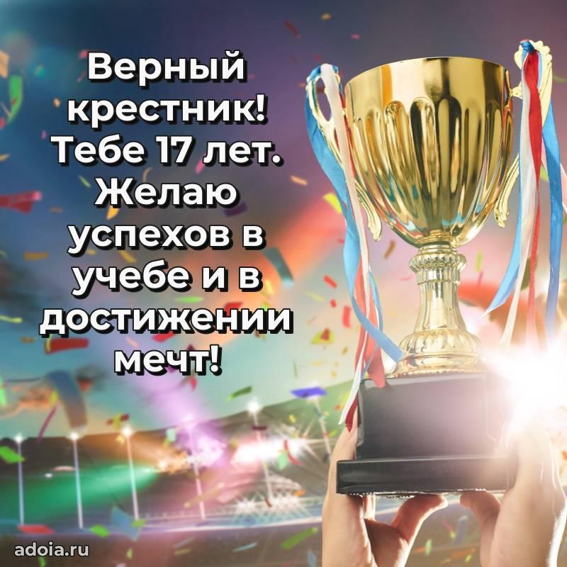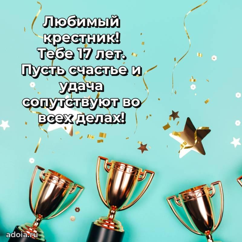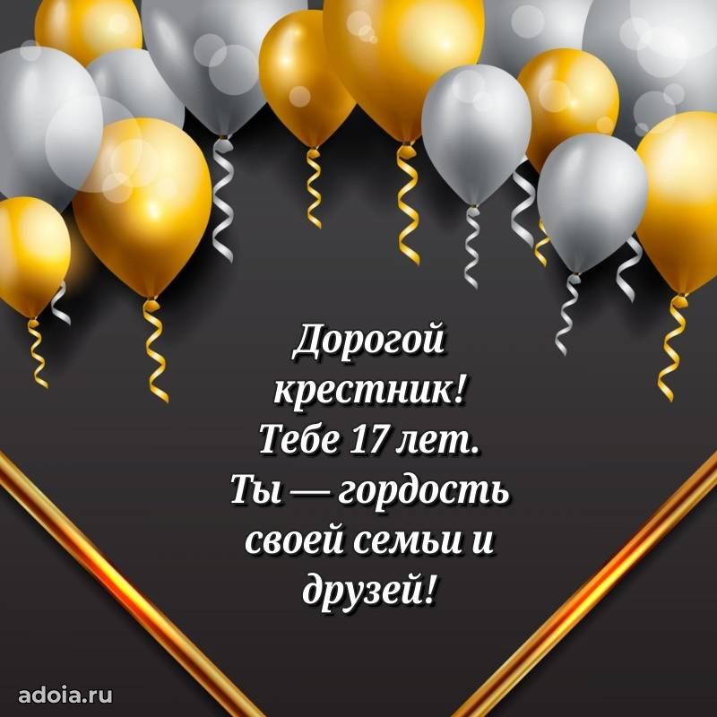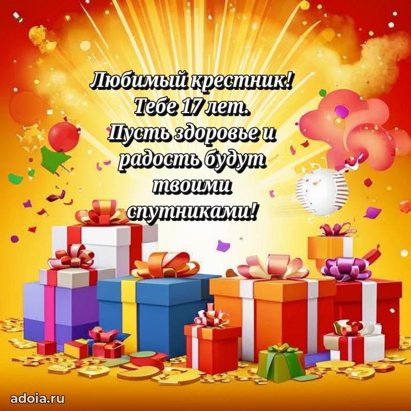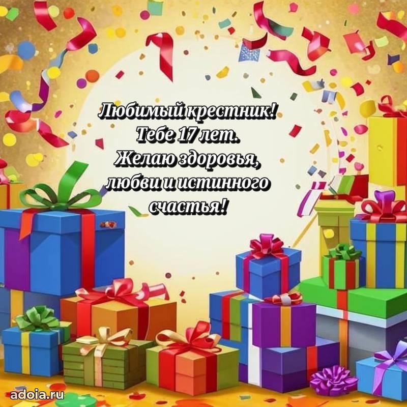 В поисках красивых и современных открыток? Вы попали по адресу! Здесь вы найдете картинки с днем рождения Крестнику на 17 лет! Все картинки в высоком качестве, которые можно скачать или отправить через WhatsApp бесплатно. Также вы найдете много прикольных и мерцающих гифок и анимаций, которые поднимут настроение! Все открытки содержат поздравления в стихах и прозе.