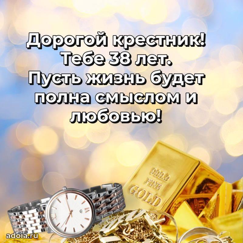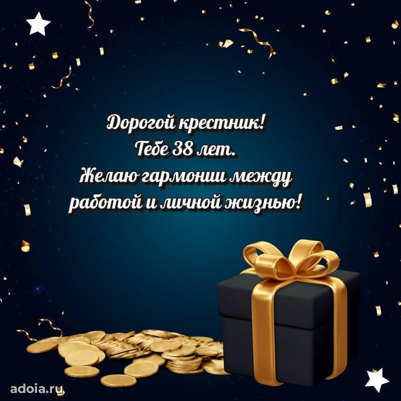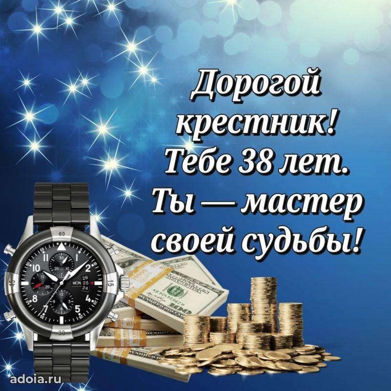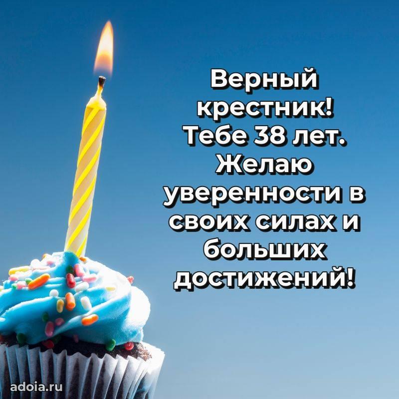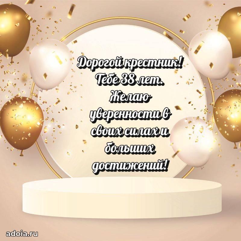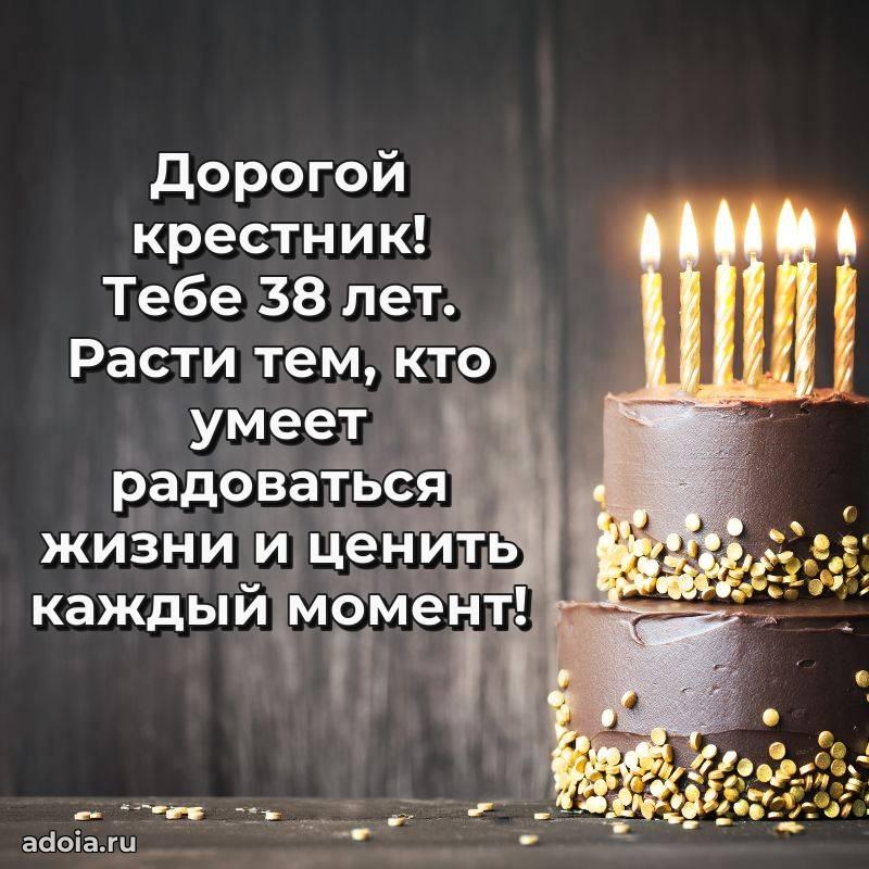 В поисках красивых и современных открыток? Вы попали по адресу! Здесь вы найдете картинки с днем рождения Крестнику на 38 лет! Все картинки в высоком качестве, которые можно скачать или отправить через WhatsApp бесплатно. Также вы найдете много прикольных и мерцающих гифок и анимаций, которые поднимут настроение! Все открытки содержат поздравления в стихах и прозе.