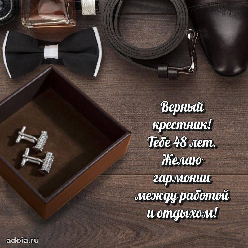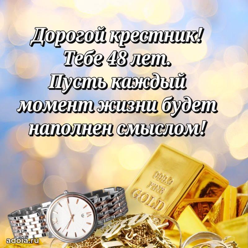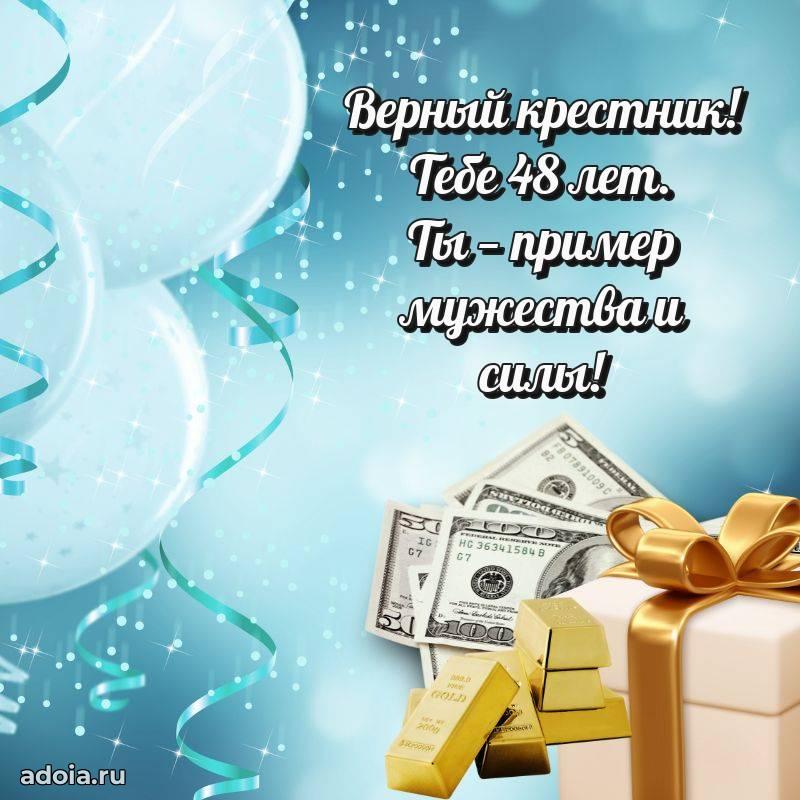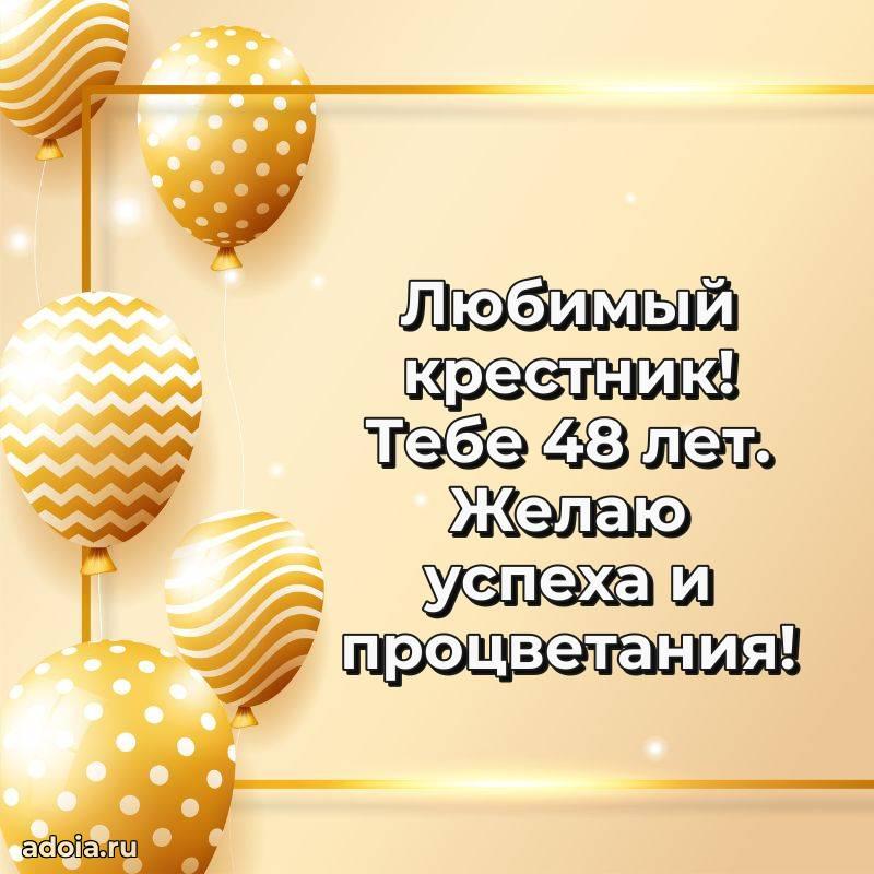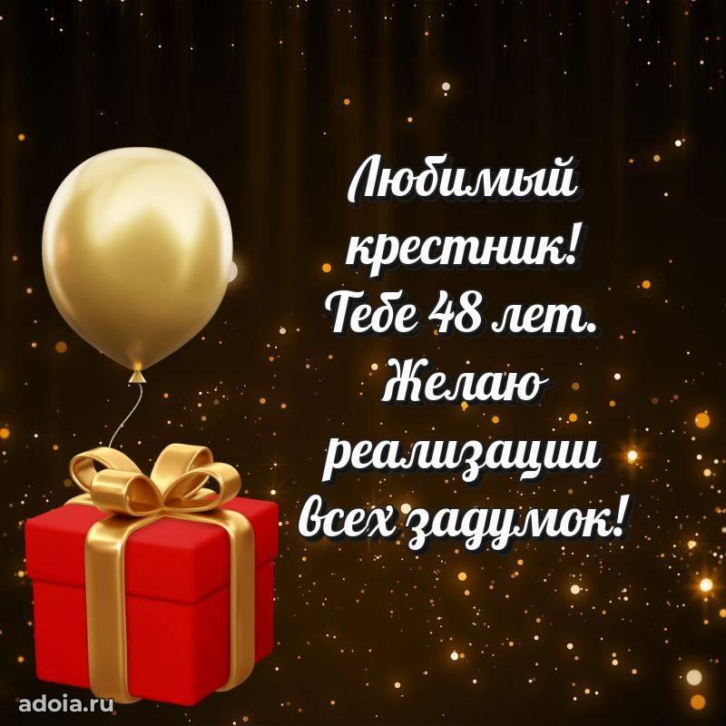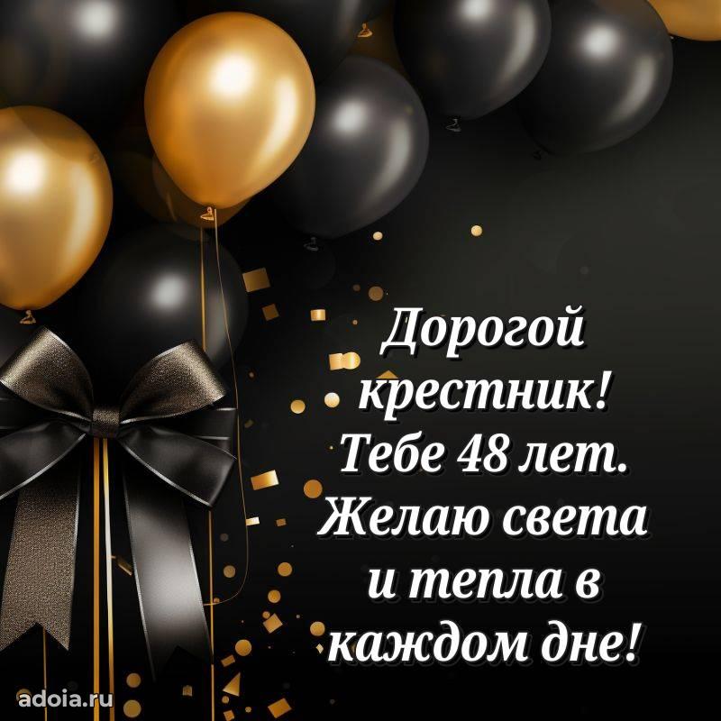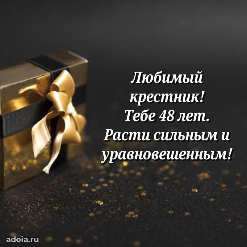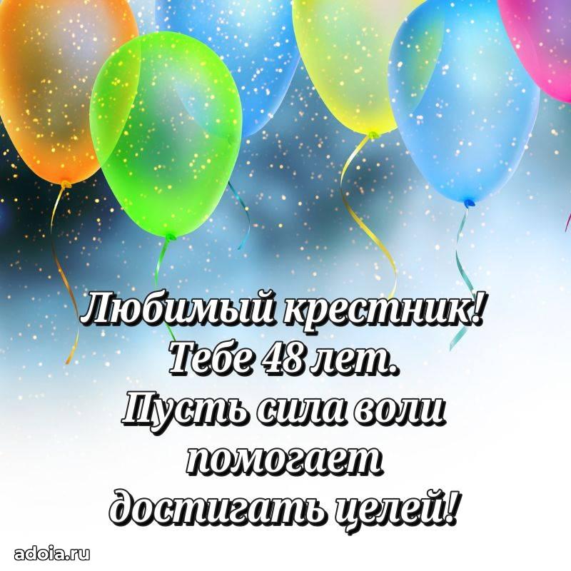 В поисках красивых и современных открыток? Вы попали по адресу! Здесь вы найдете картинки с днем рождения Крестнику на 48 лет! Все картинки в высоком качестве, которые можно скачать или отправить через WhatsApp бесплатно. Также вы найдете много прикольных и мерцающих гифок и анимаций, которые поднимут настроение! Все открытки содержат поздравления в стихах и прозе.
