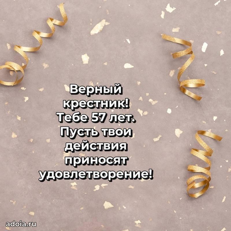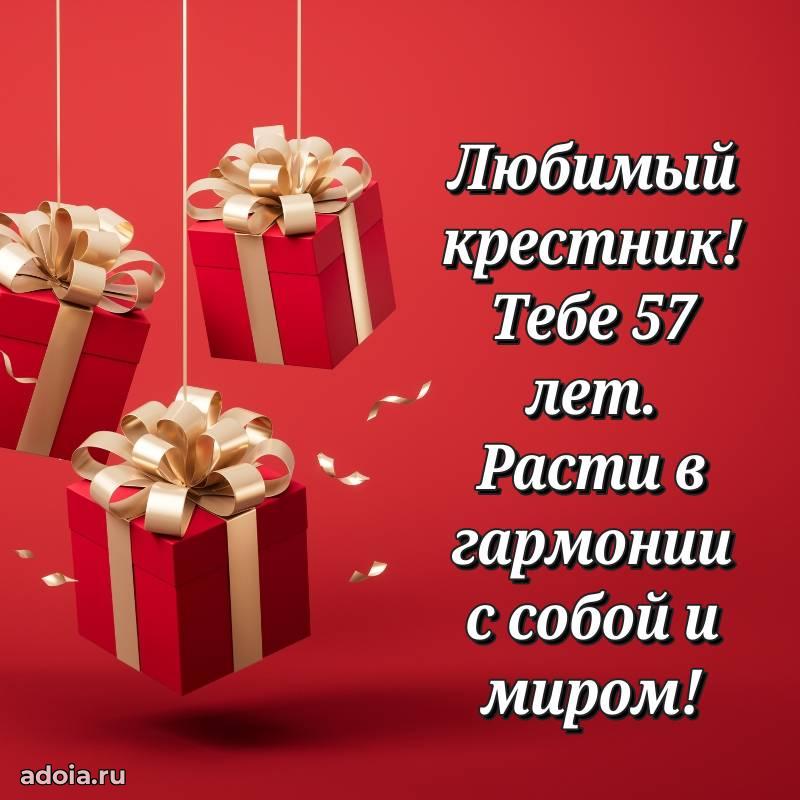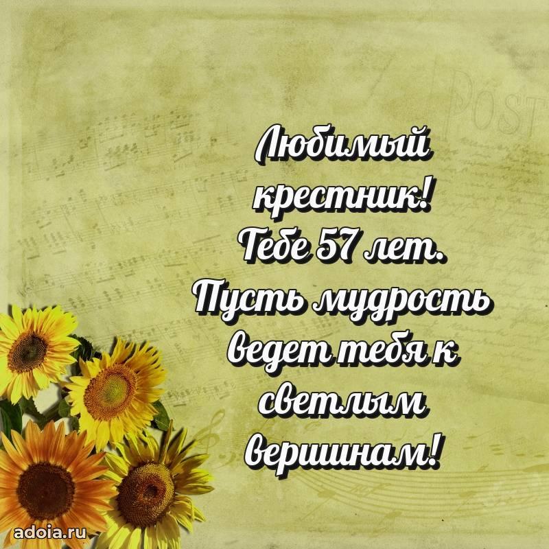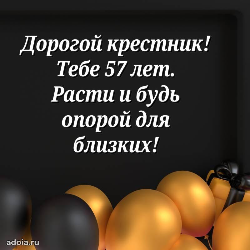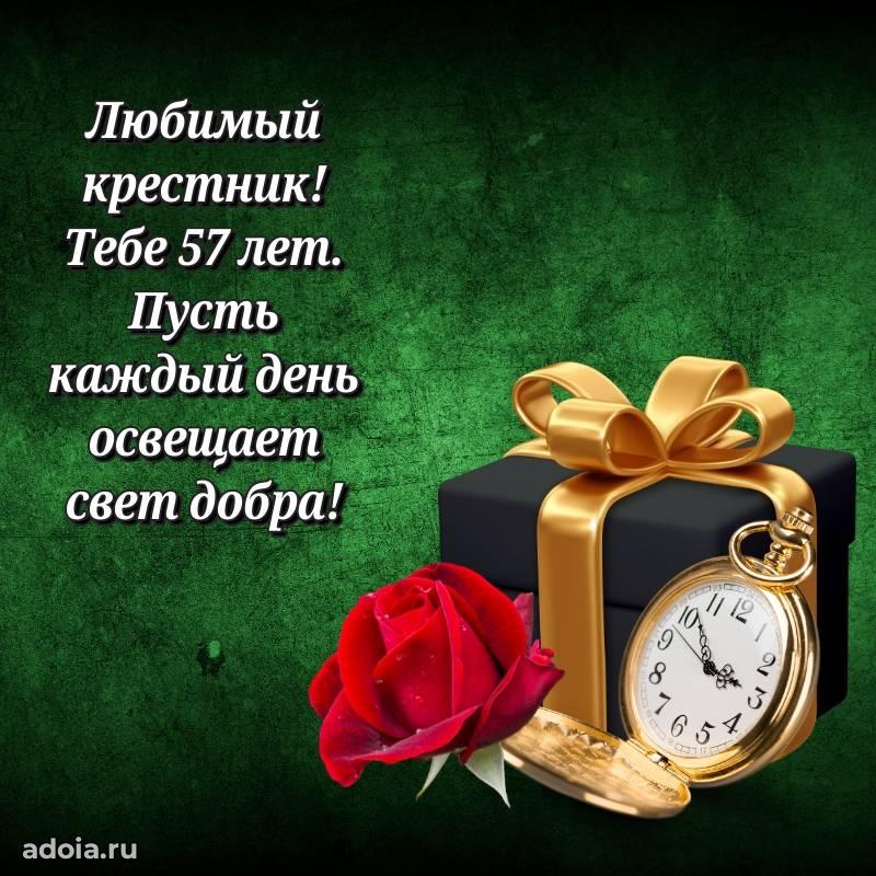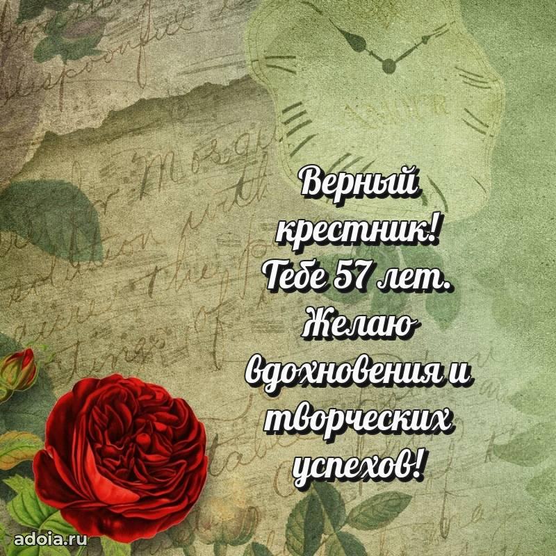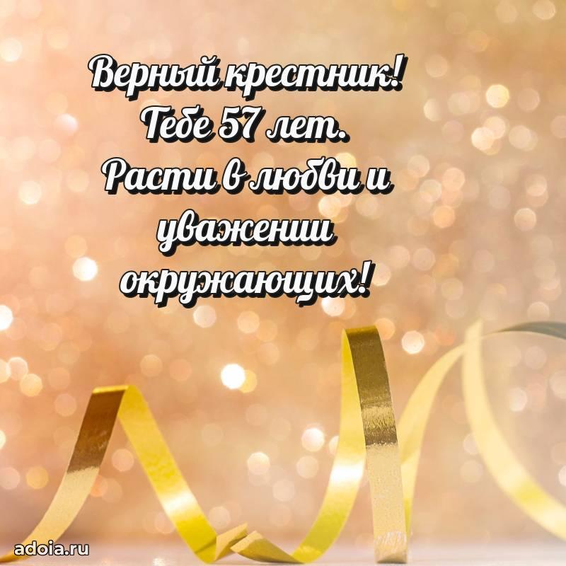 В поисках красивых и современных открыток? Вы попали по адресу! Здесь вы найдете картинки с днем рождения Крестнику на 57 лет! Все картинки в высоком качестве, которые можно скачать или отправить через WhatsApp бесплатно. Также вы найдете много прикольных и мерцающих гифок и анимаций, которые поднимут настроение! Все открытки содержат поздравления в стихах и прозе.